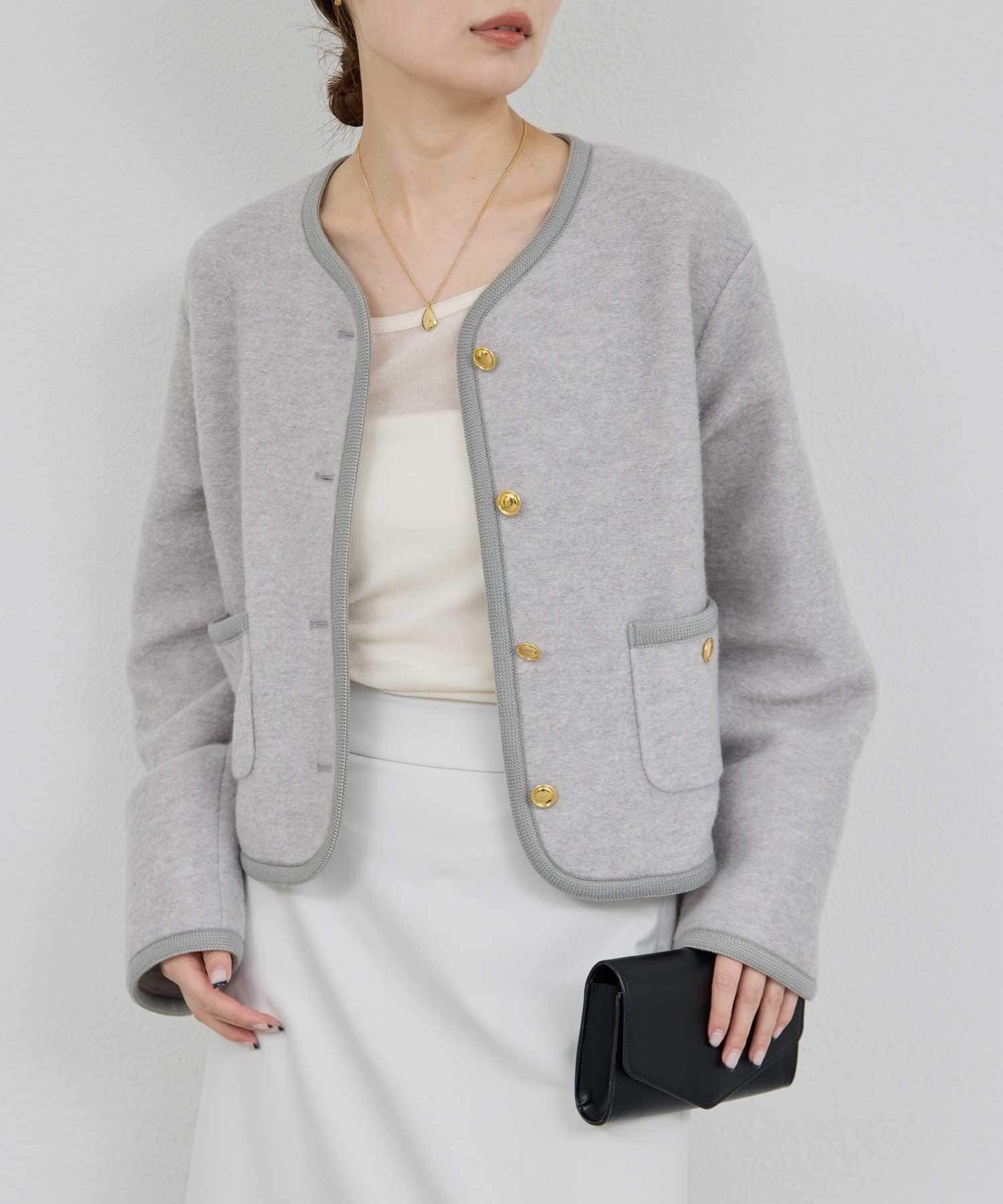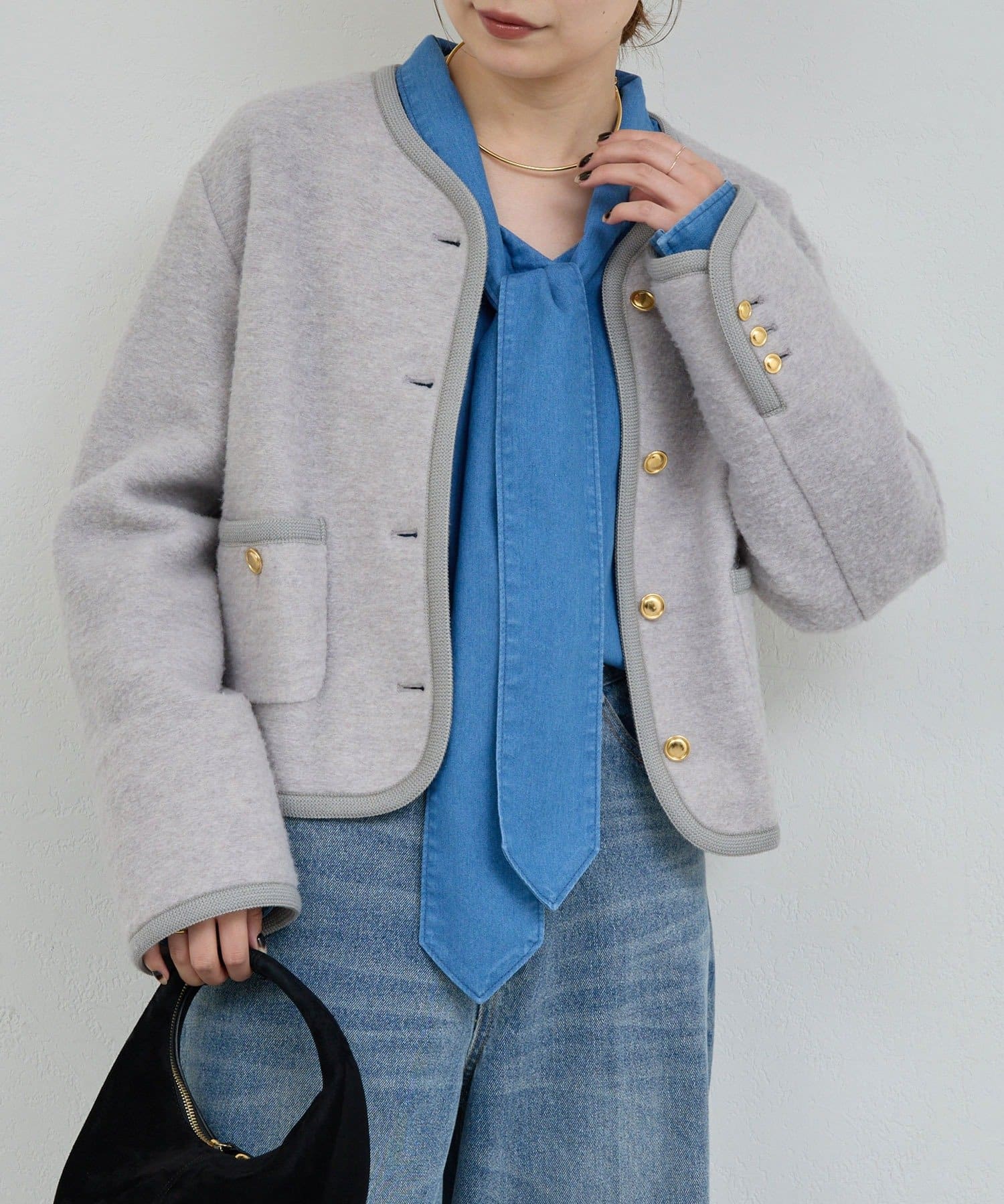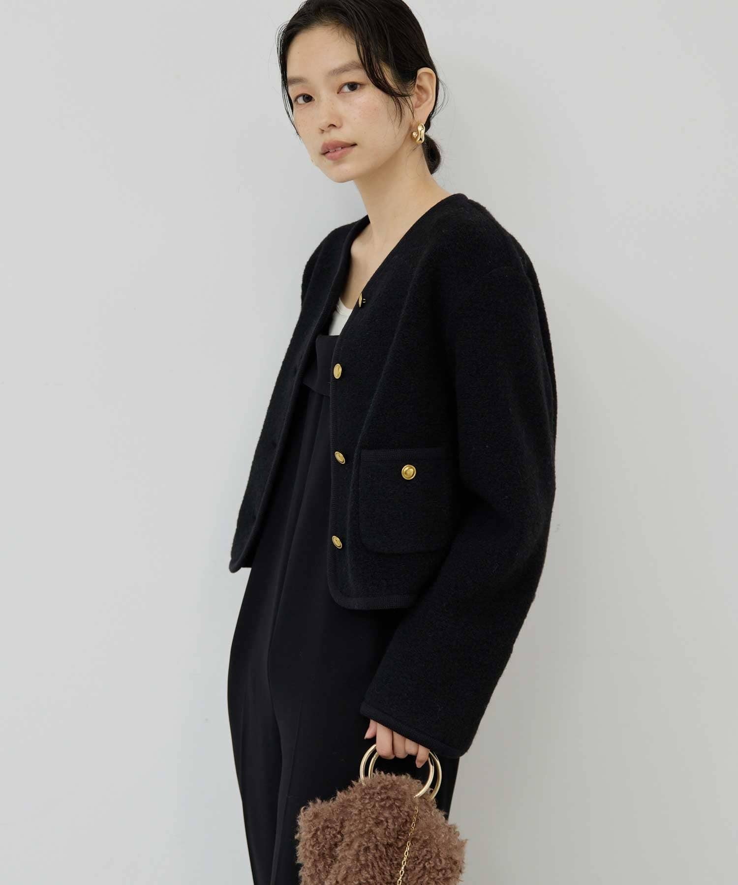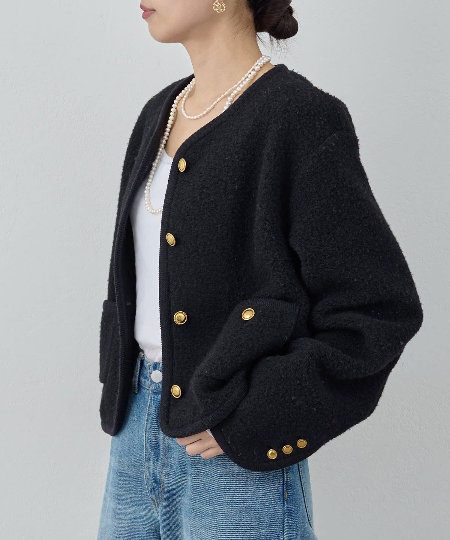 ●ツイードジャケットよりカジュアル感があるデザインに仕上げた1着。