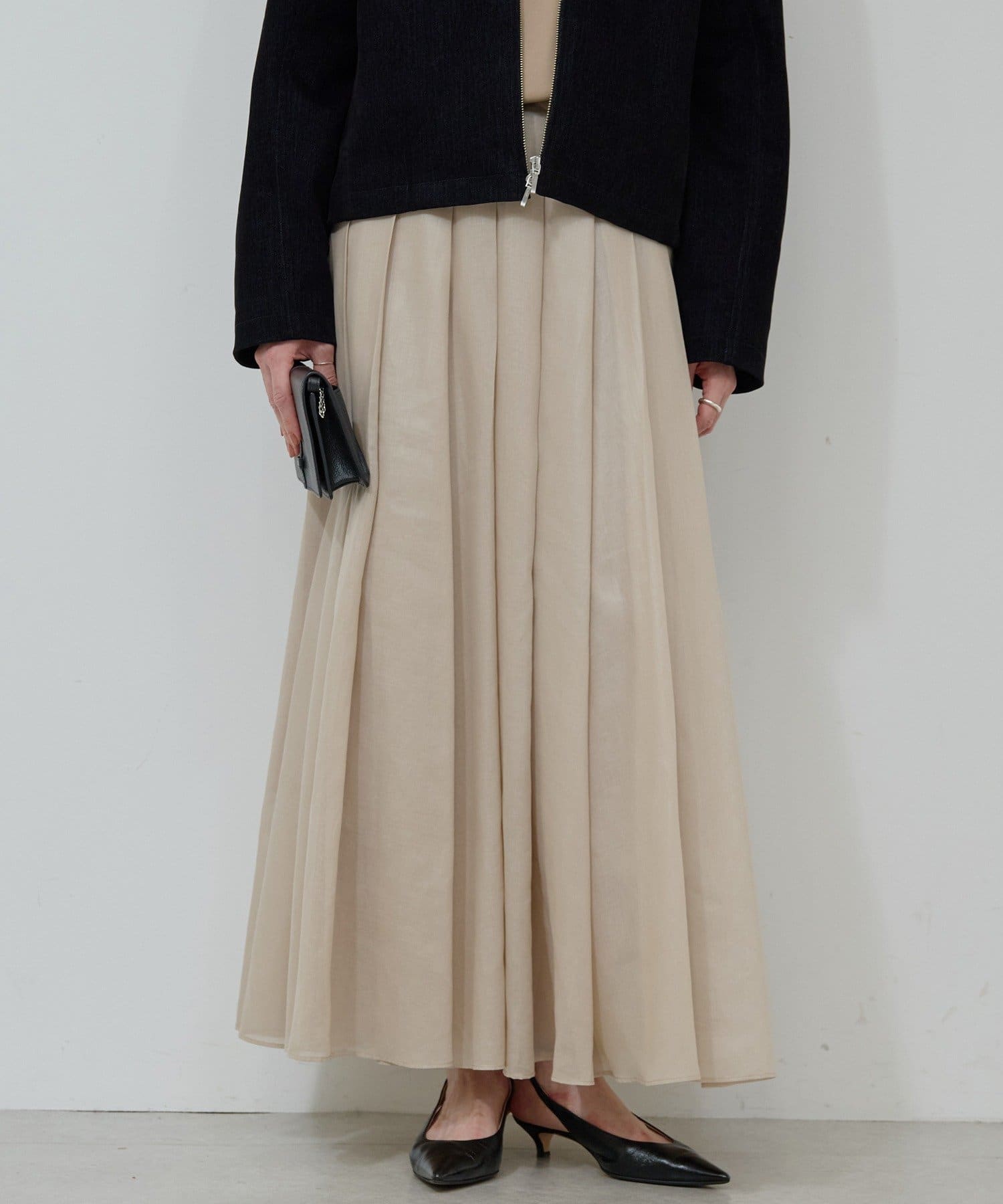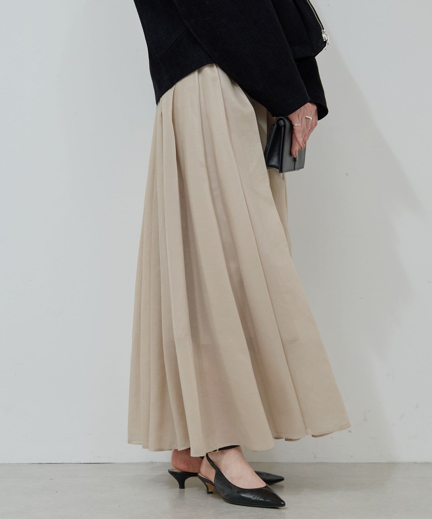 ●ふんわりと揺れ動く、シアー感のある素材を使用したプリーツスカート。