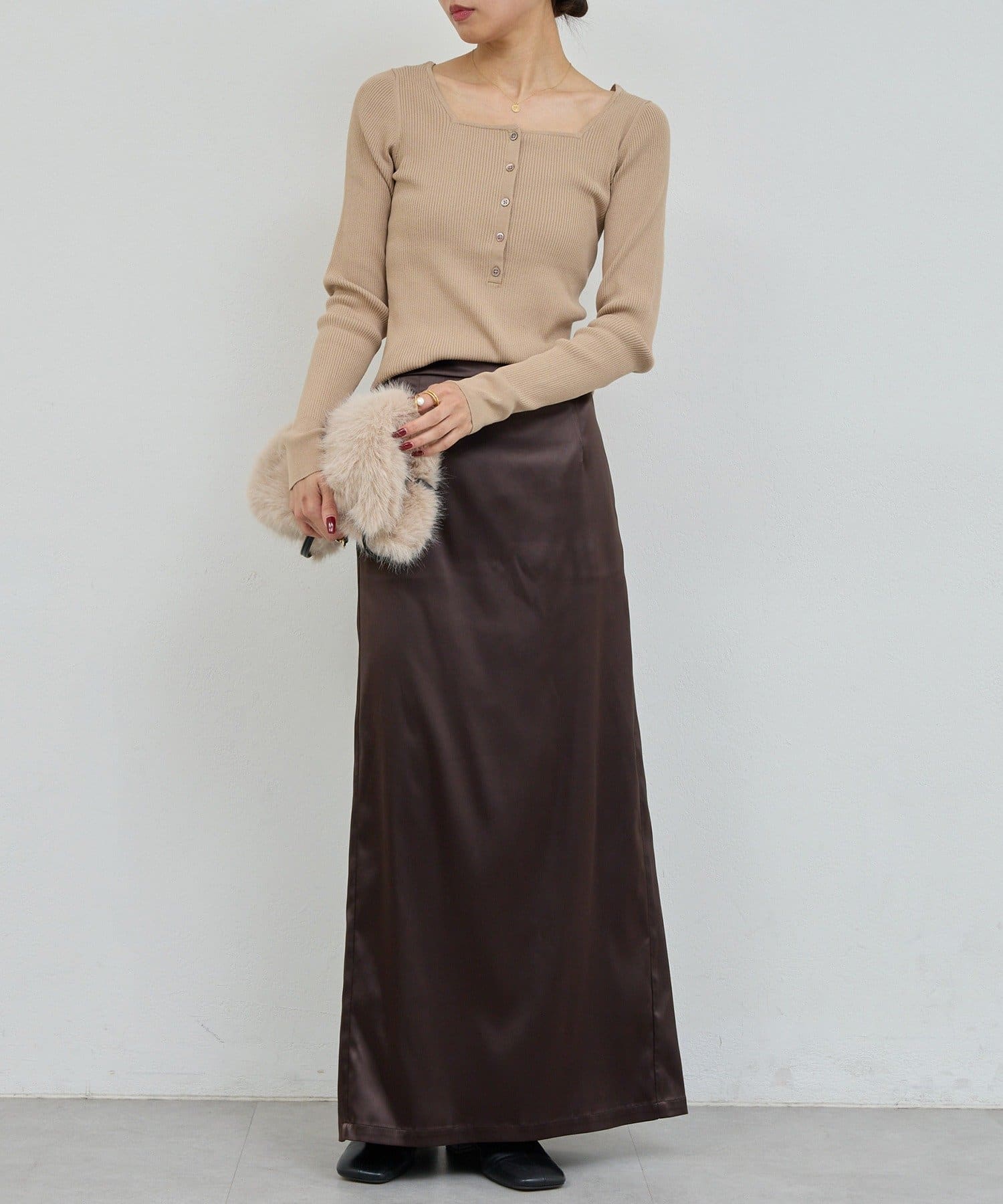 ●秋冬のニットやファーなどの素材感アイテムとも相性◎
