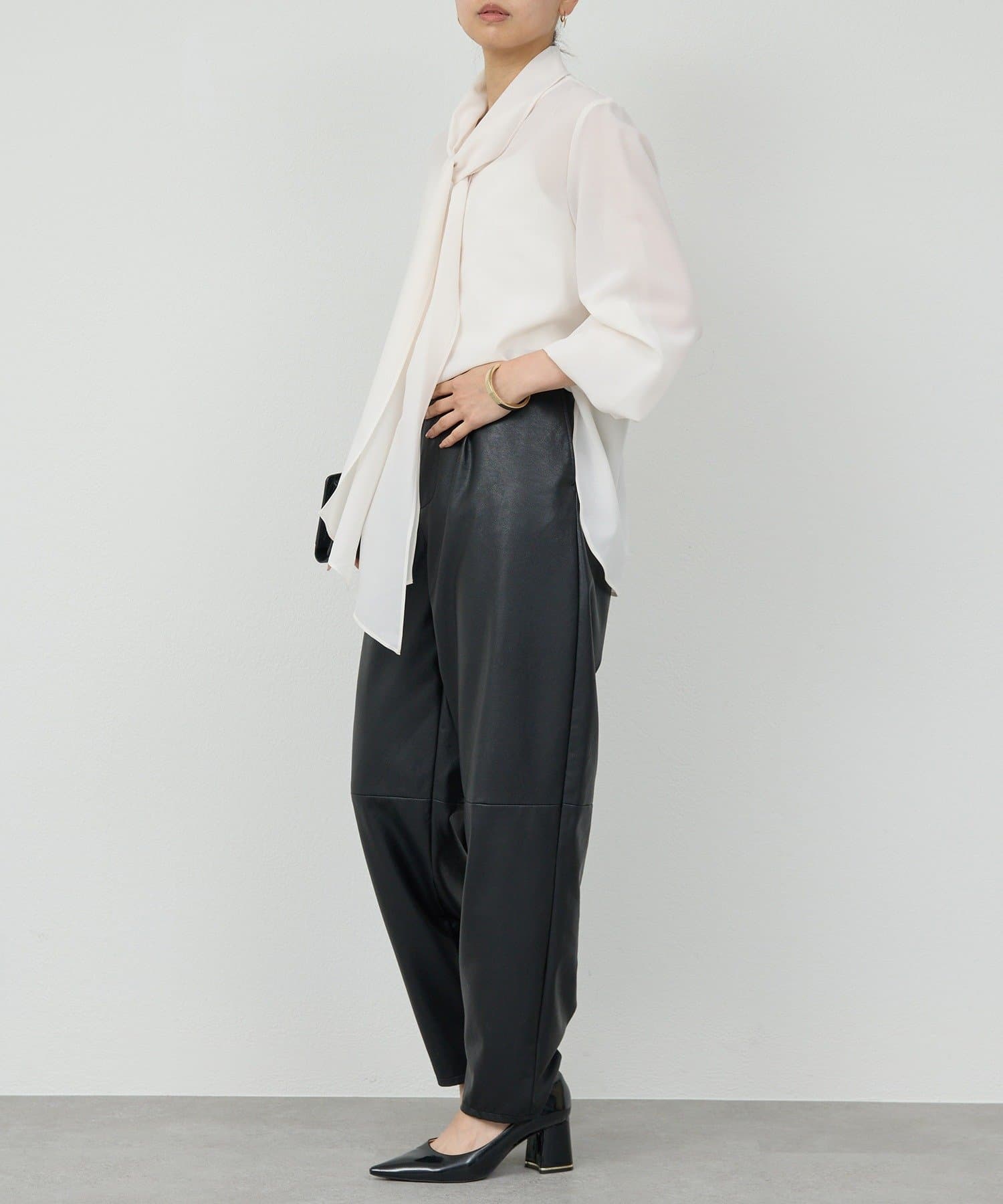 ●ゆるやかなカーブラインが脚のラインをカバーしつつ、立体的で今っぽいシルエット。