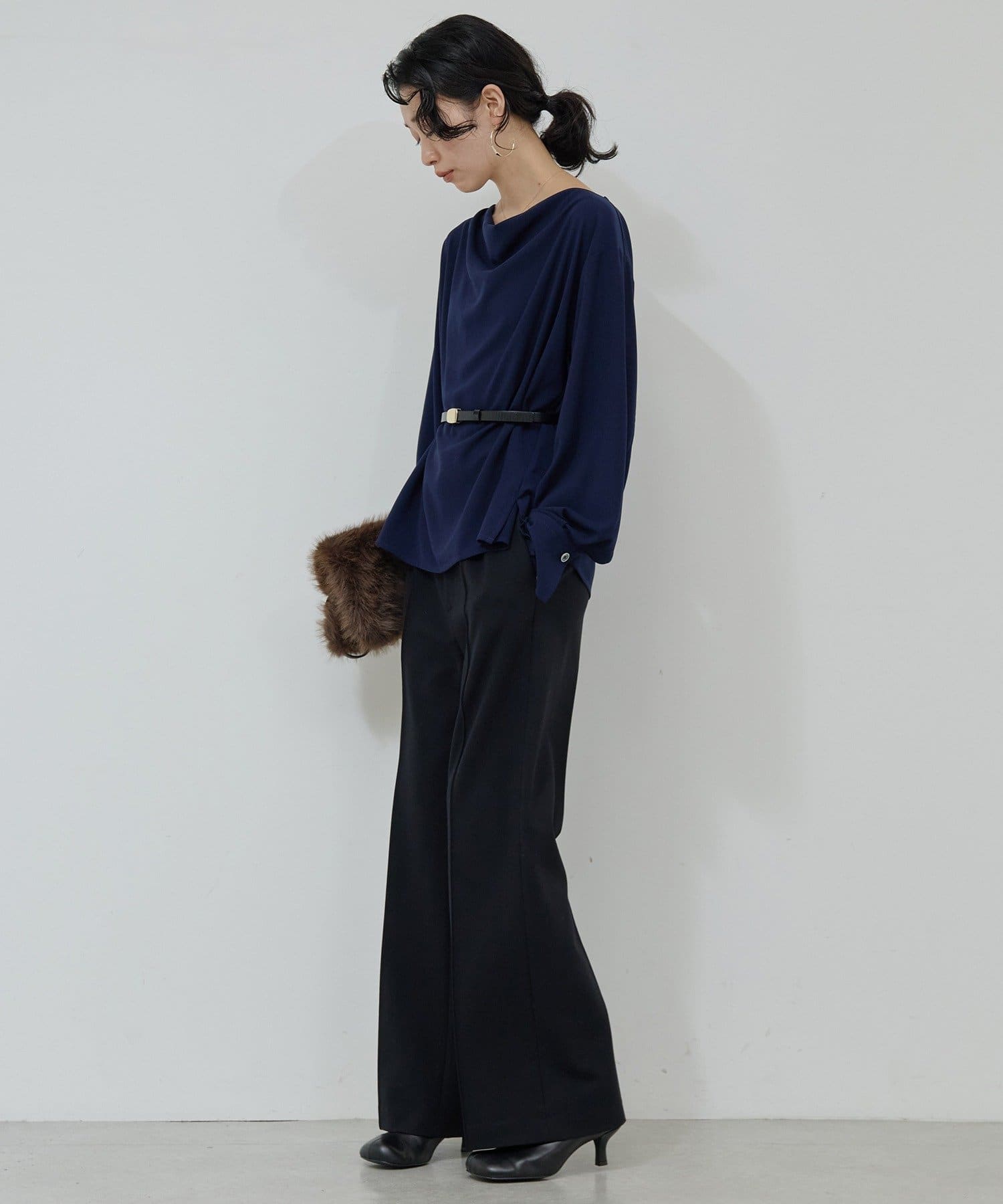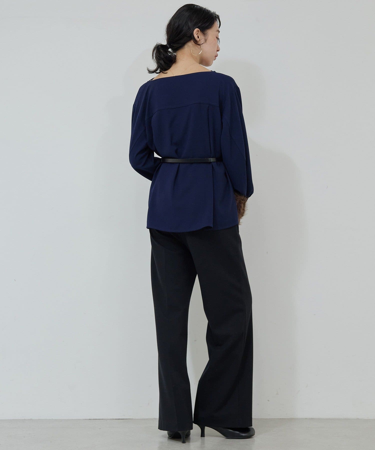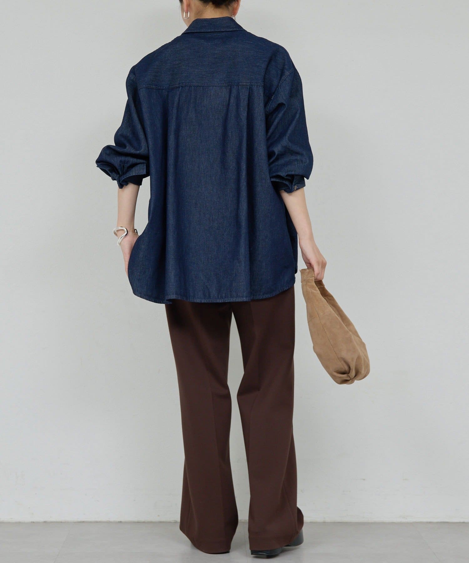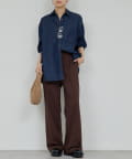 ●同素材ブラウスとセットアップや、デニム等カジュアルなアイテムとも相性抜群。