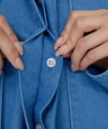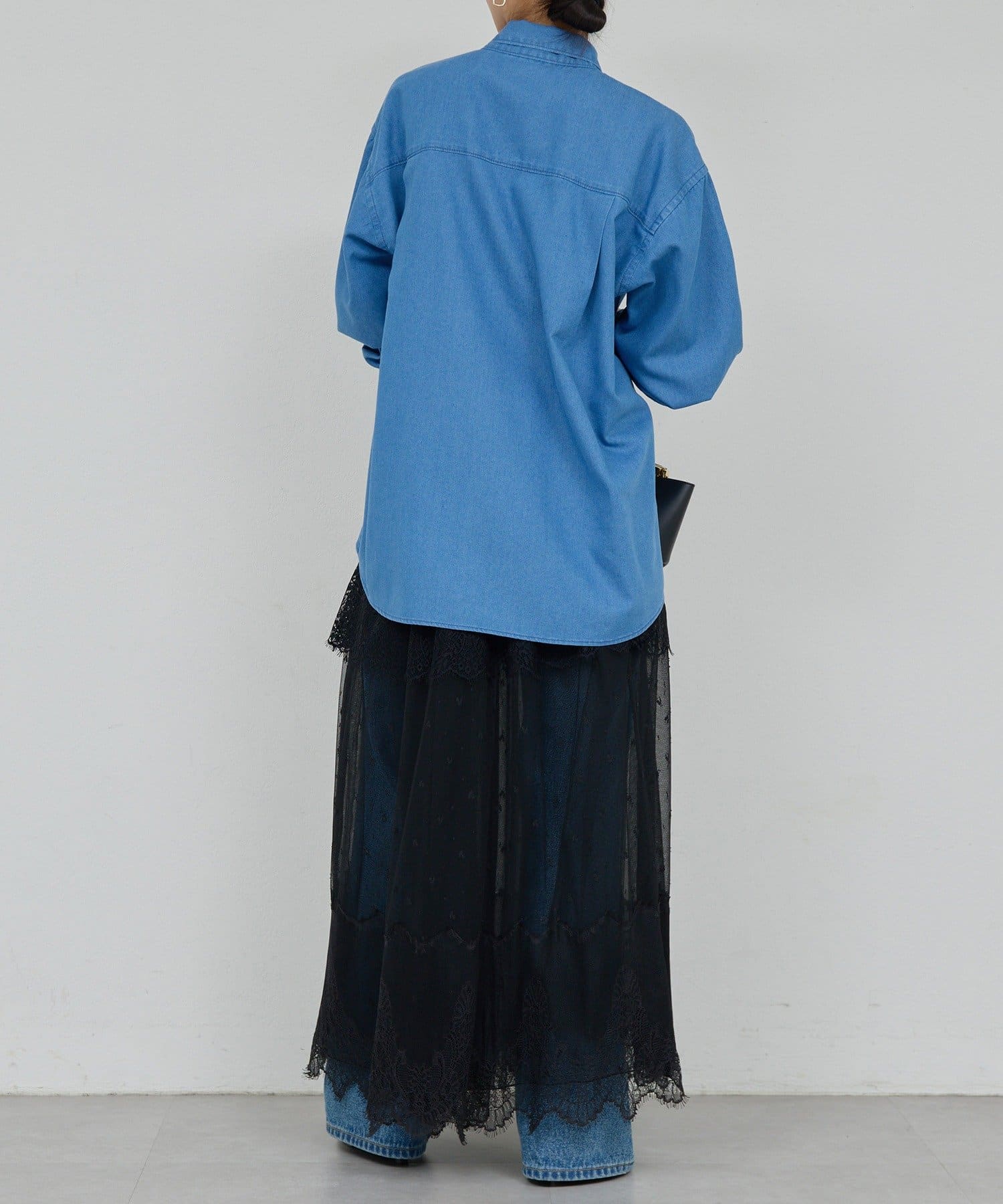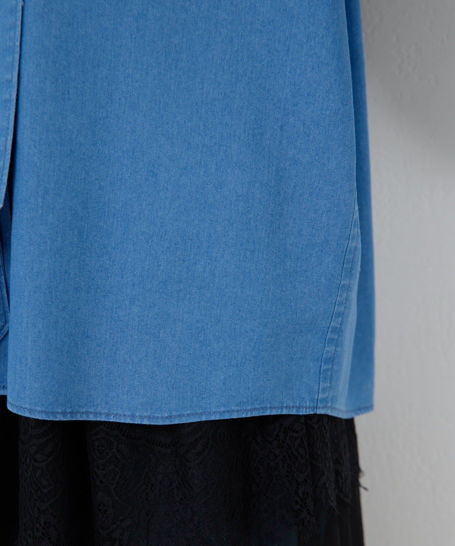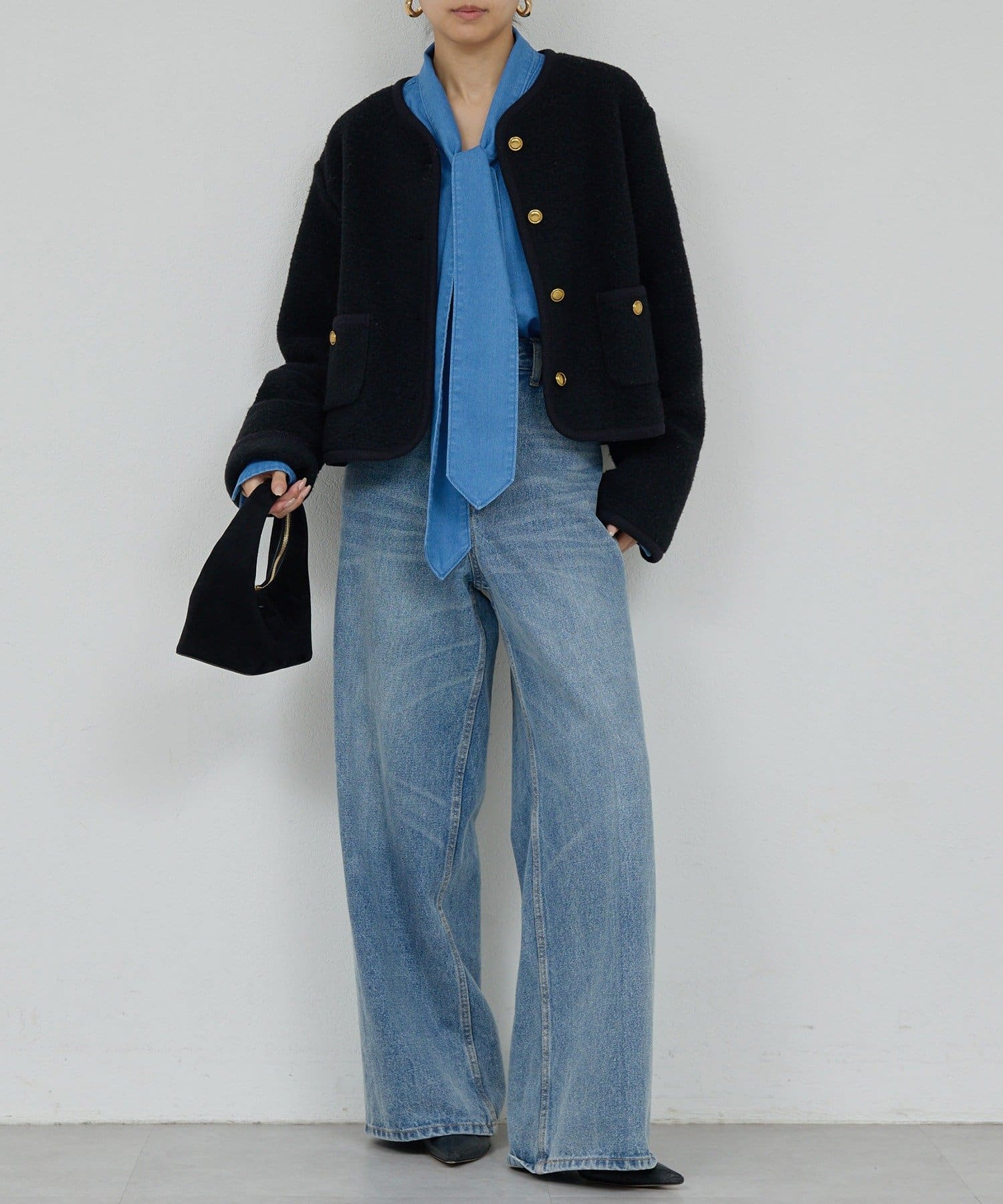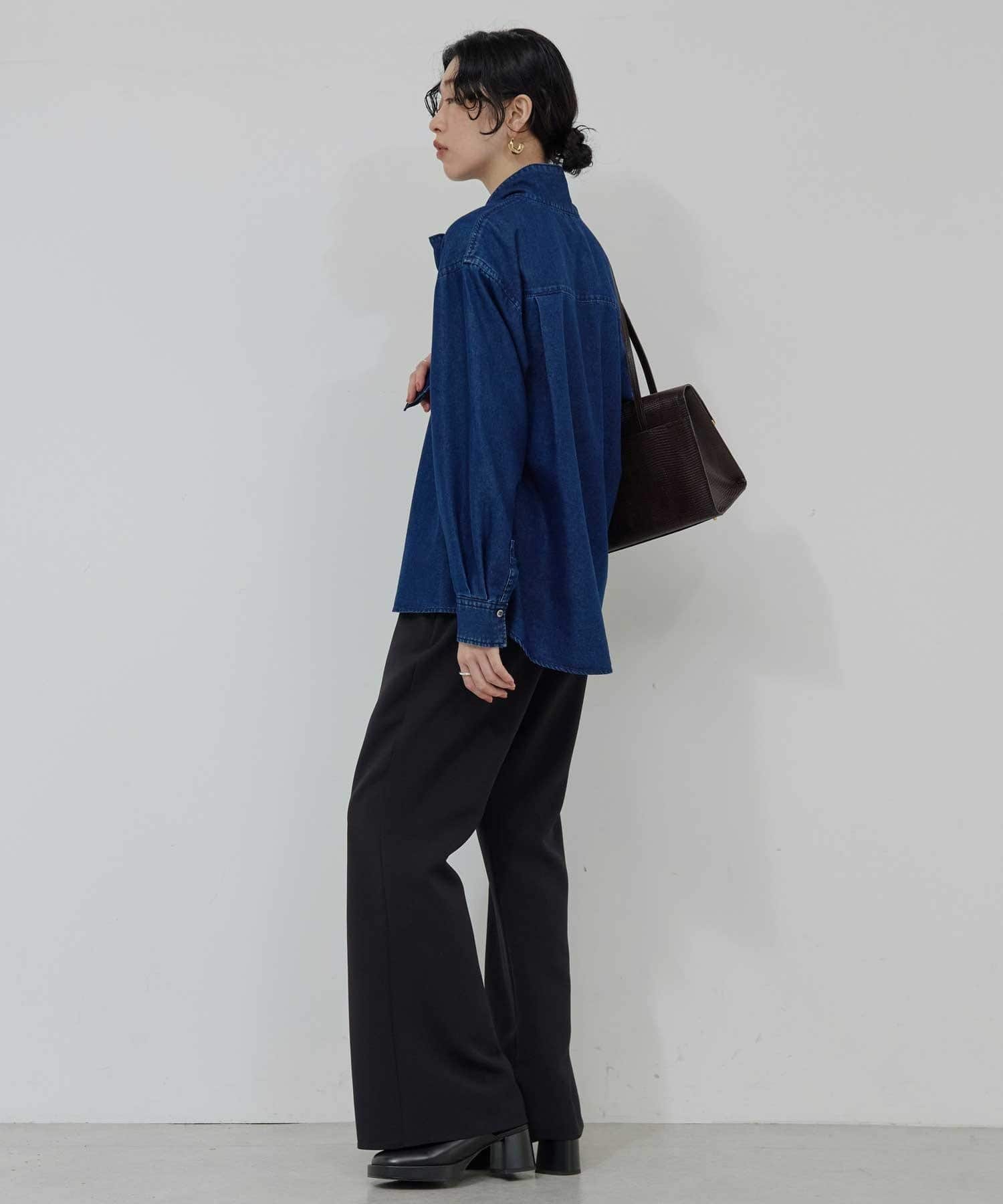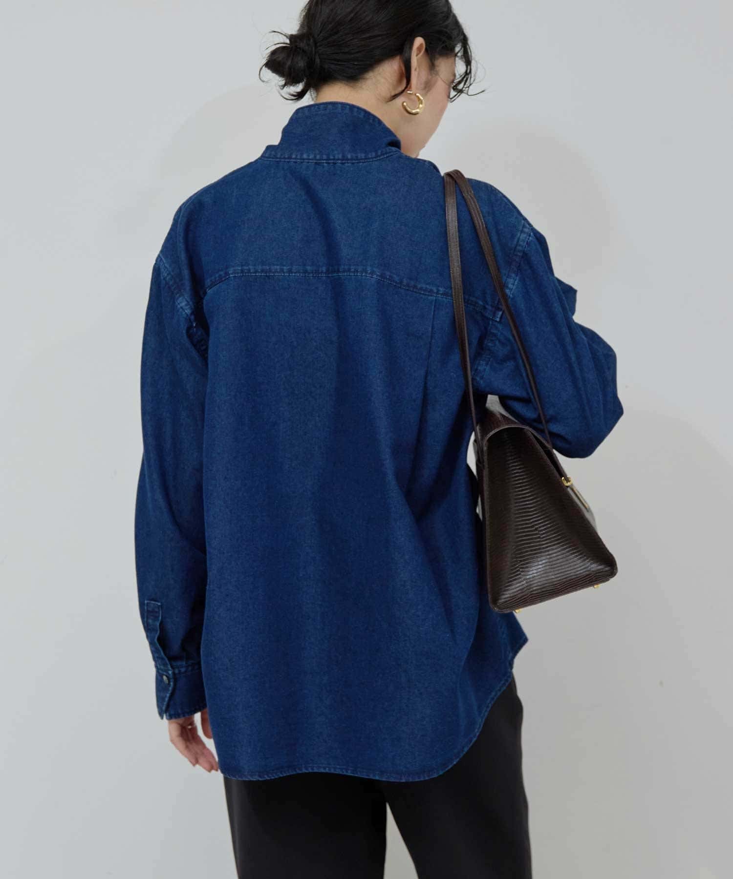 ●カジュアル過ぎず上品見えするデニム素材のボウタイブラウス。