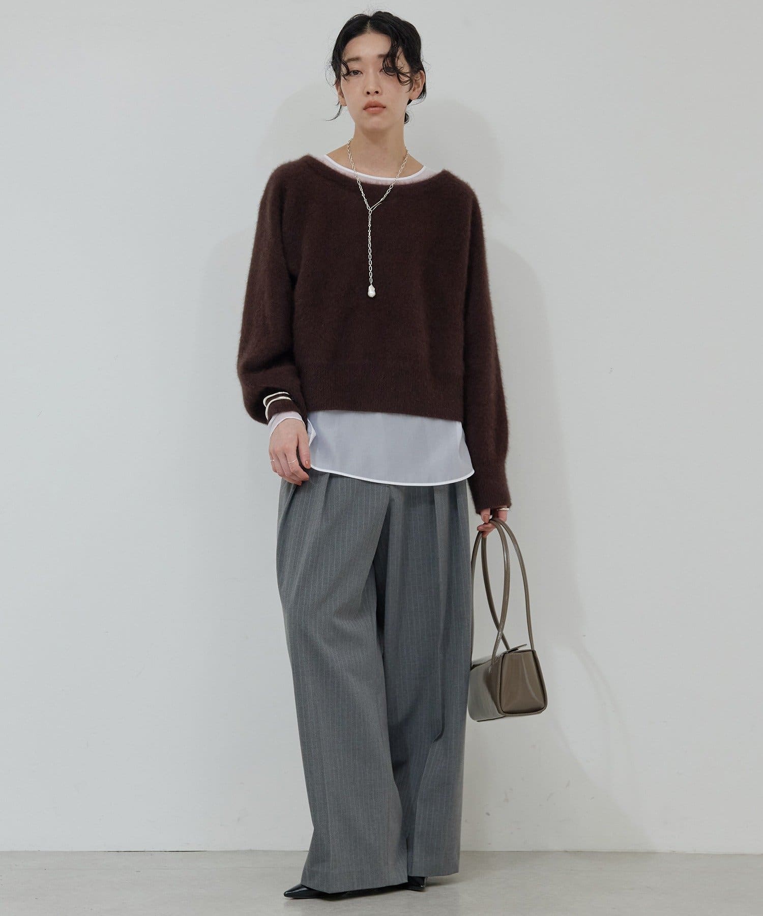 ●ブラウスとのレイヤードはもちろんワンピースやサロペットとの着合わせもおすすめ。
