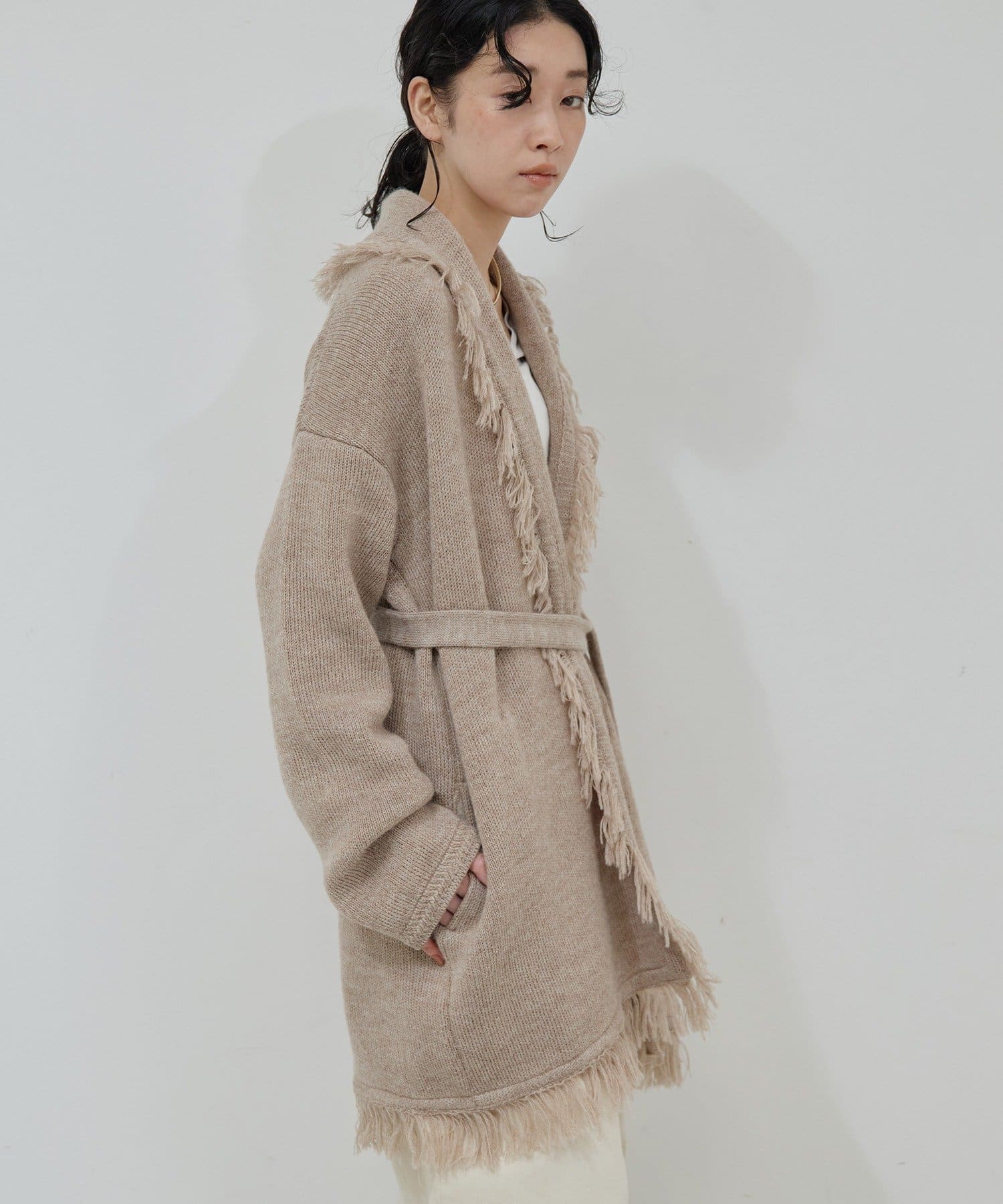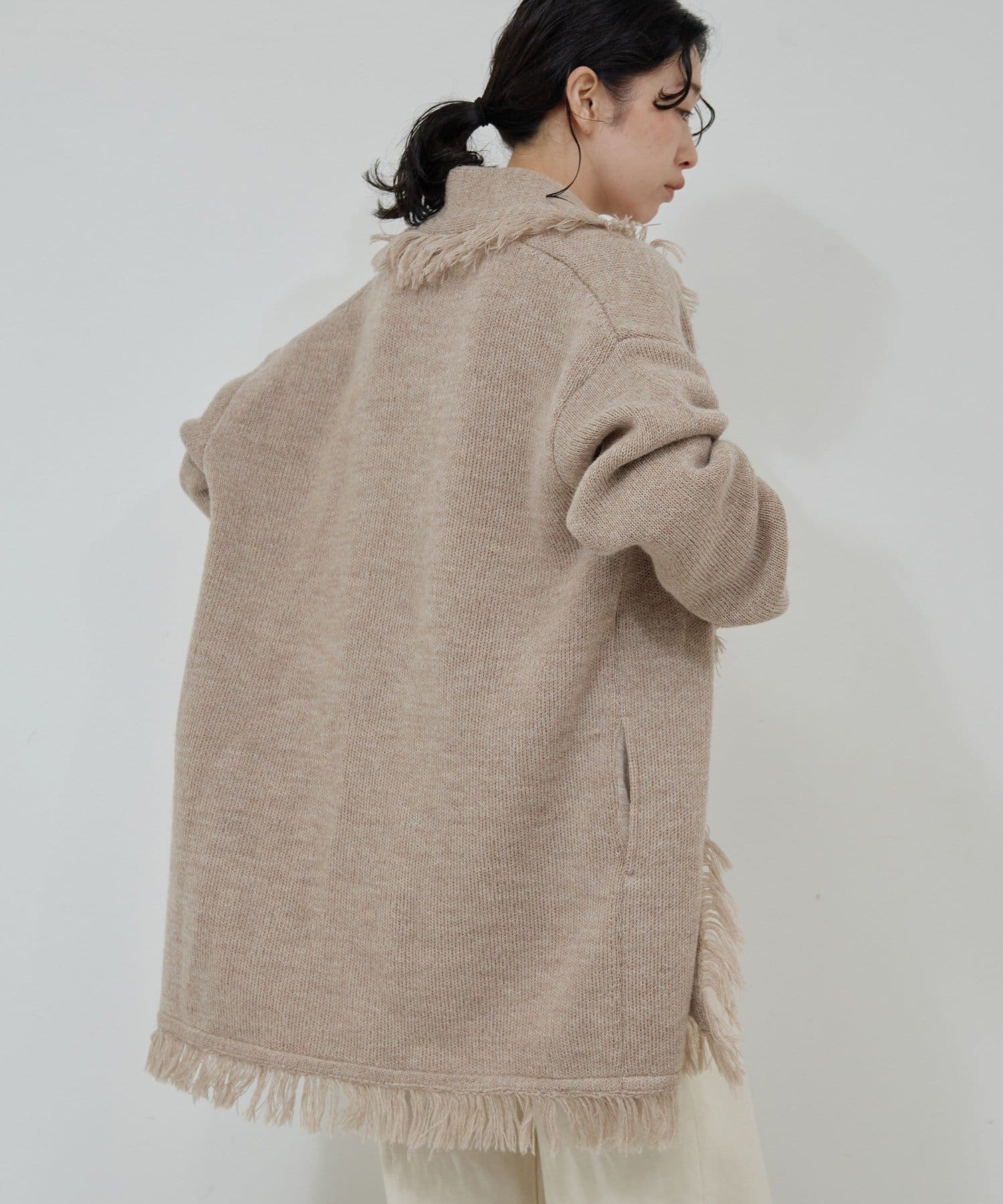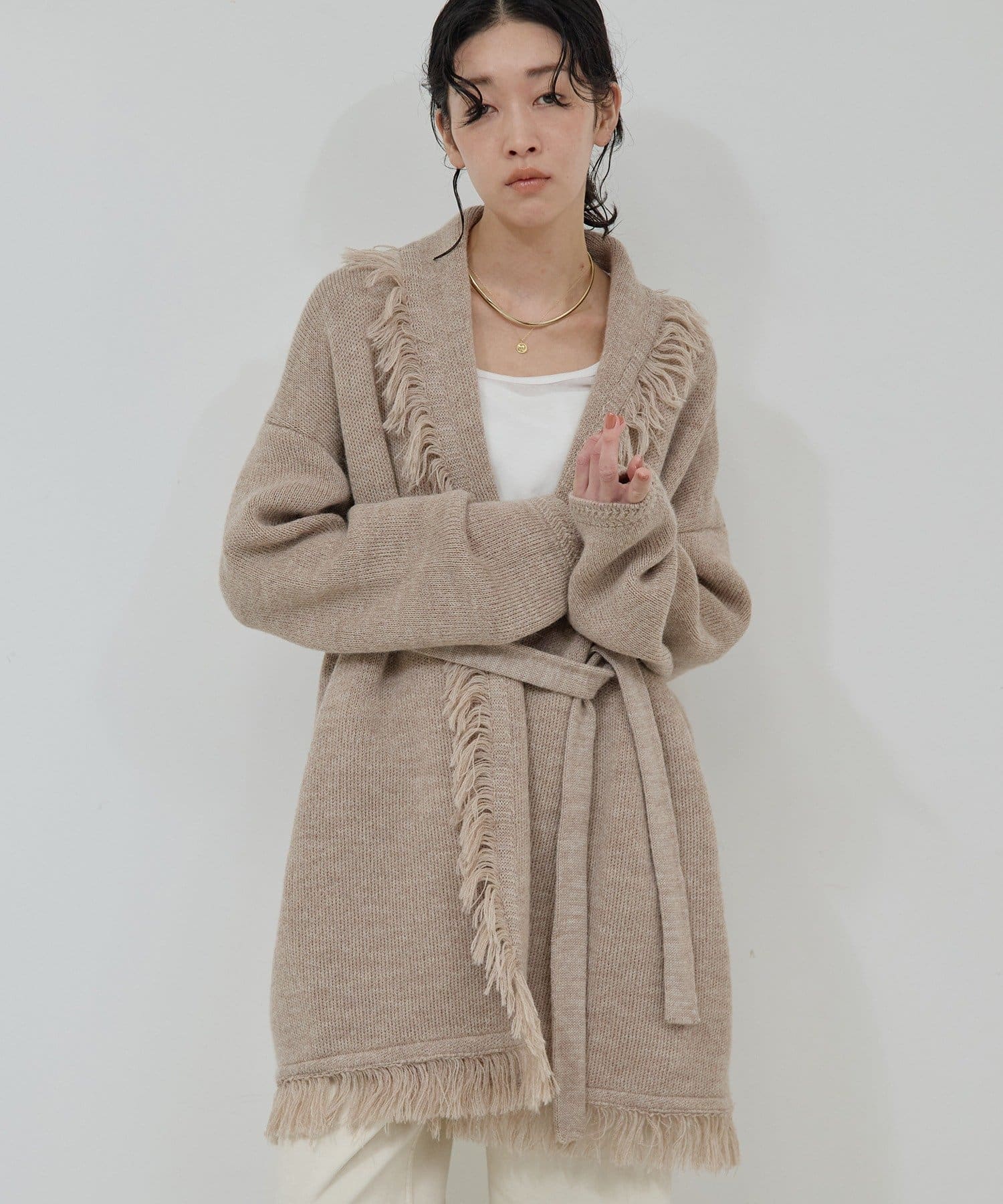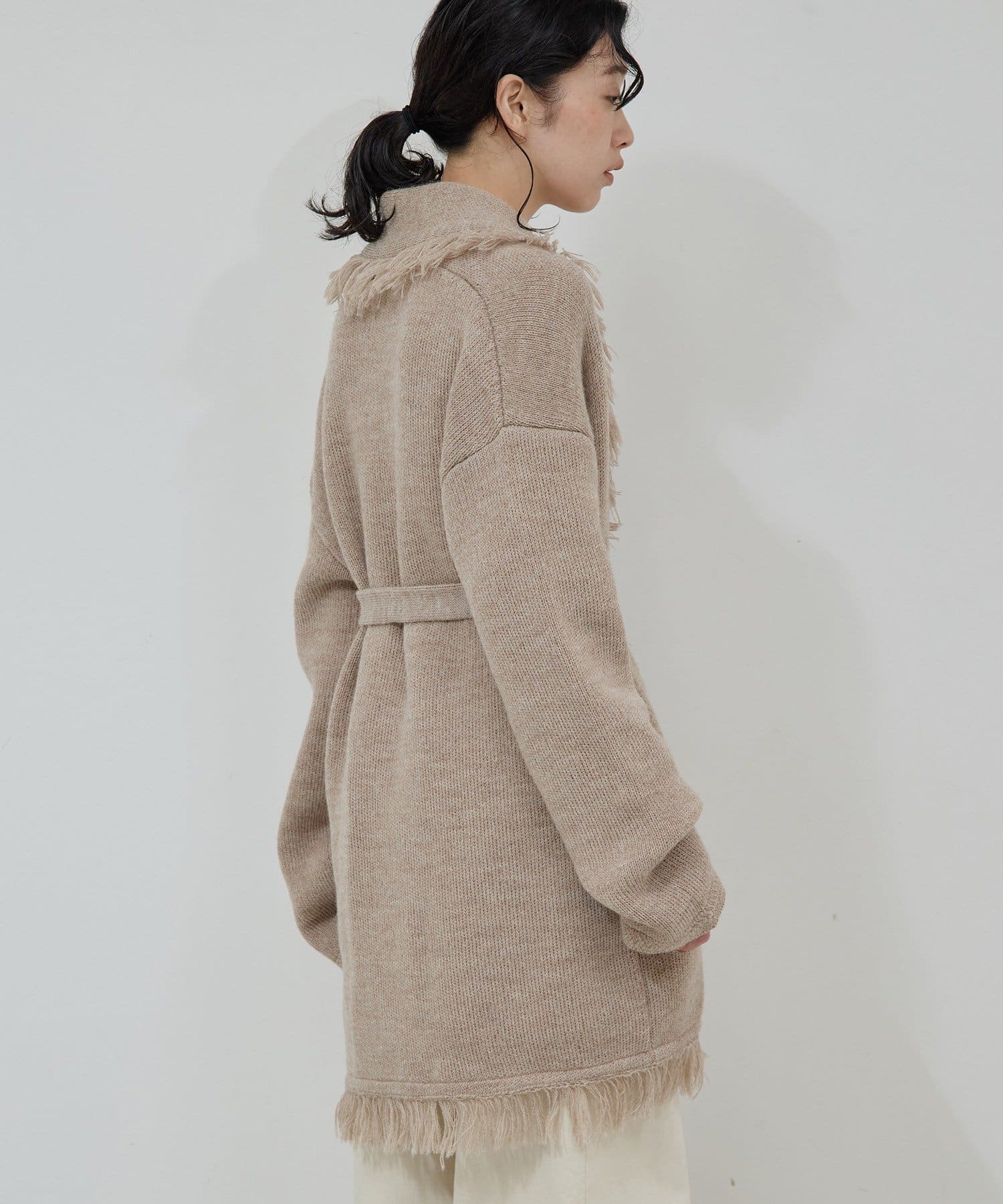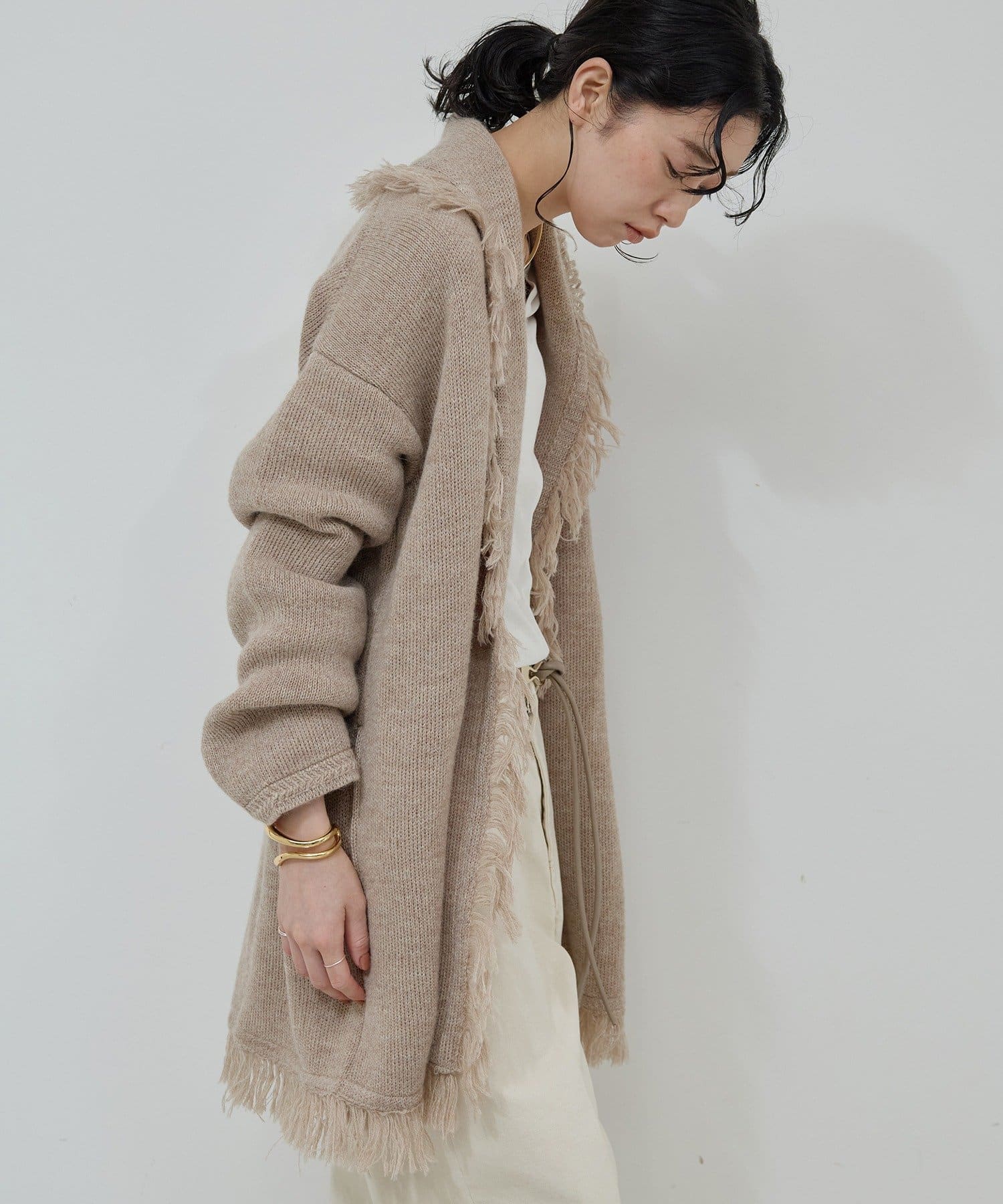 ●たっぷりフリンジで主役になるニットカーディガン。