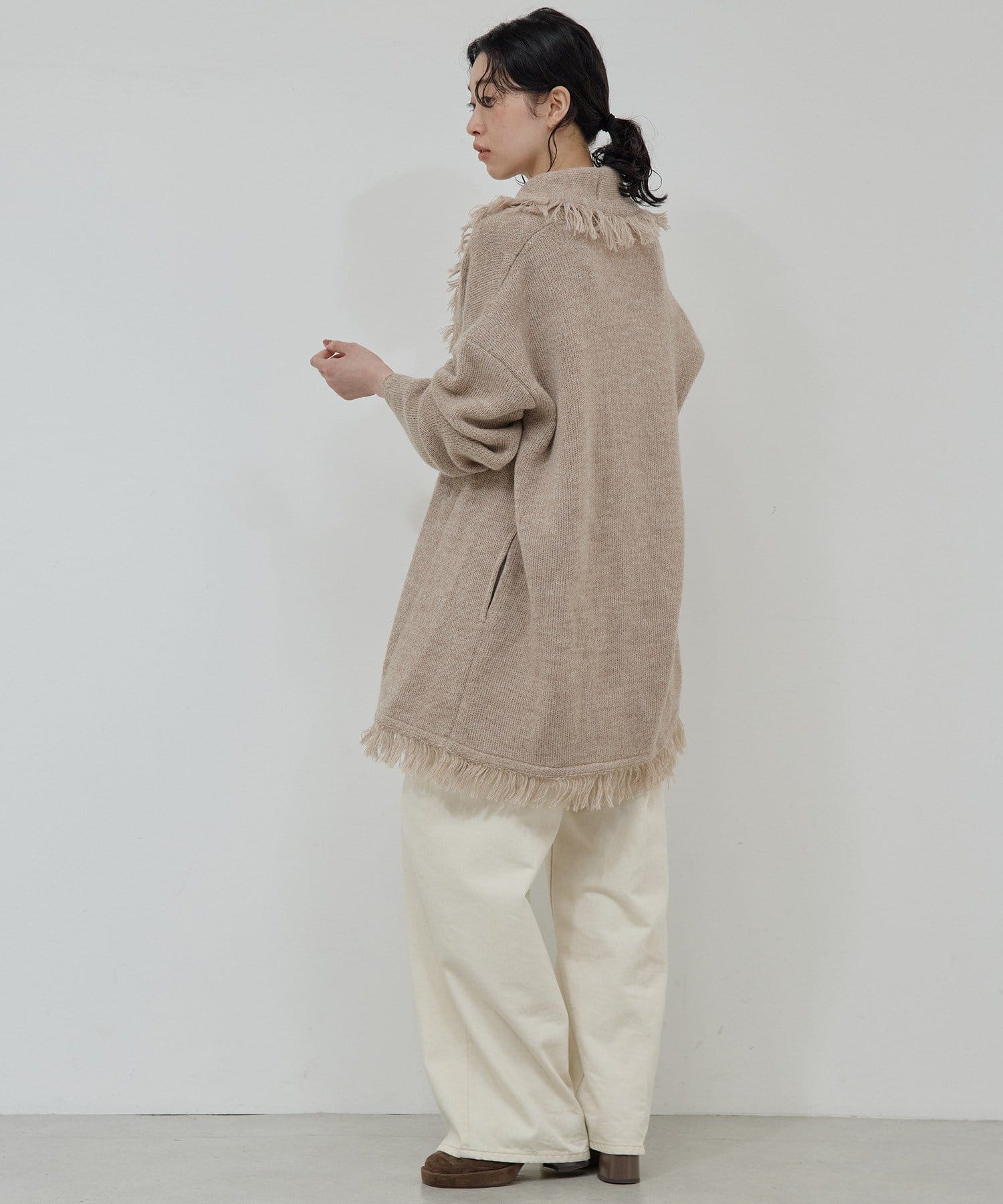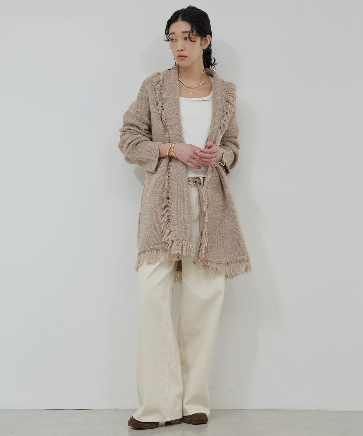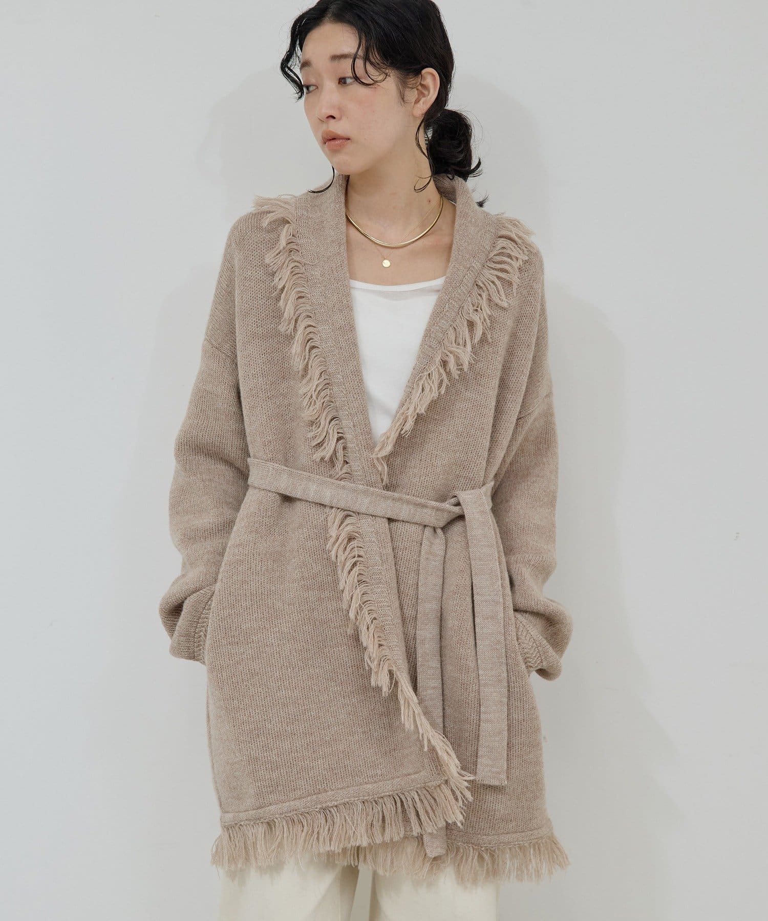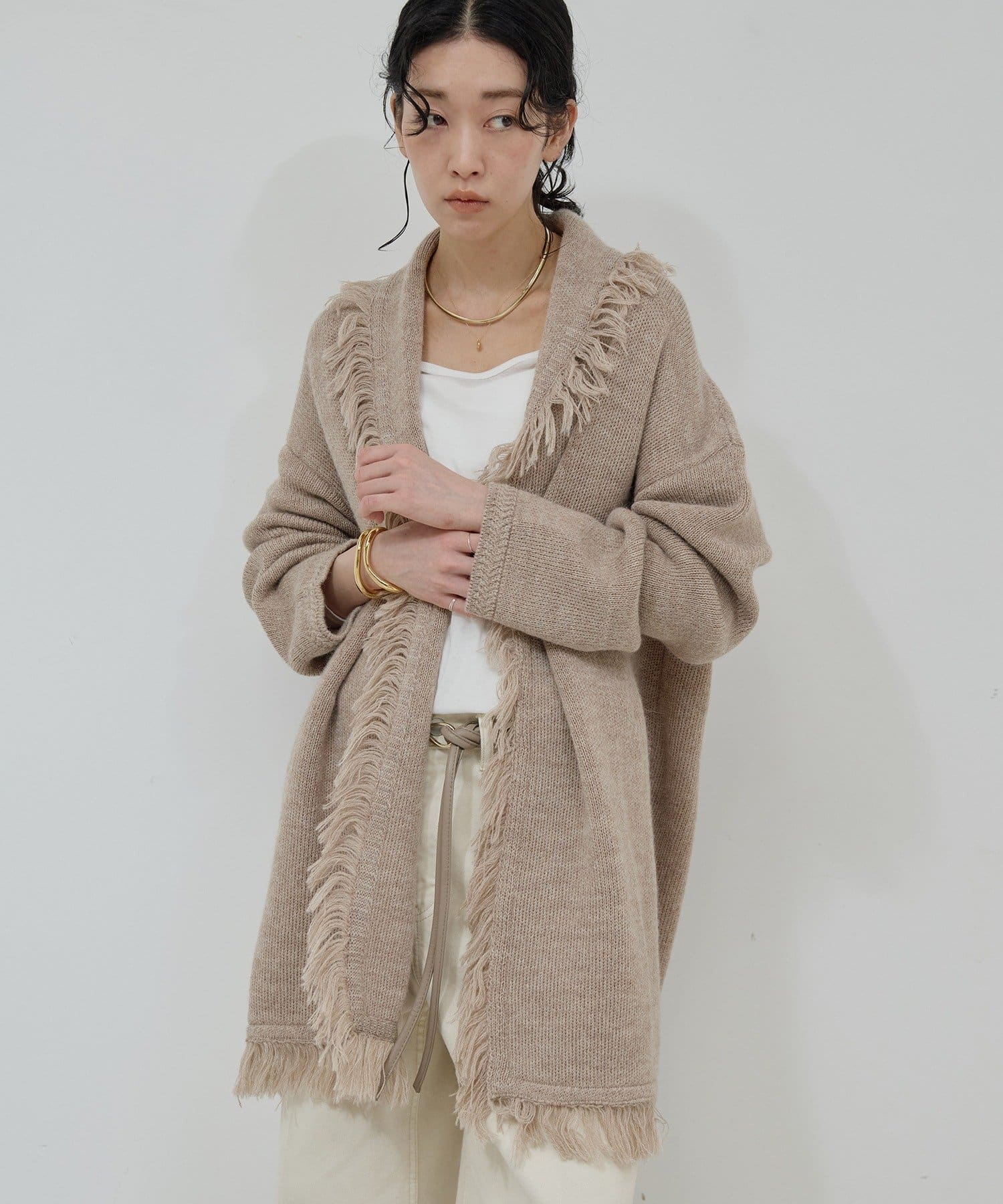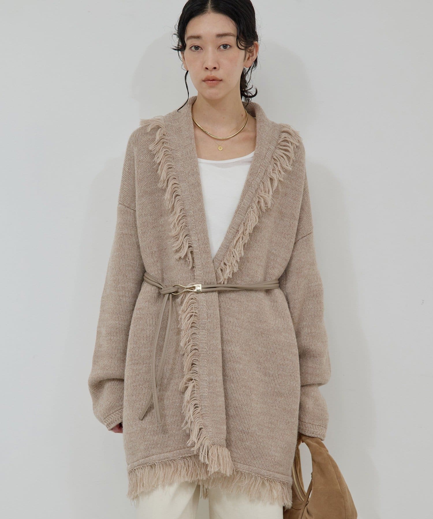 ●たっぷりフリンジで主役になるニットカーディガン。