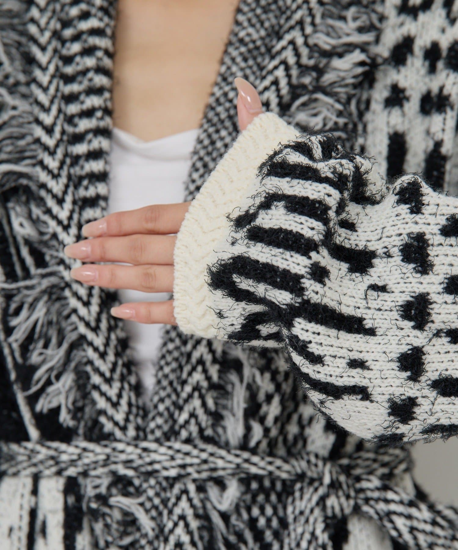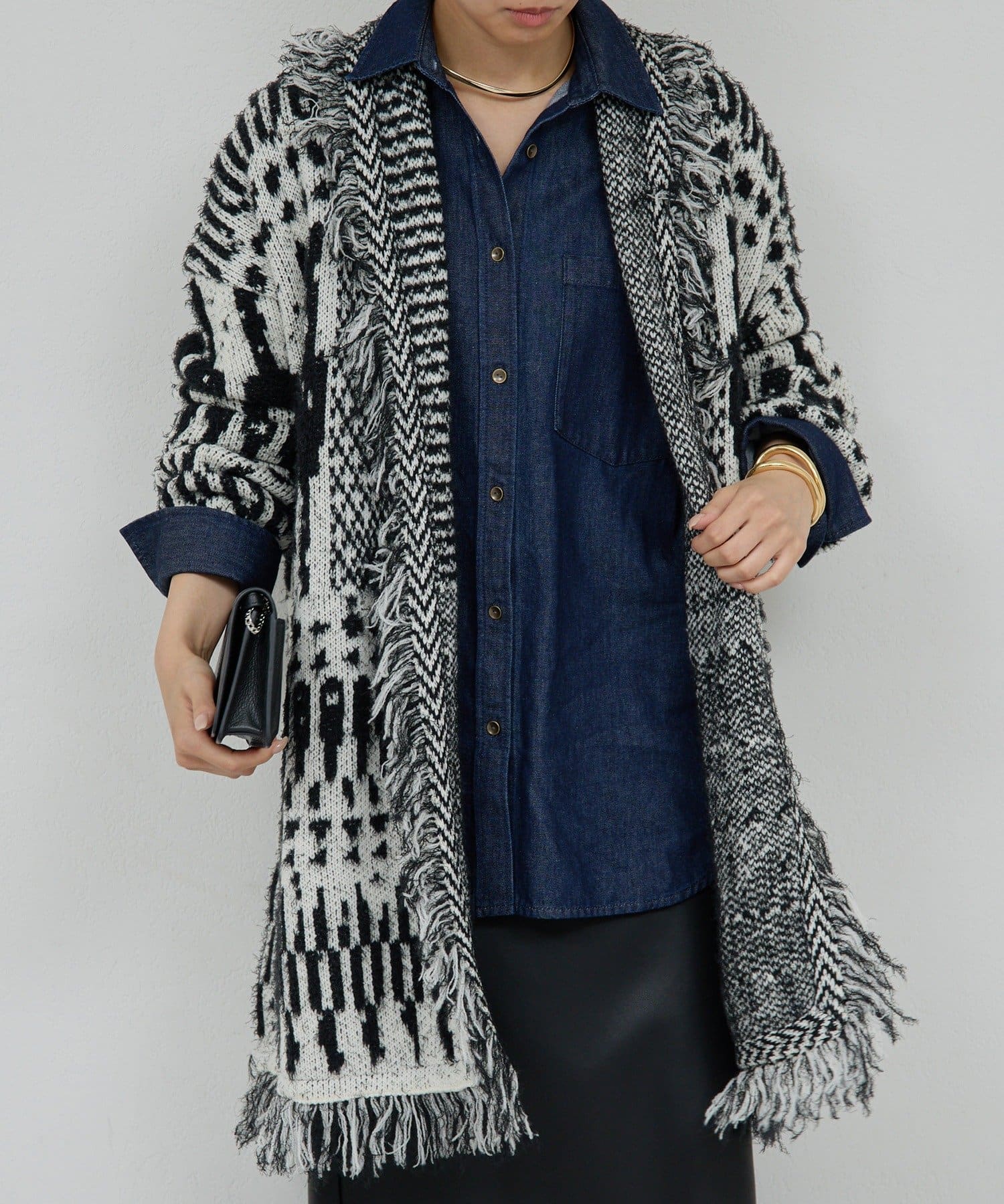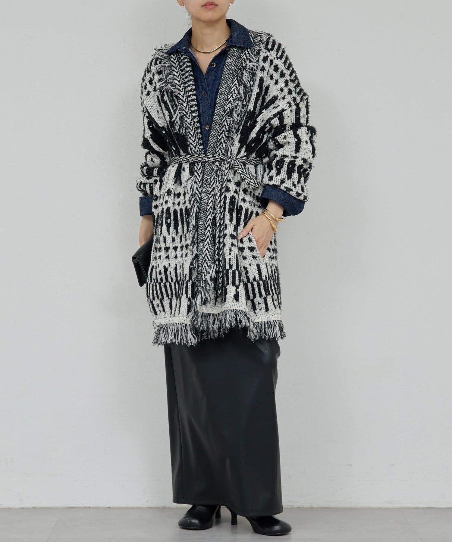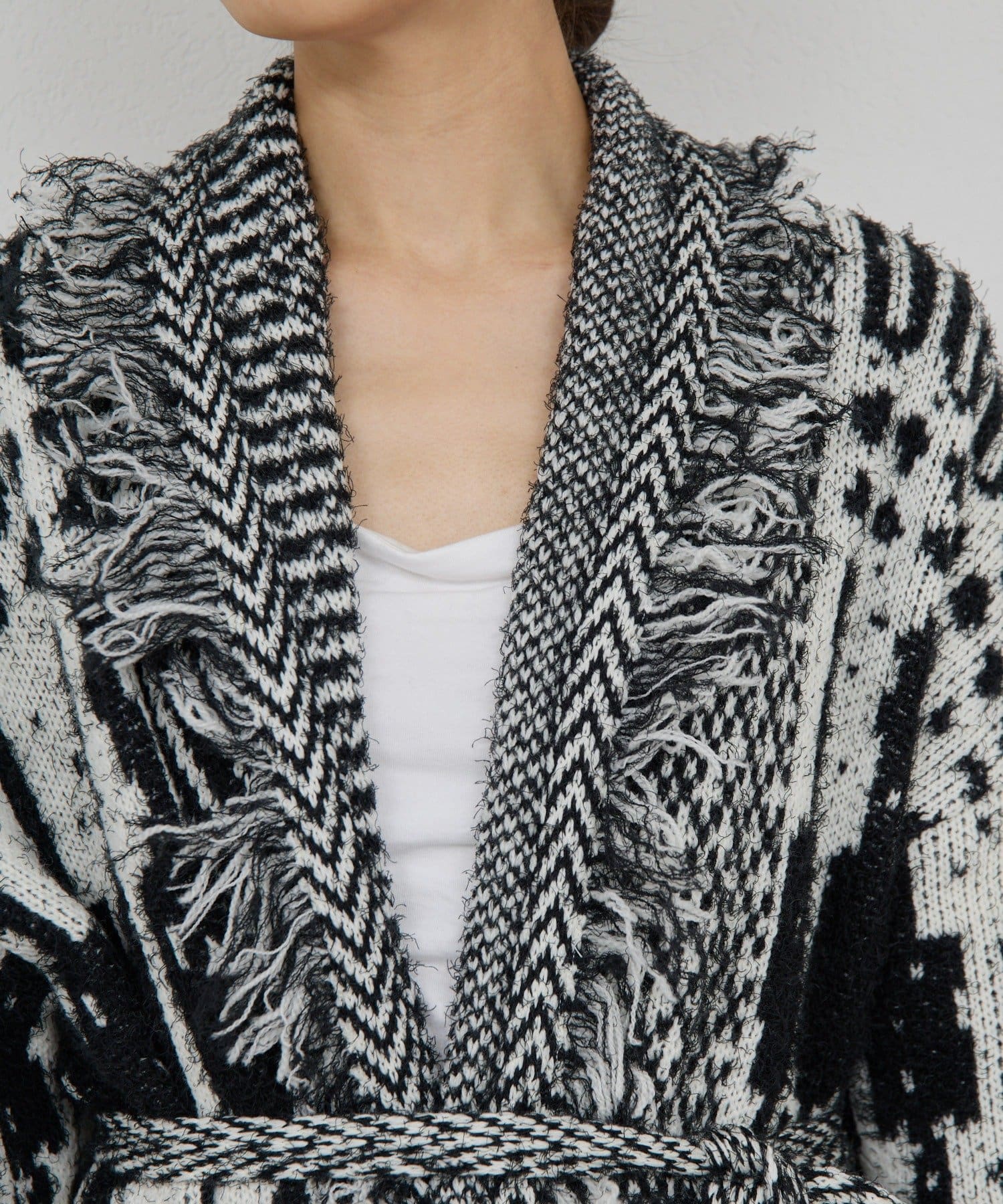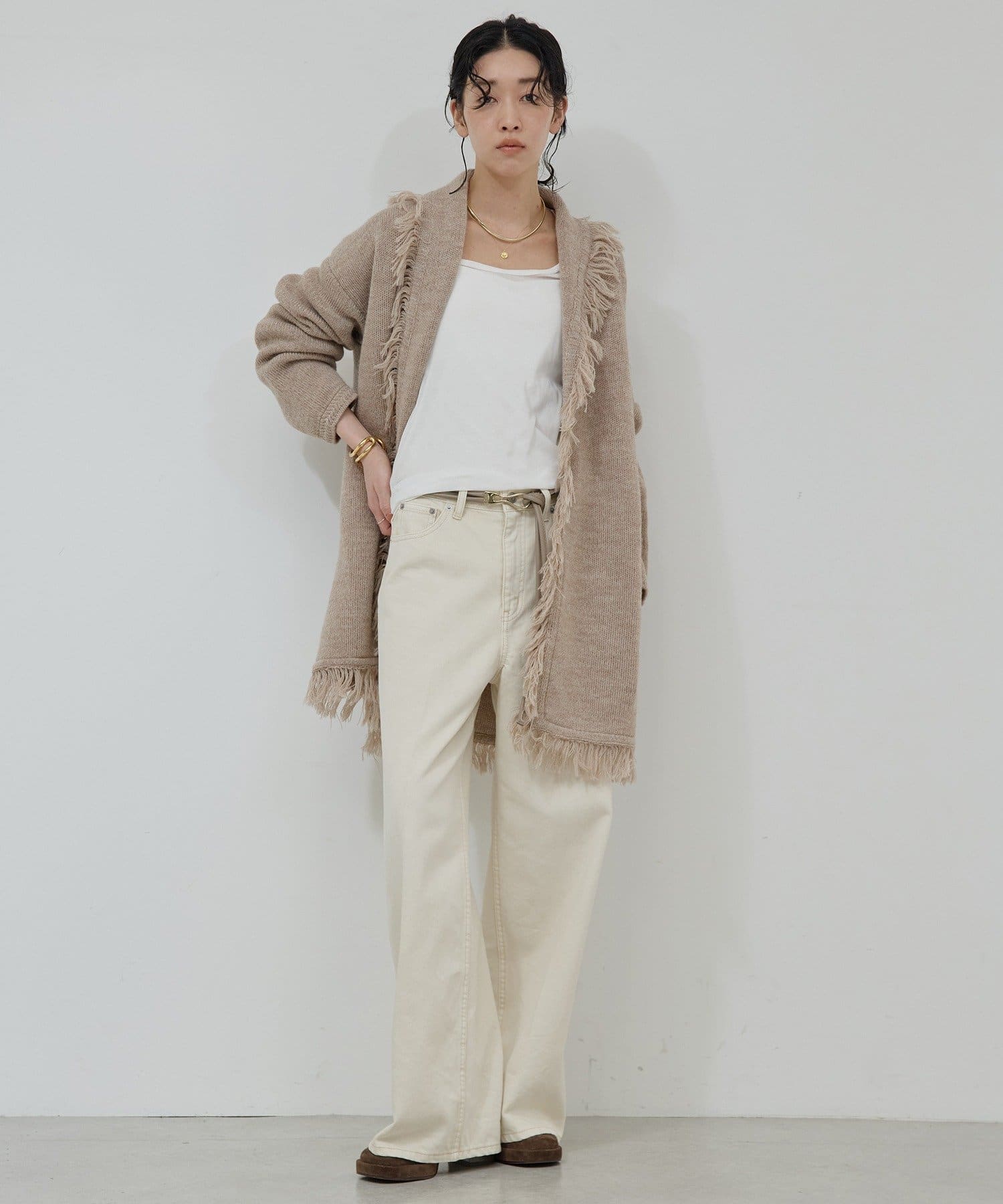 ●たっぷりフリンジで主役になるニットカーディガン。