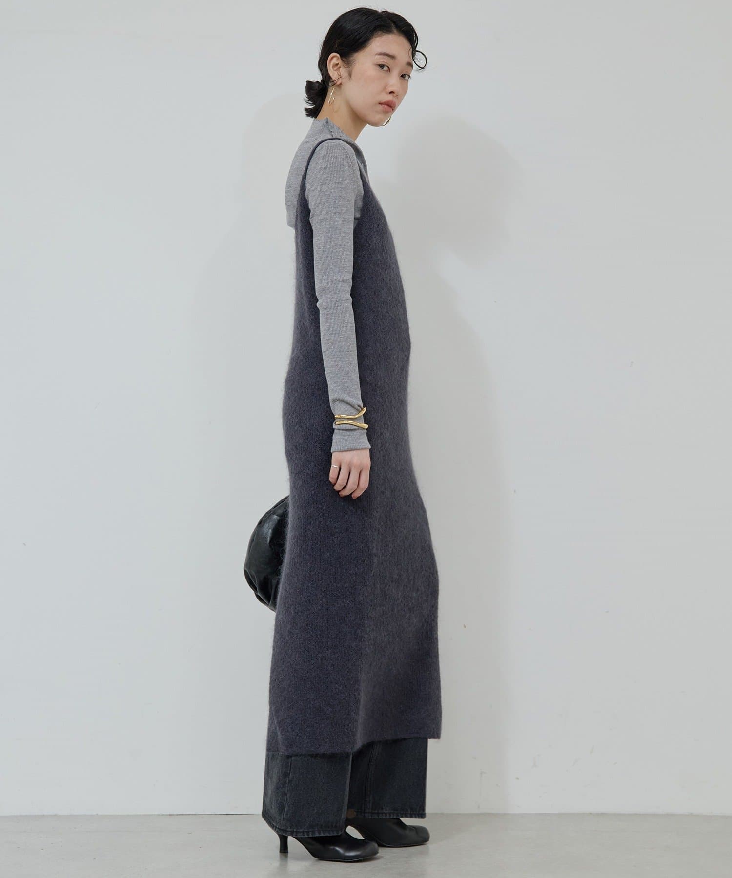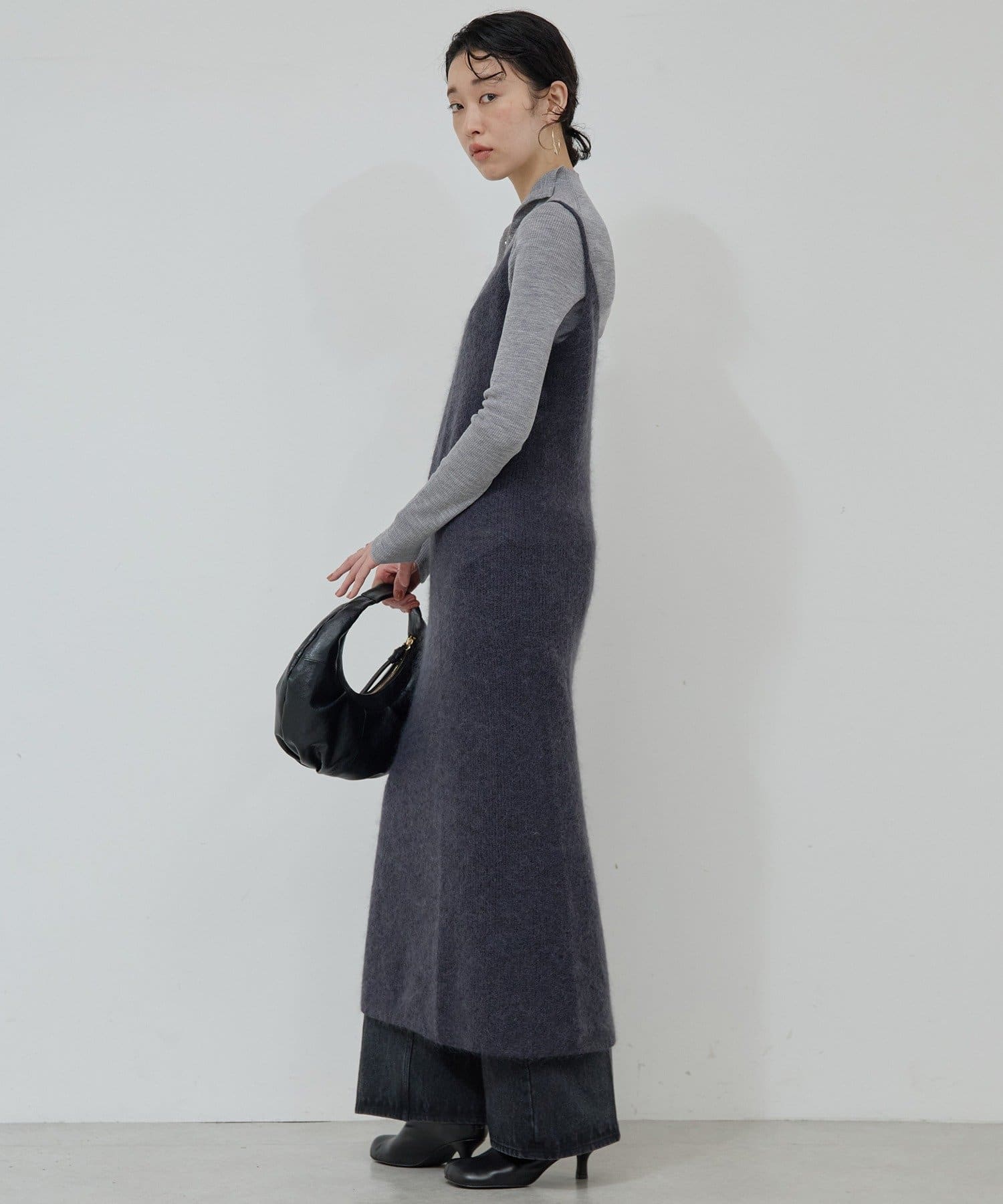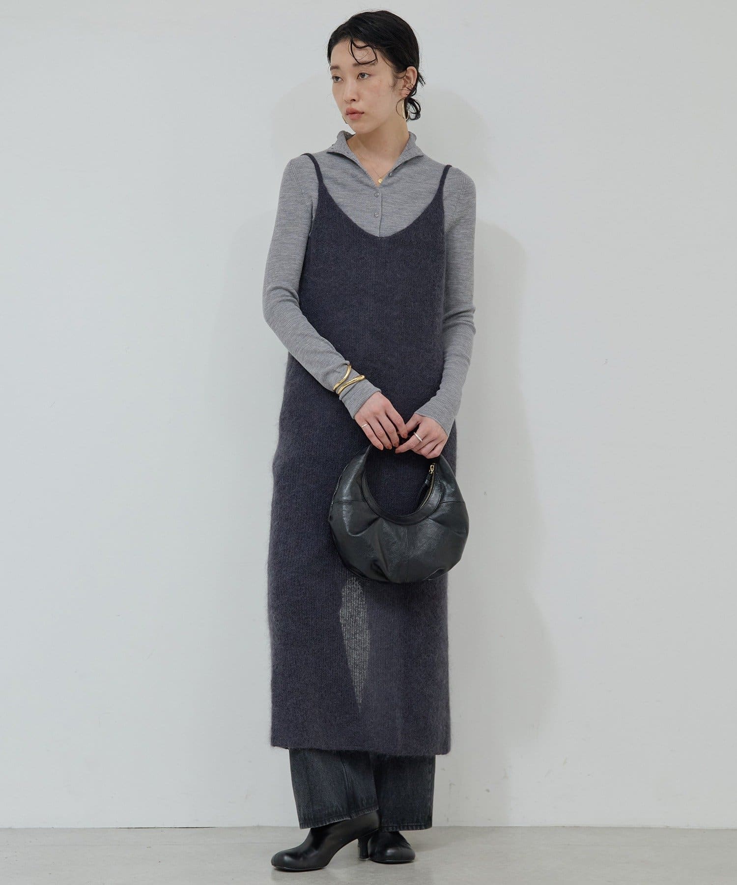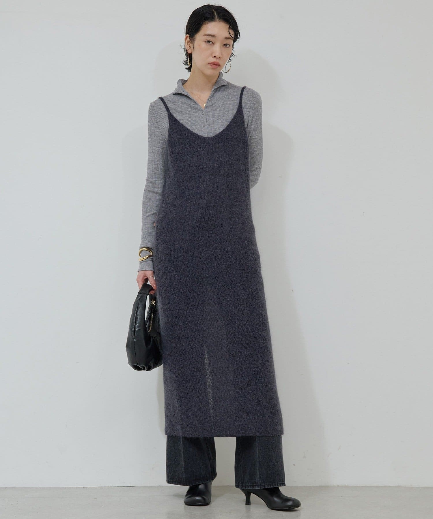 ●比留川游さんコラボのニットキャミワンピースとのレイヤードもおすすめ。
