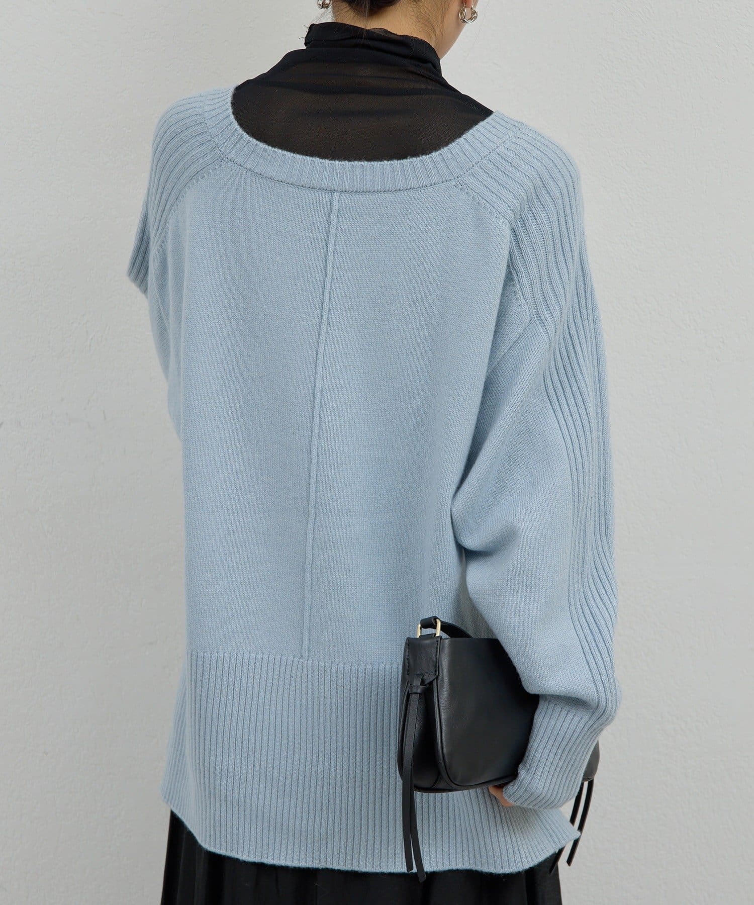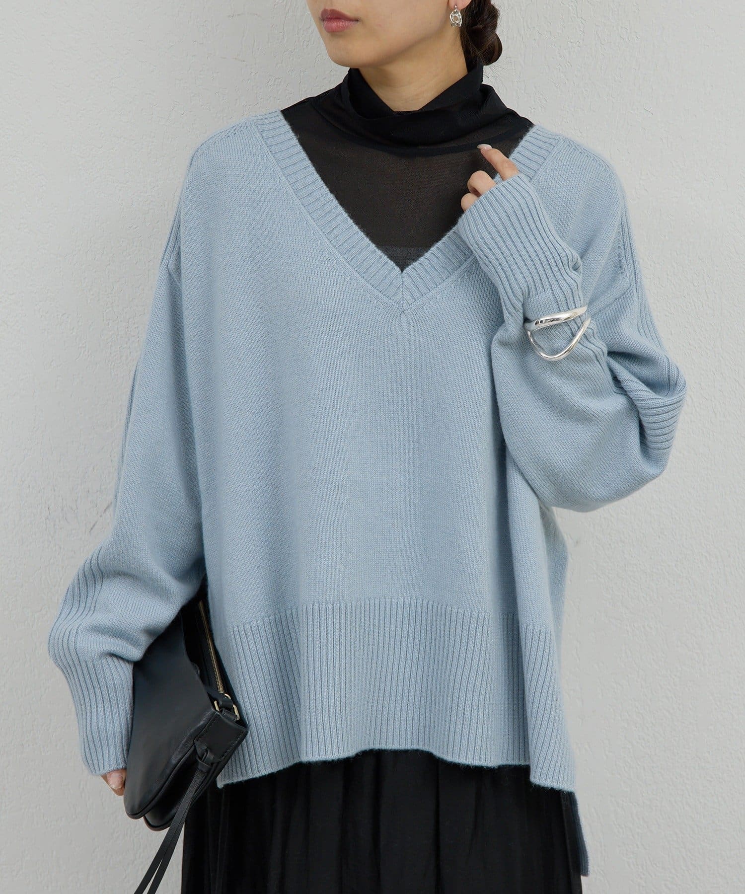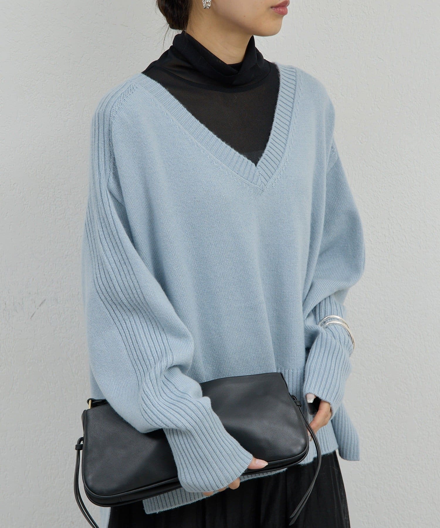 ●ニットでも着ぶくれしにくい、拘りのVネックデザイン。