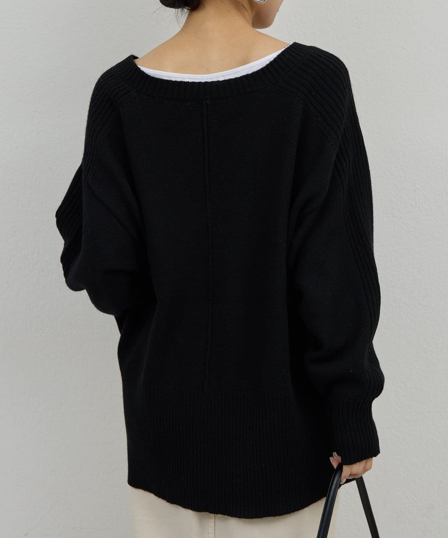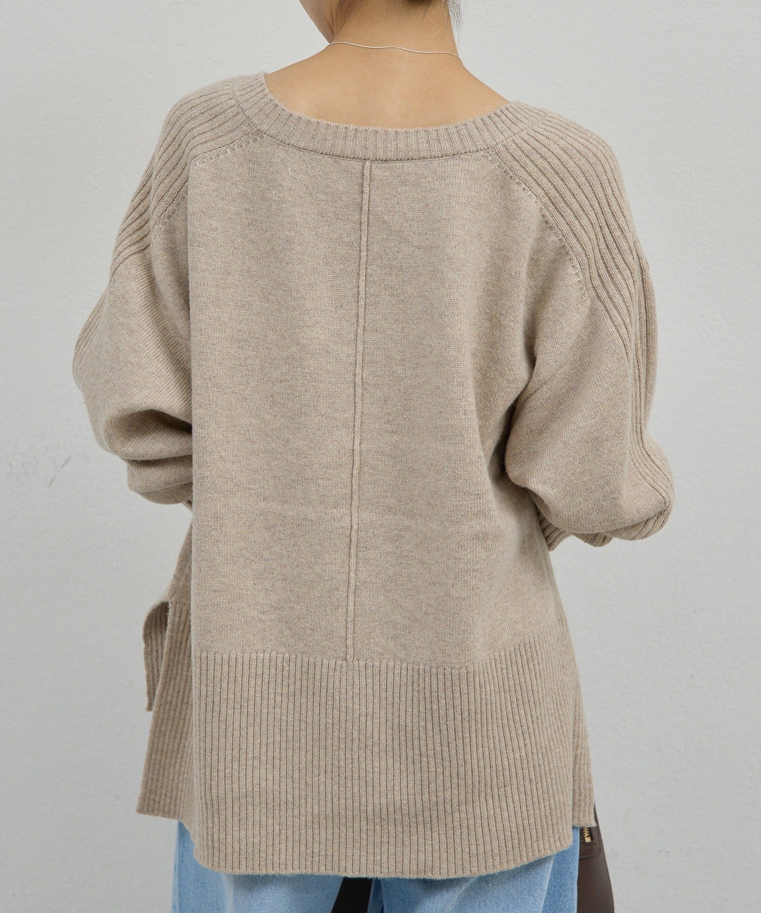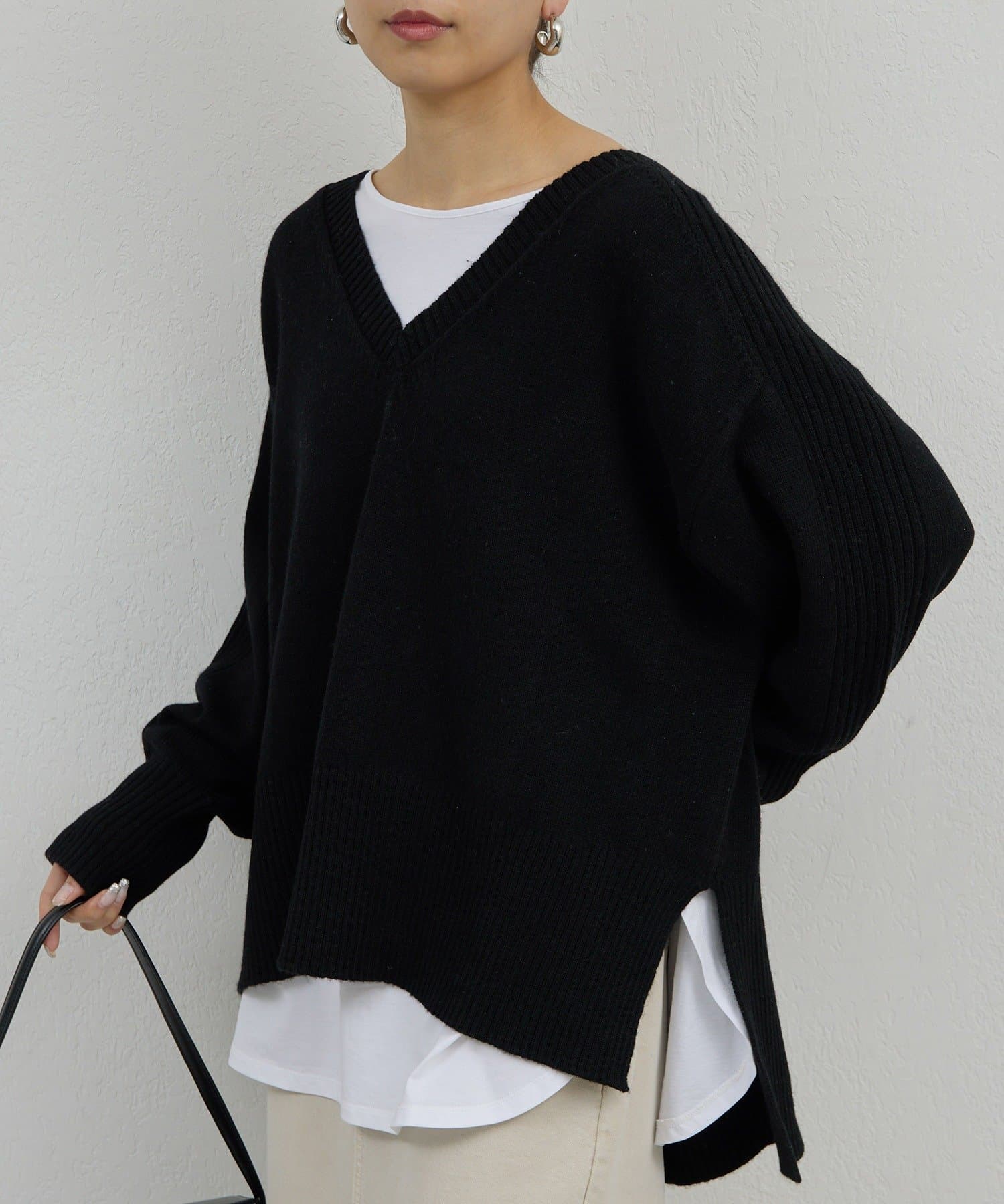 ●ニットでも着ぶくれしにくい、拘りのVネックデザイン。
