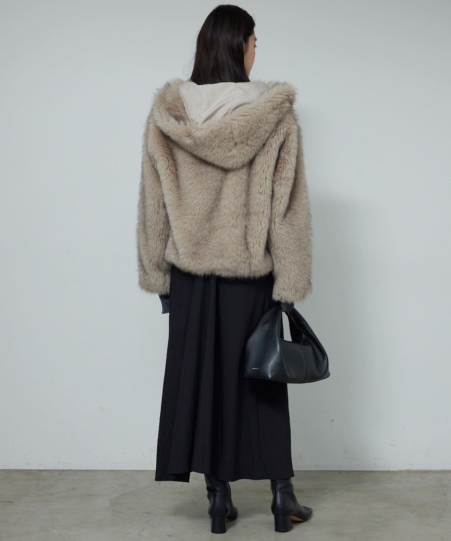 ●ワンポイントになる大きめなフードはこなれた抜け感を演出。
