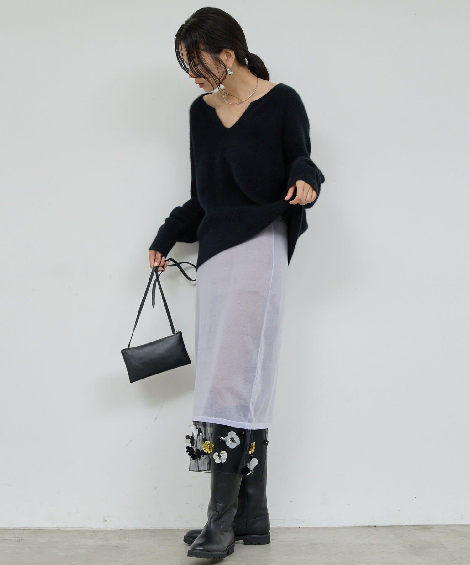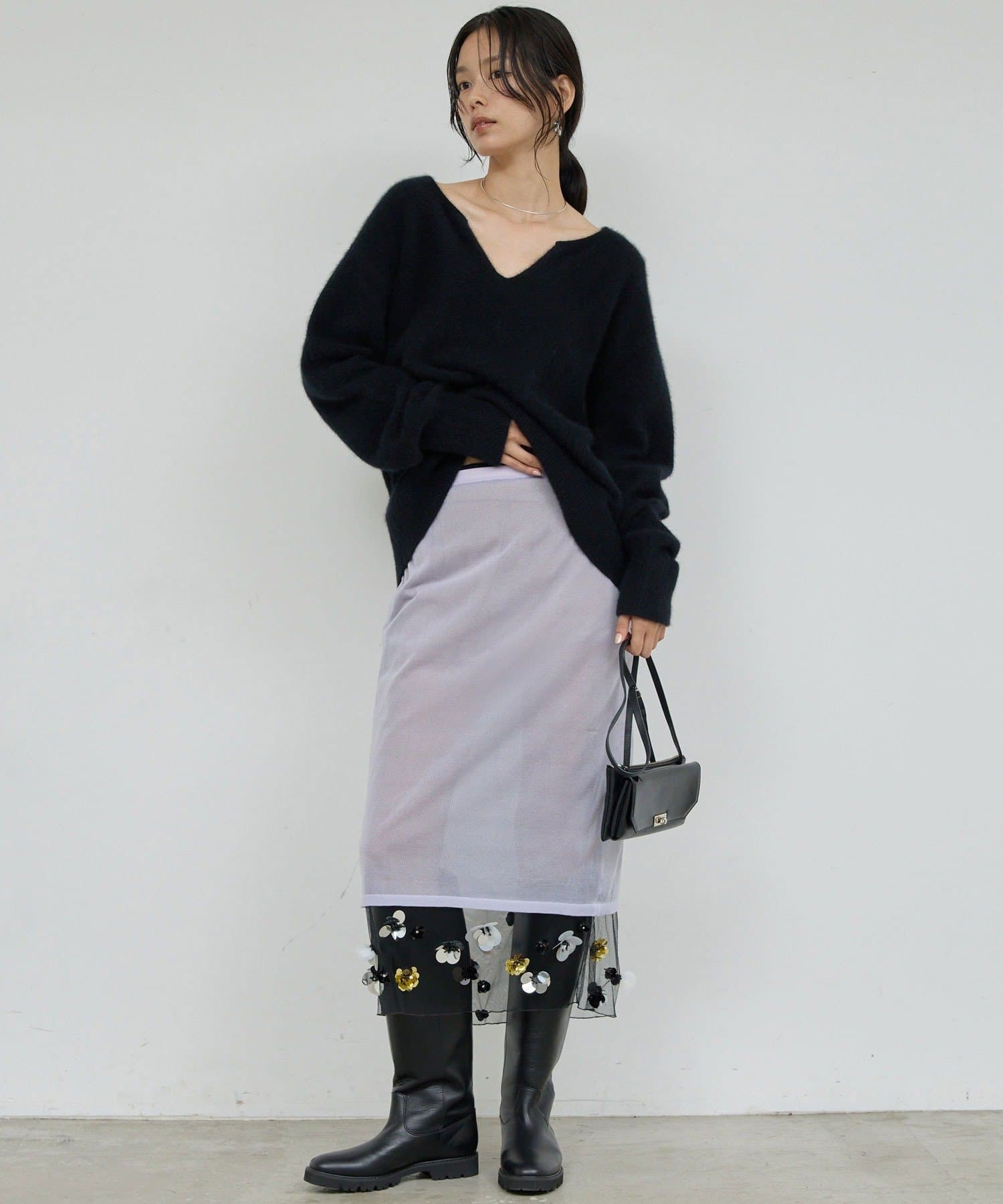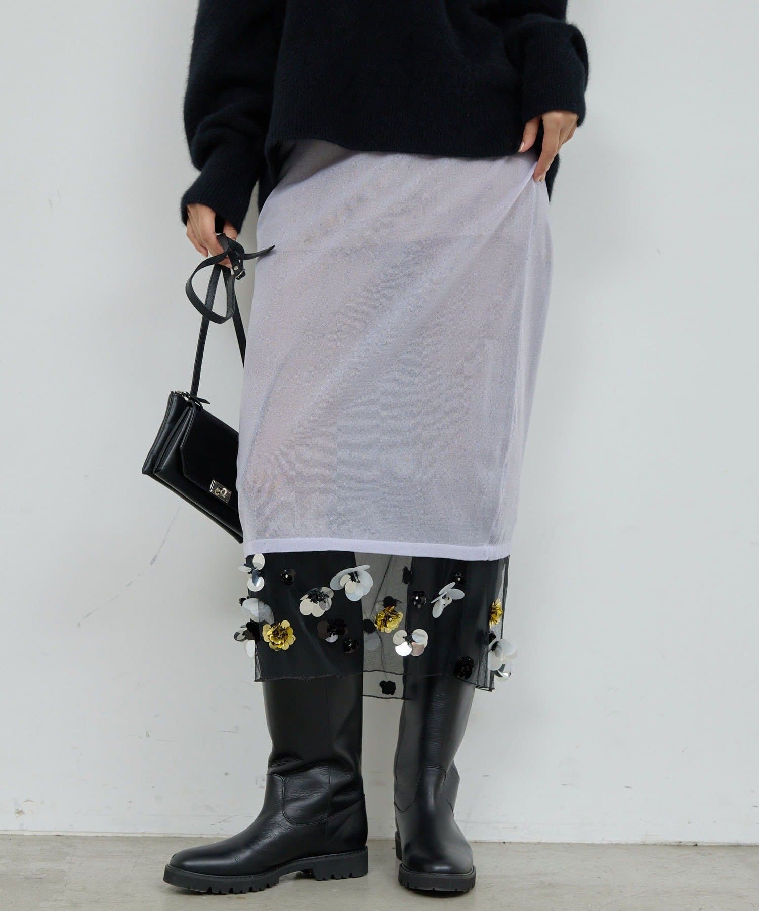 ●チュールを表にした着こなしや単体使いも可能で幅広い表情を楽しめます。