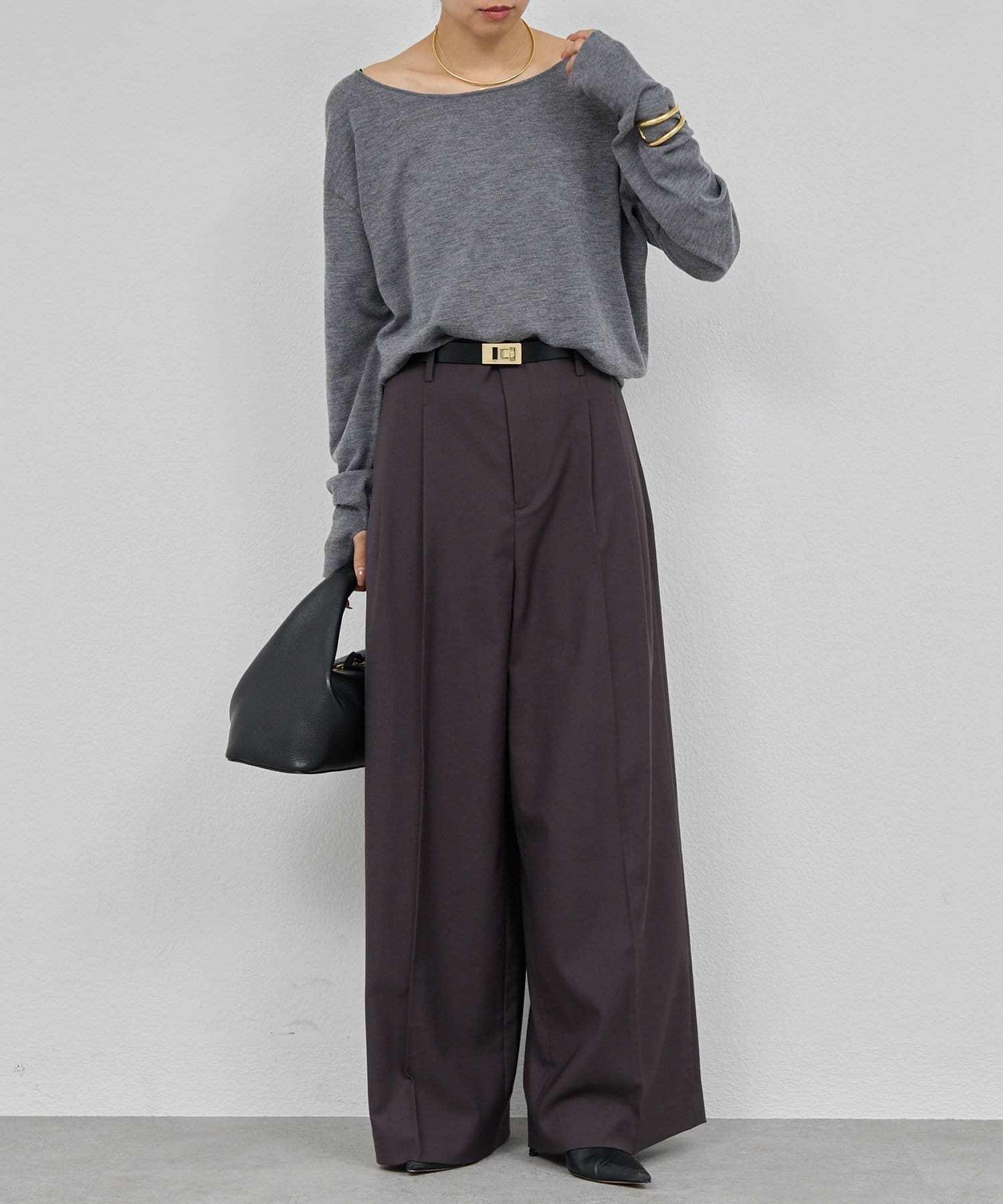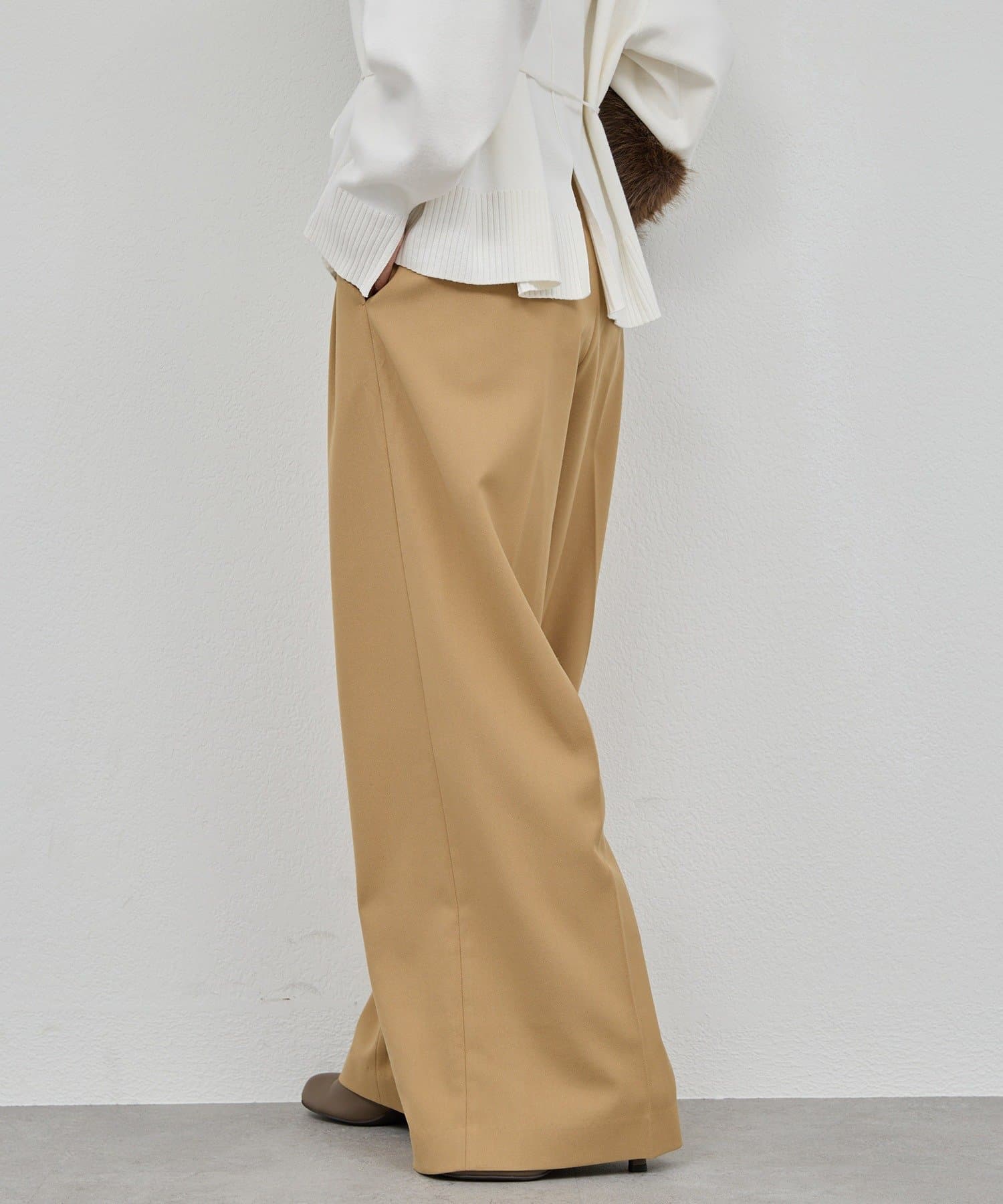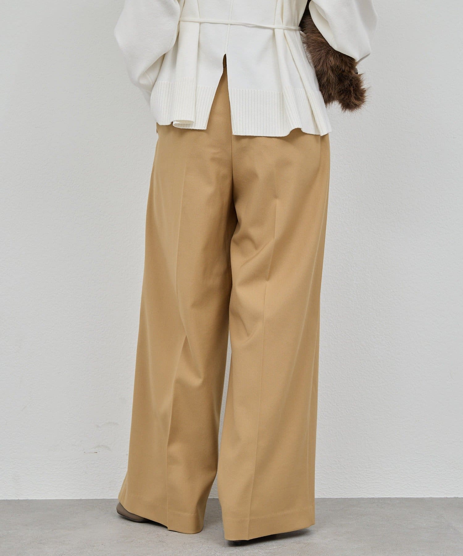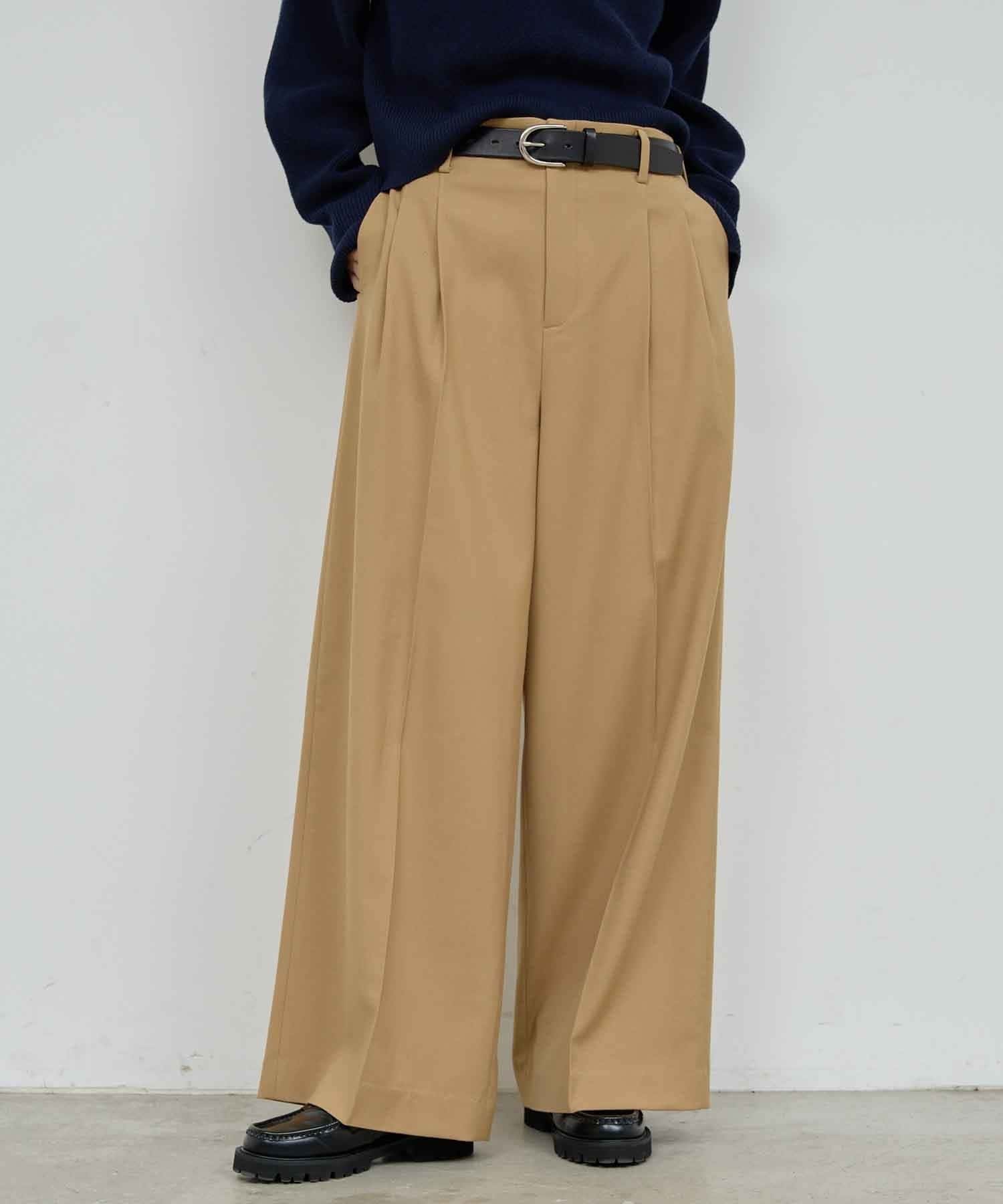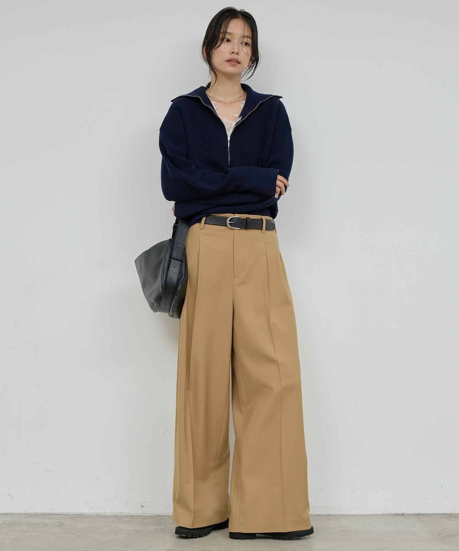 スタイリッシュにまとまるベルトレスワイドパンツ