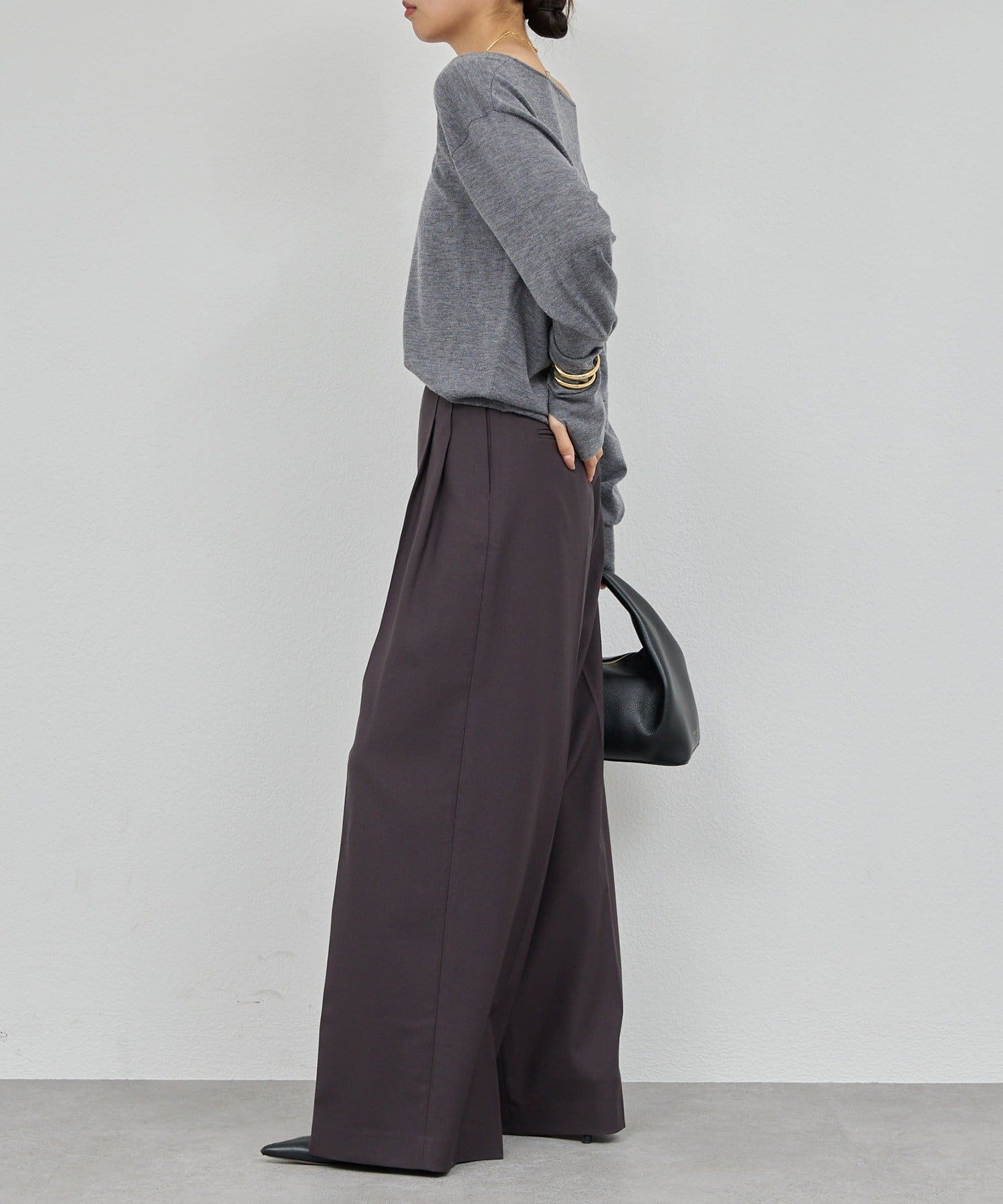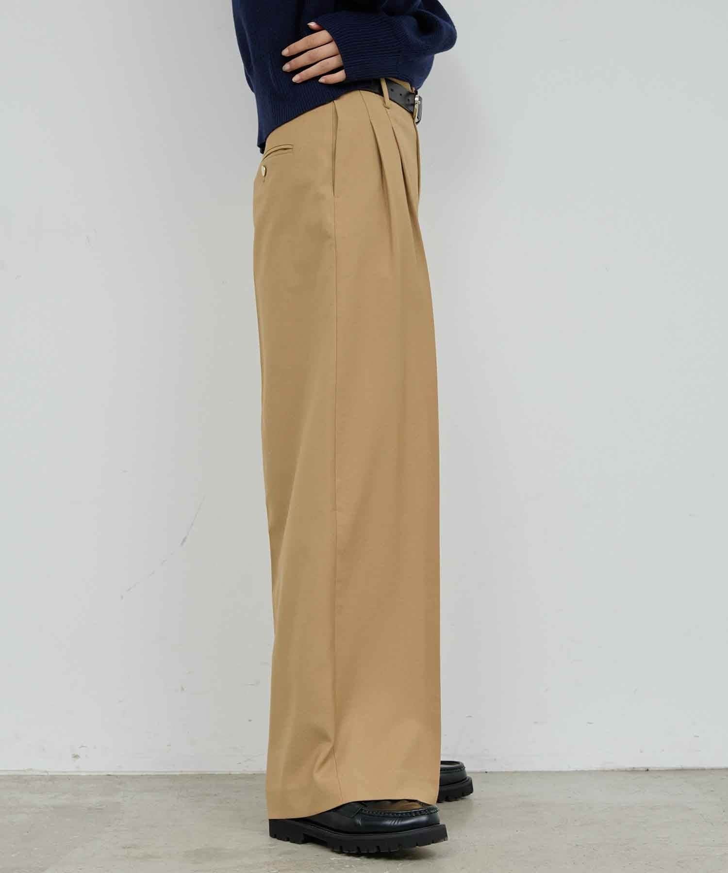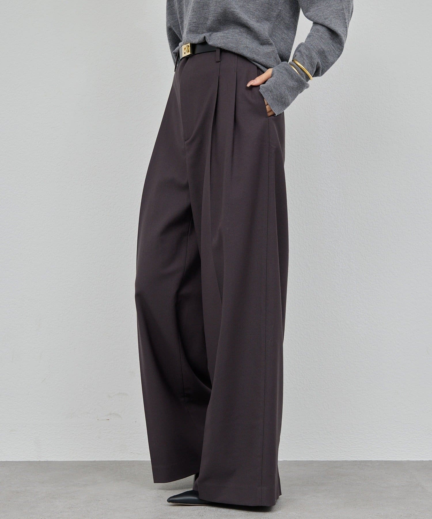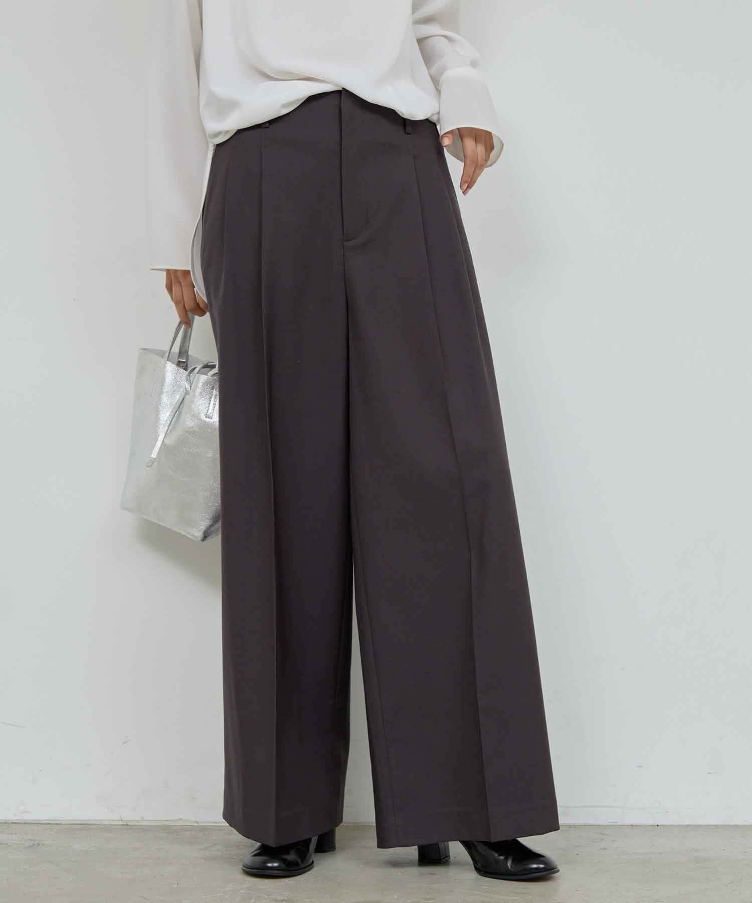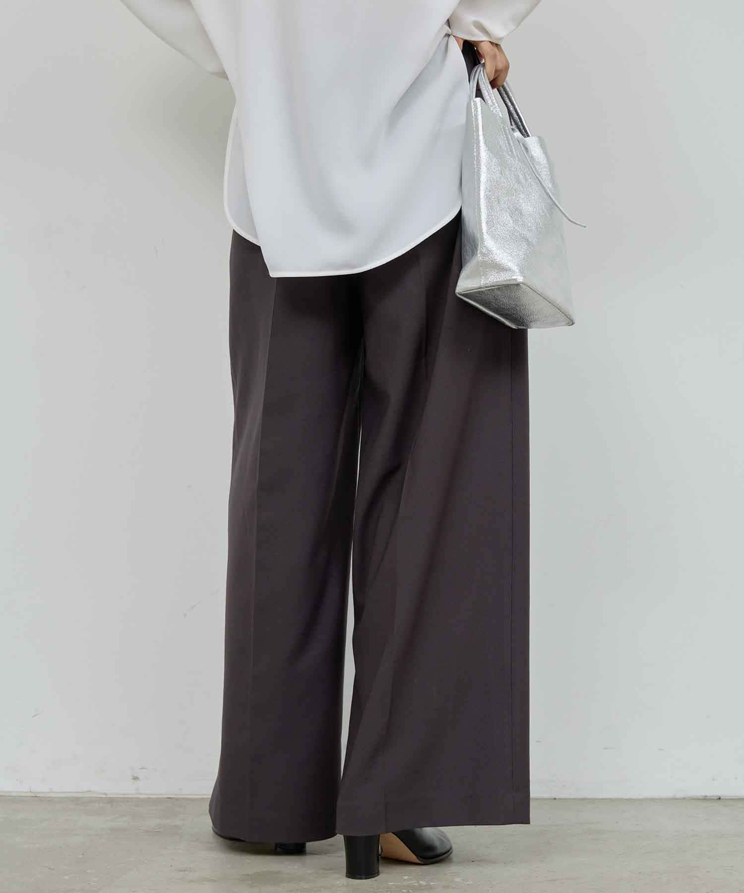 スタイリッシュにまとまるベルトレスワイドパンツ