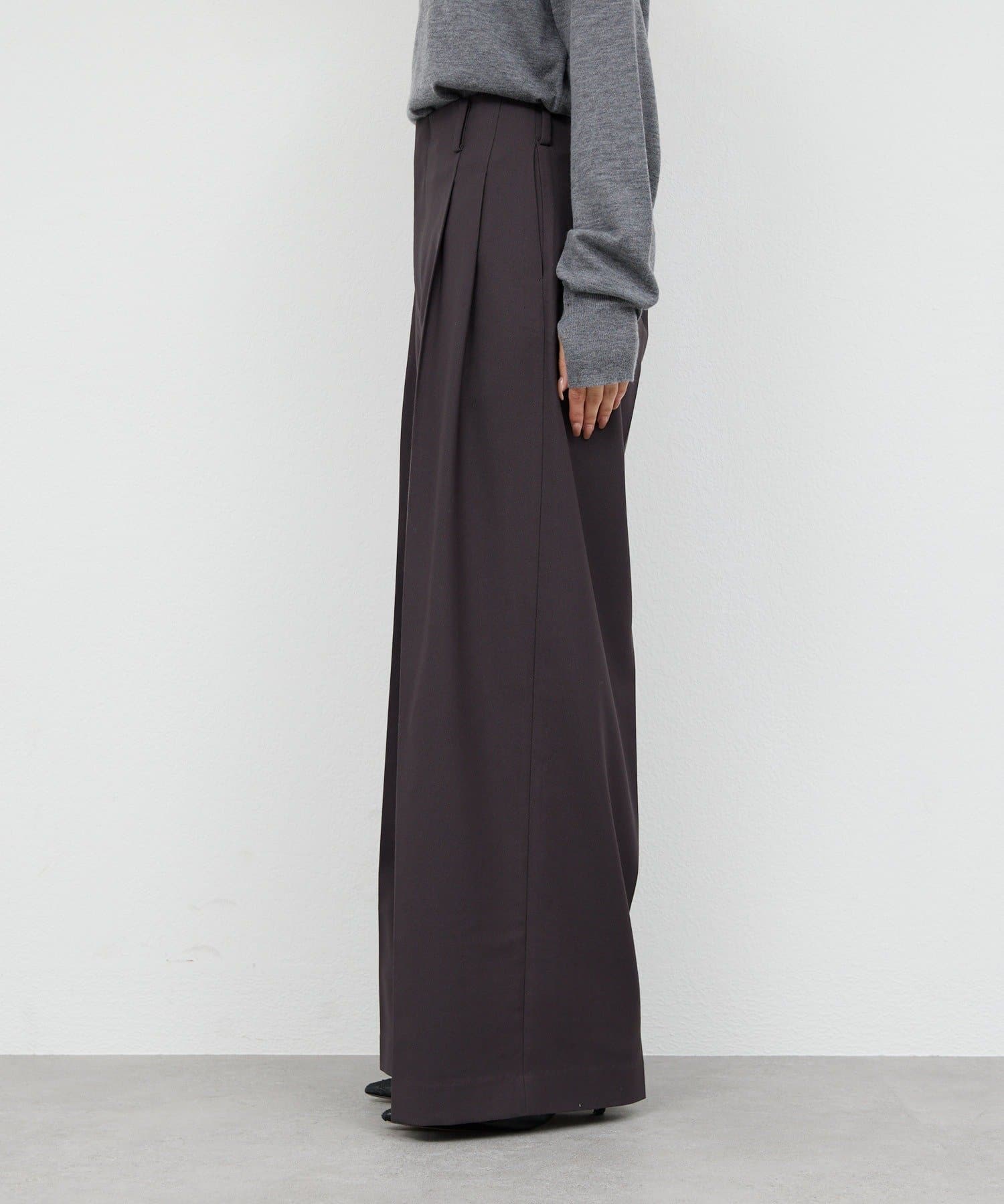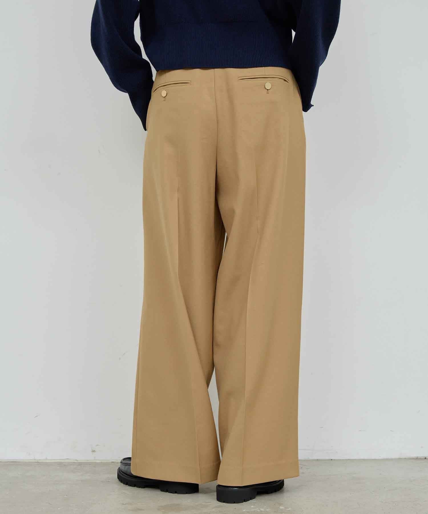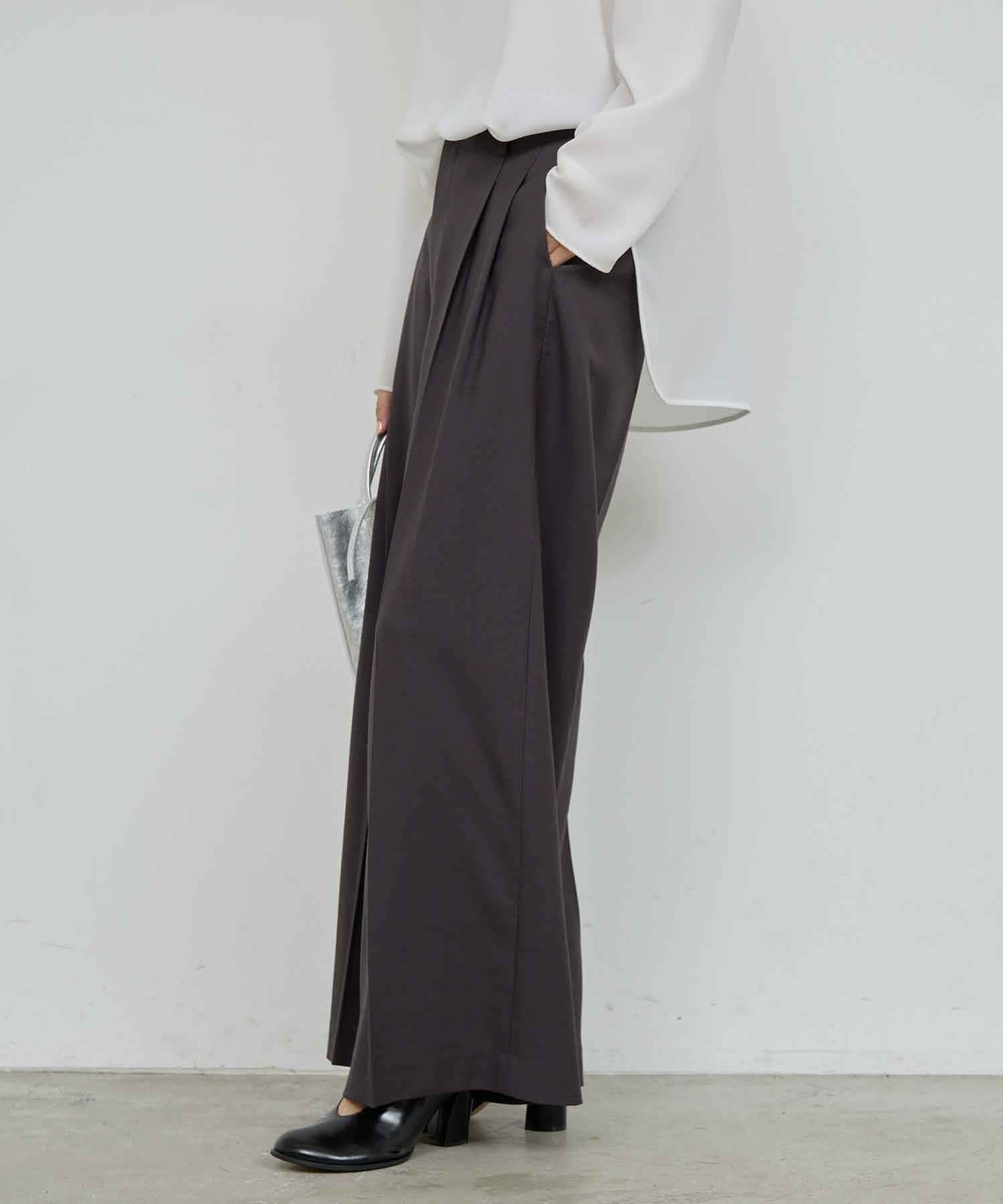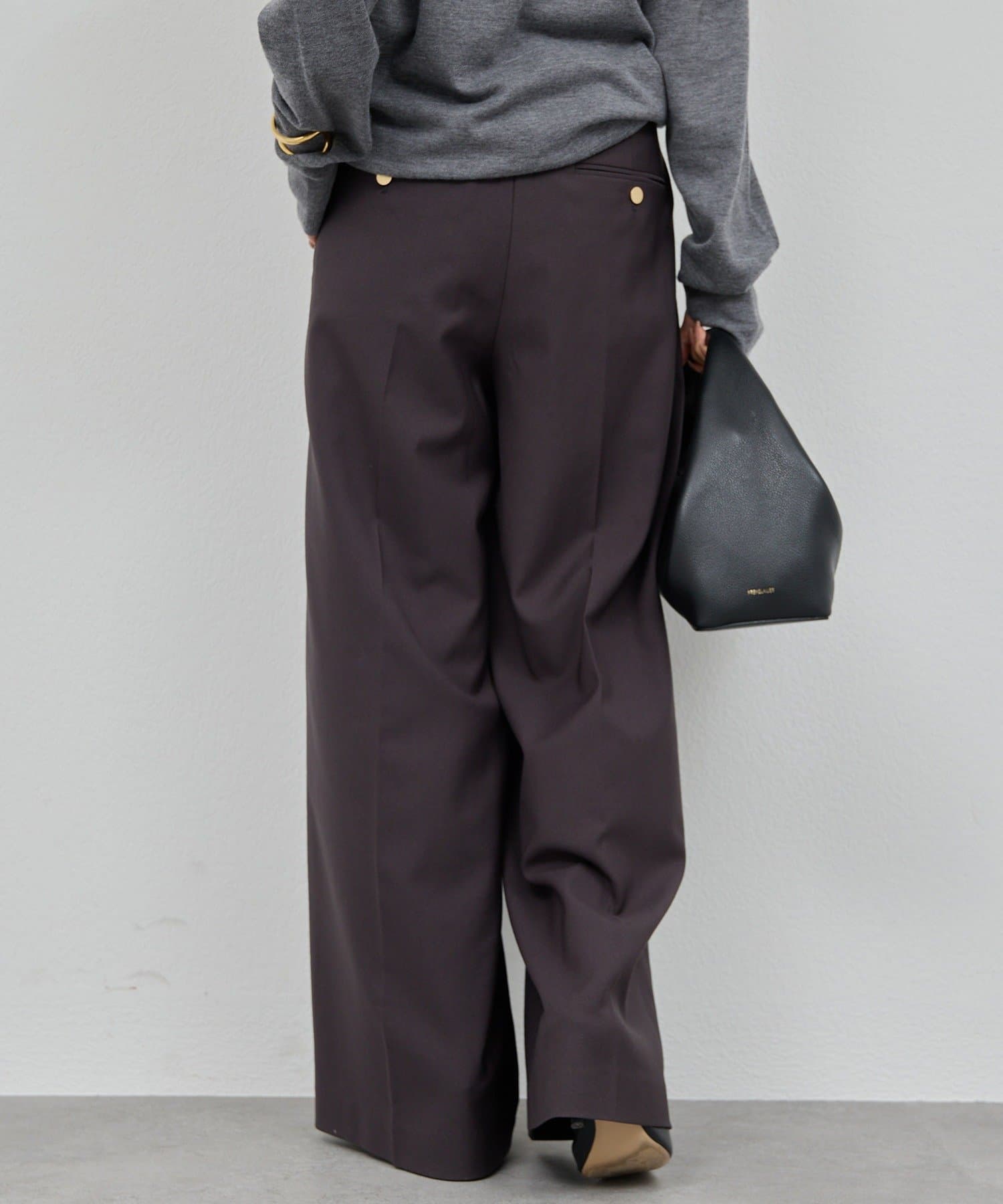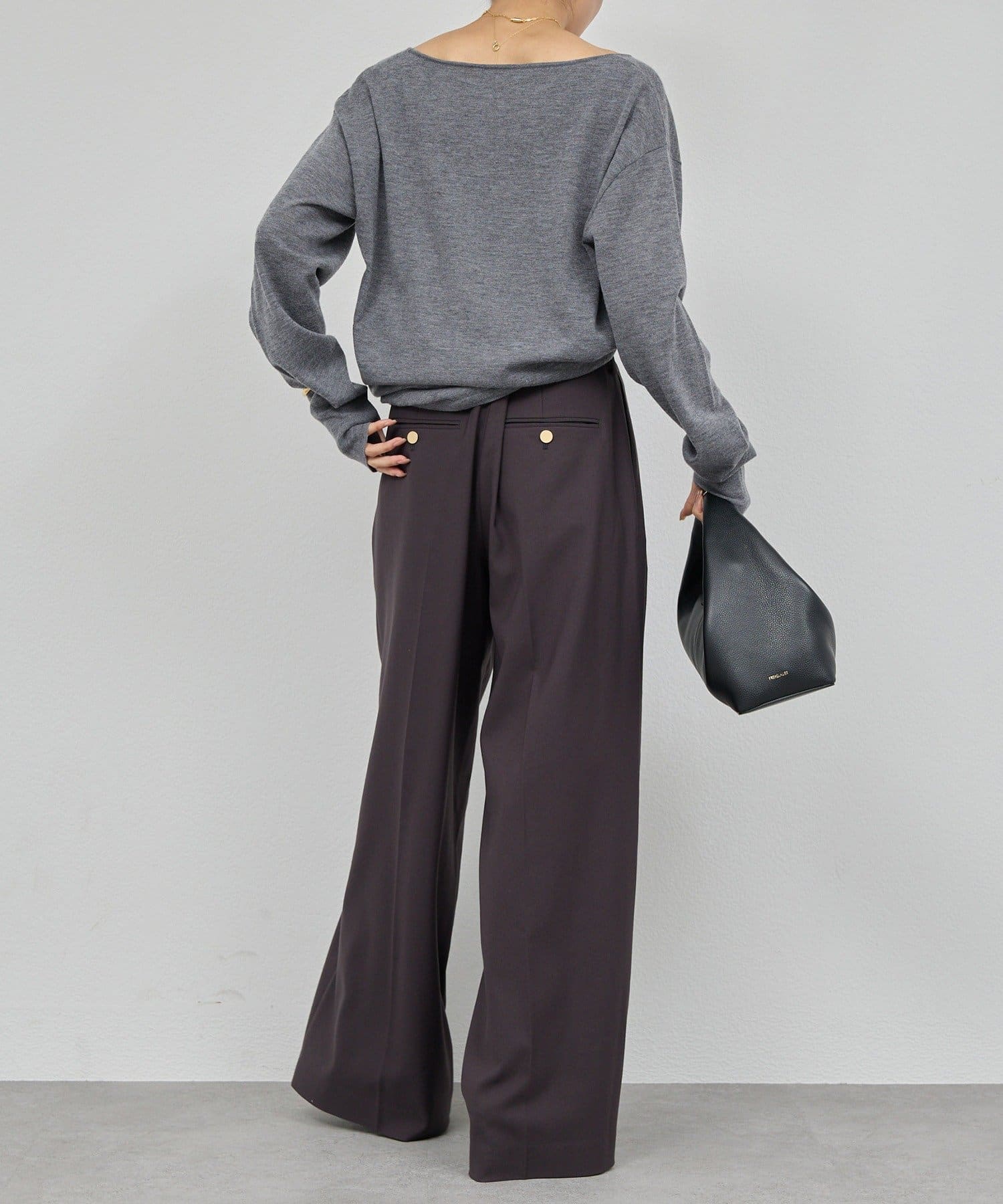 スタイリッシュにまとまるベルトレスワイドパンツ