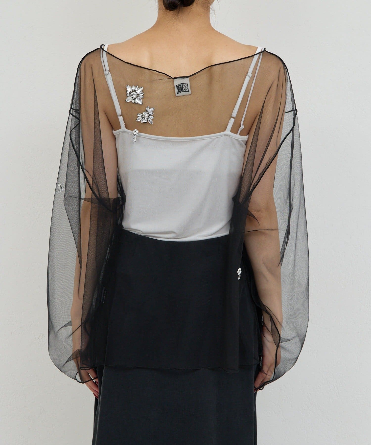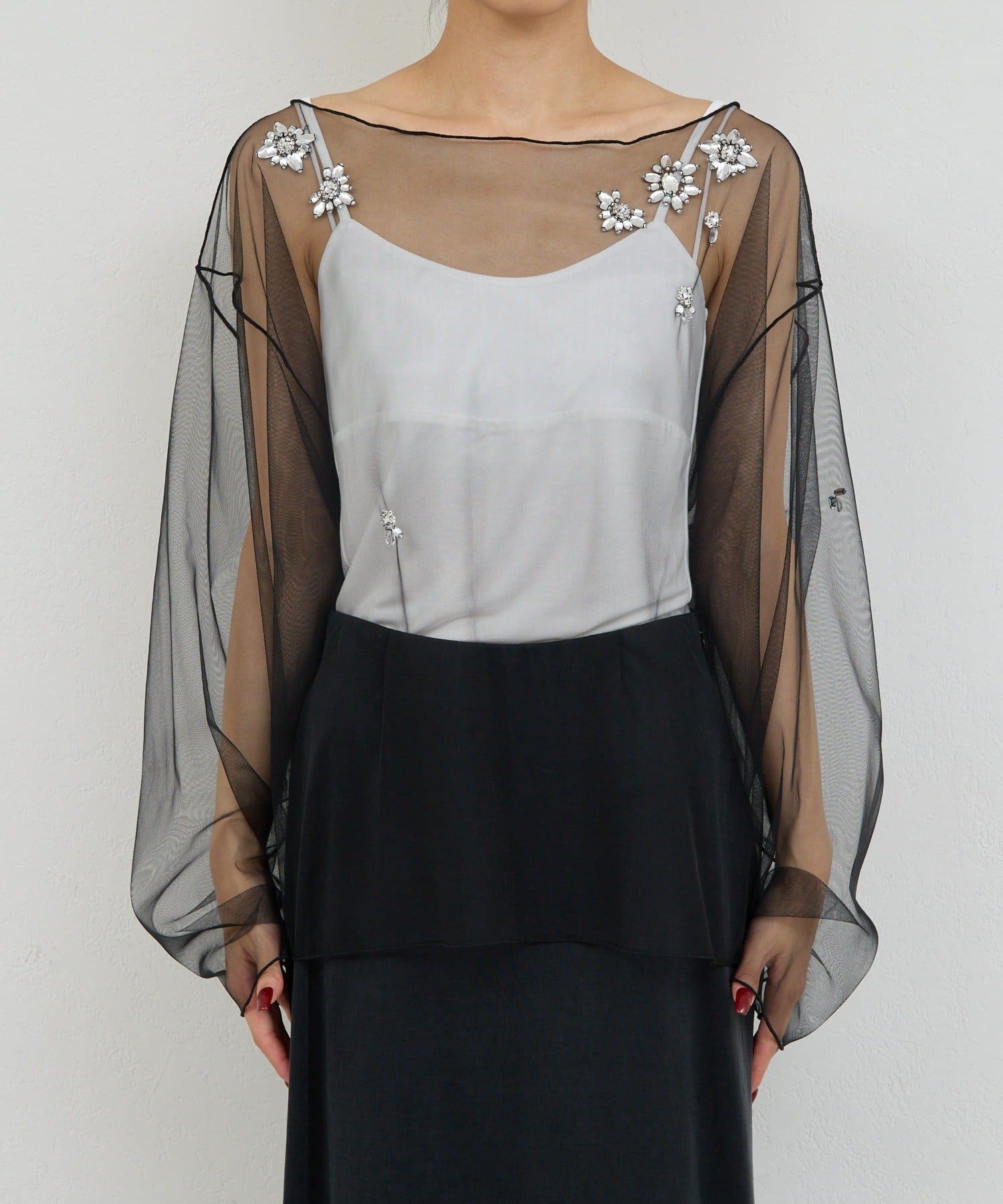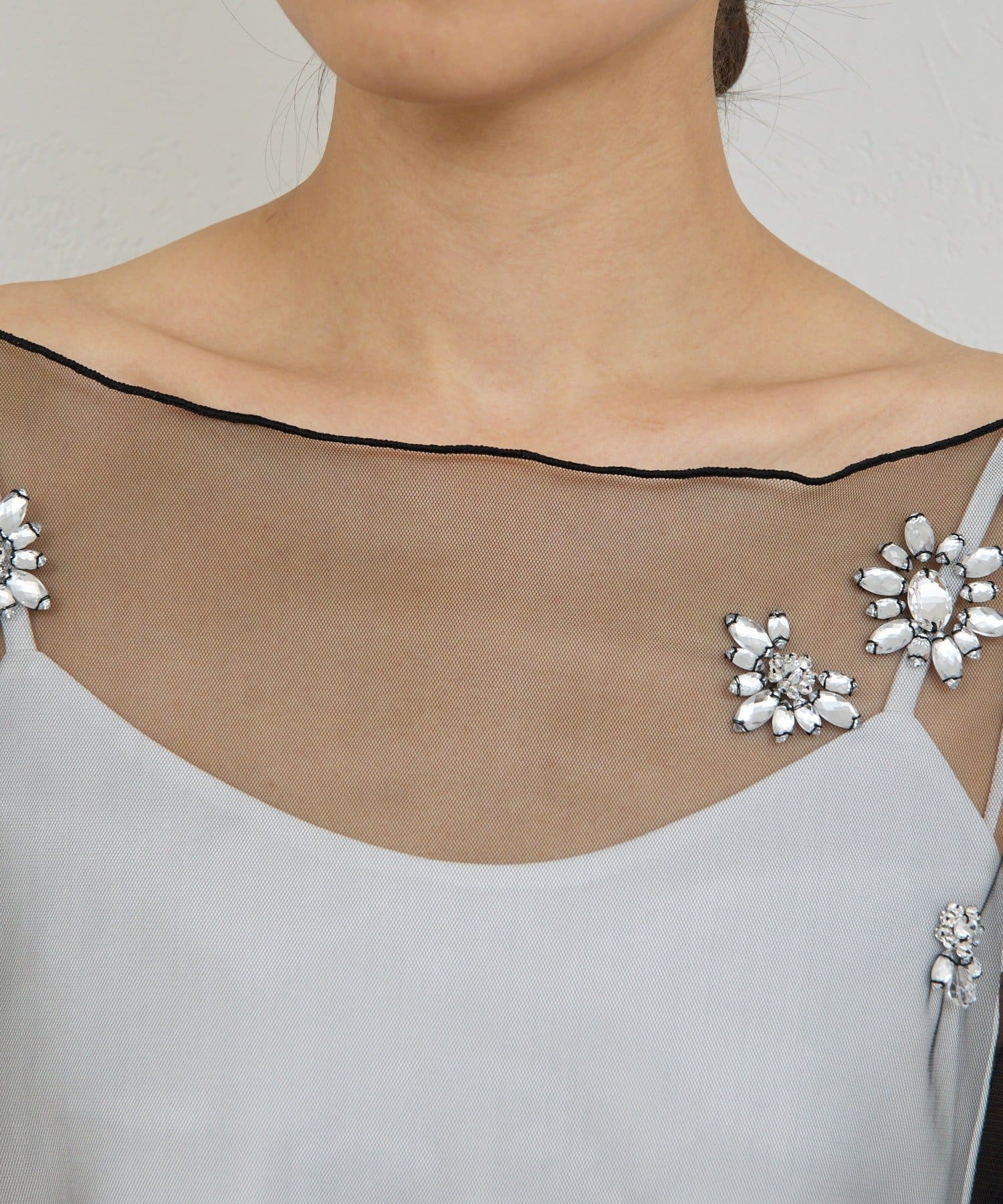●ビジュー×チュールが華やかさと女性らしい繊細さを表現。