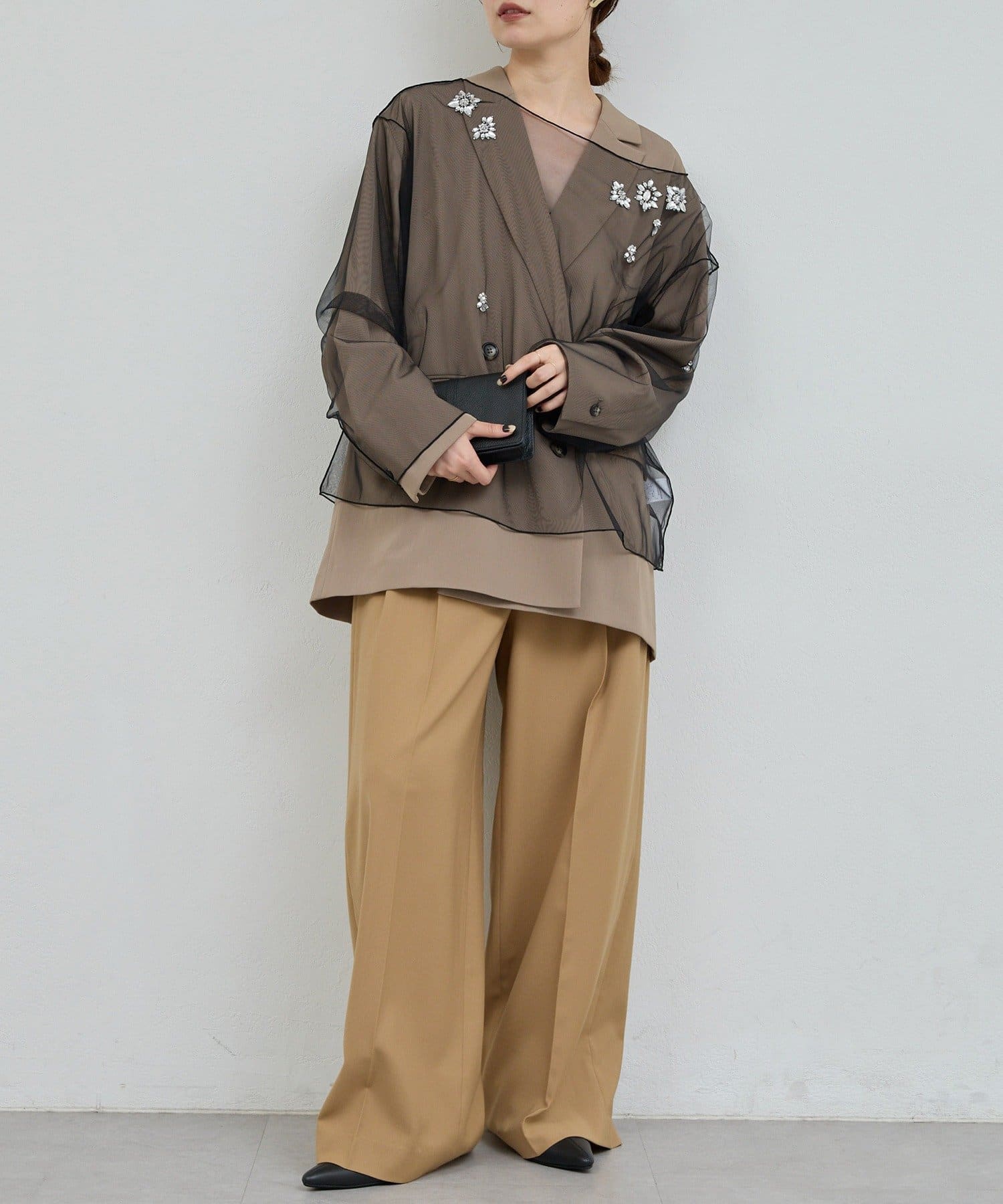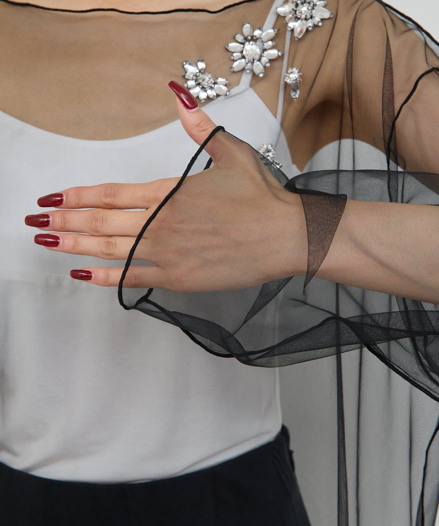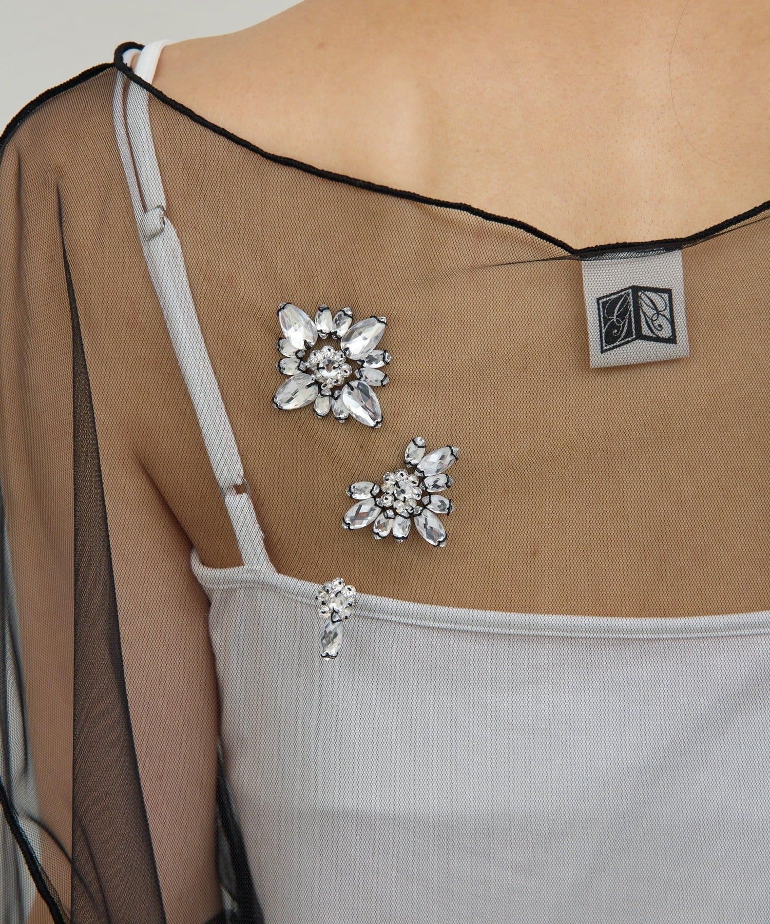 ●ビジュー×チュールが華やかさと女性らしい繊細さを表現。