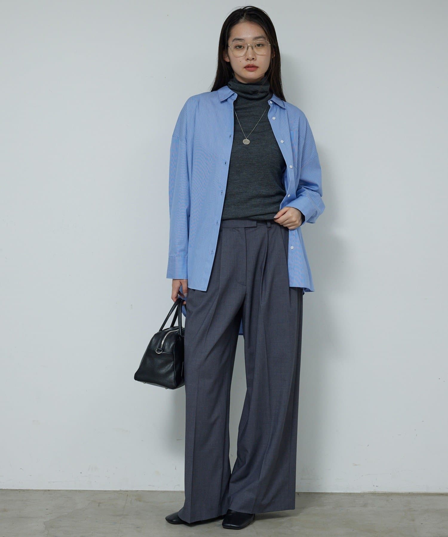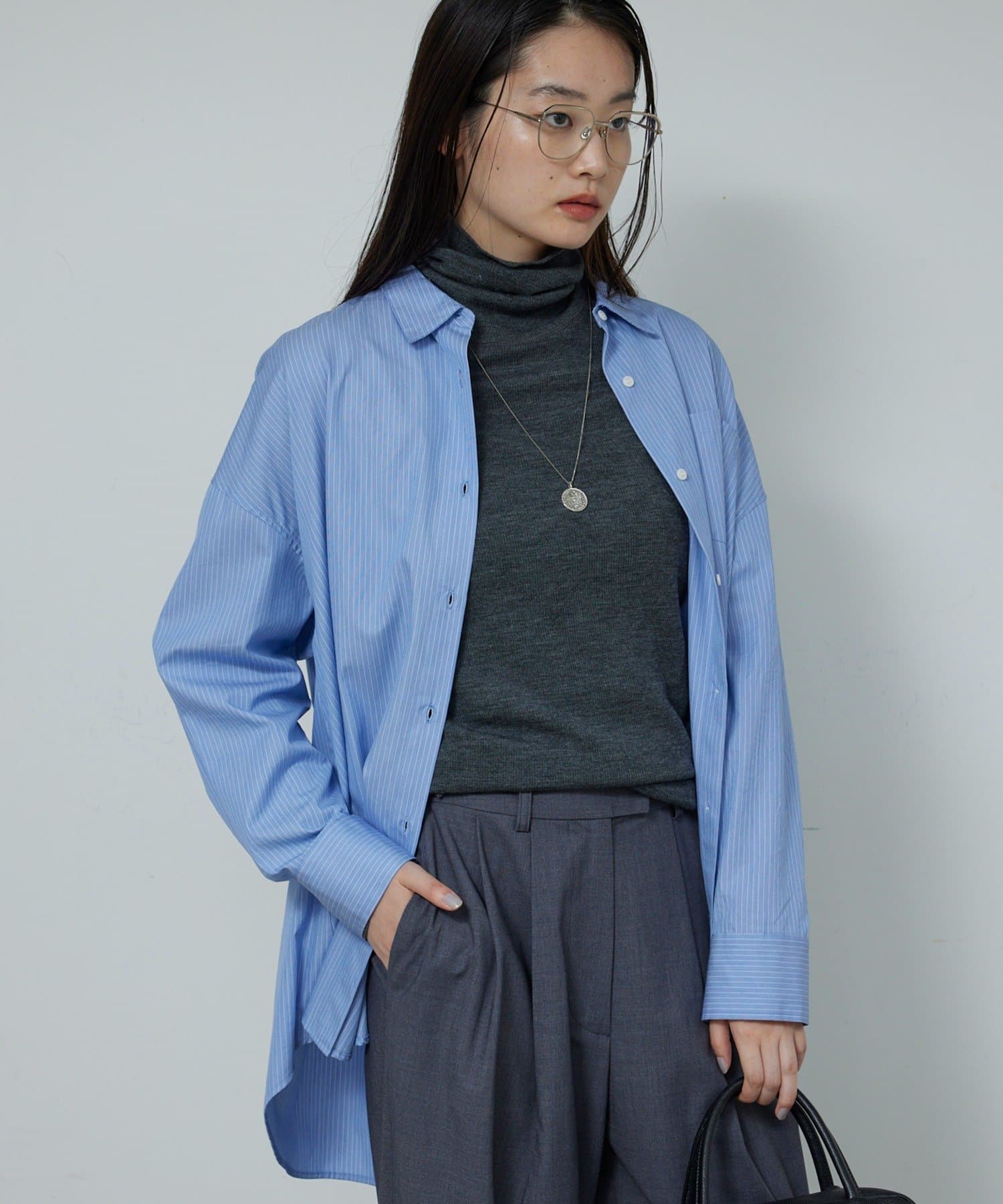 ●シンプルなホワイトとサックスブルーの細めなストライプは洗礼された印象。