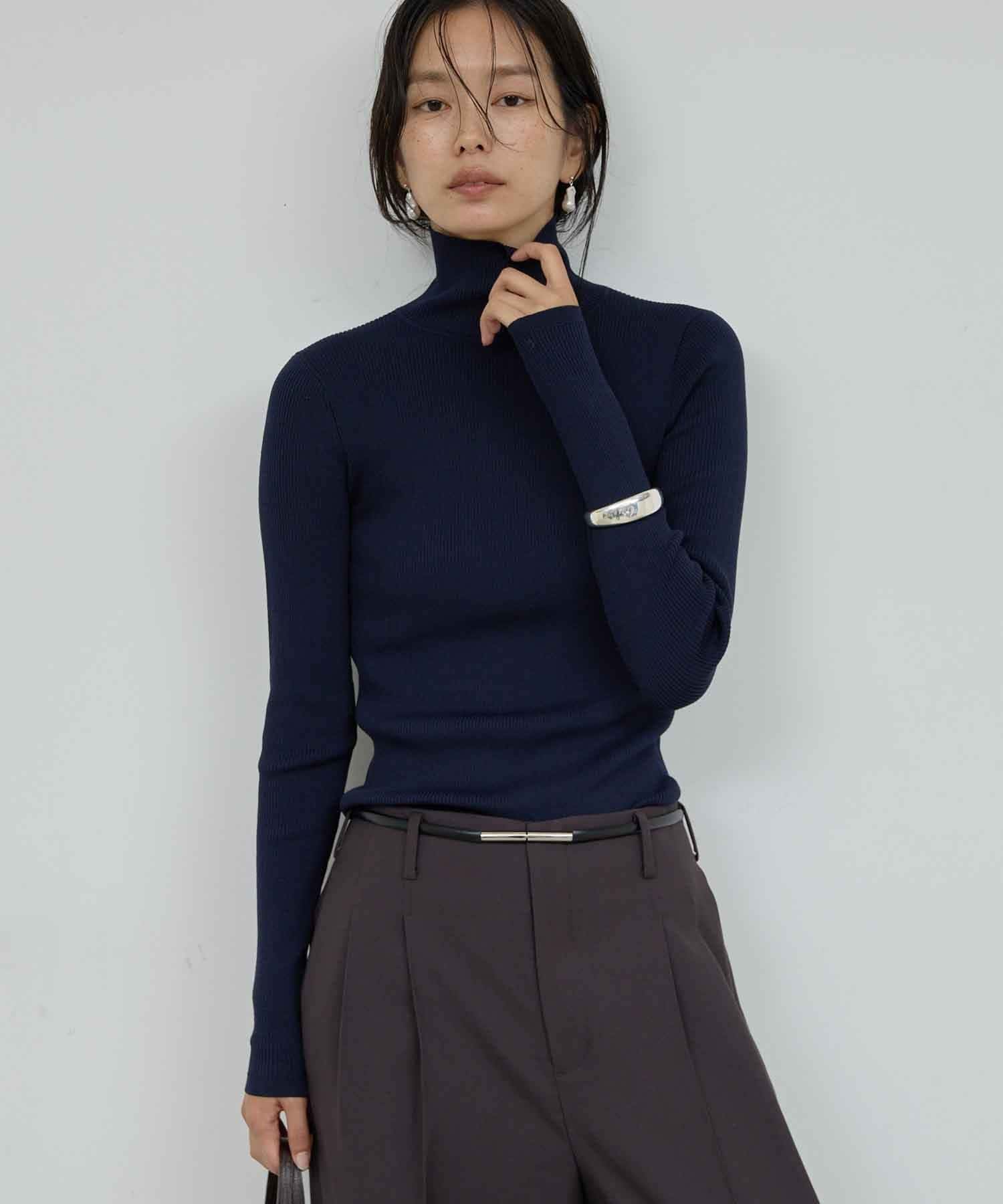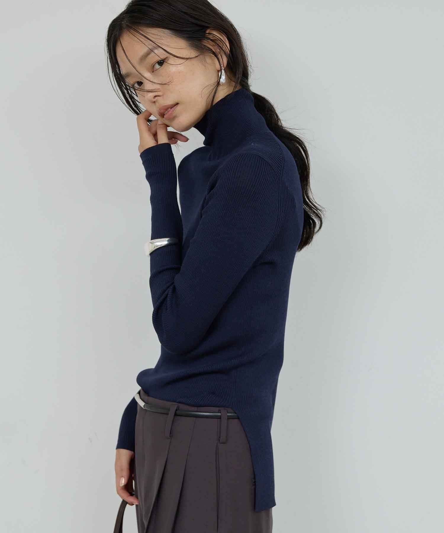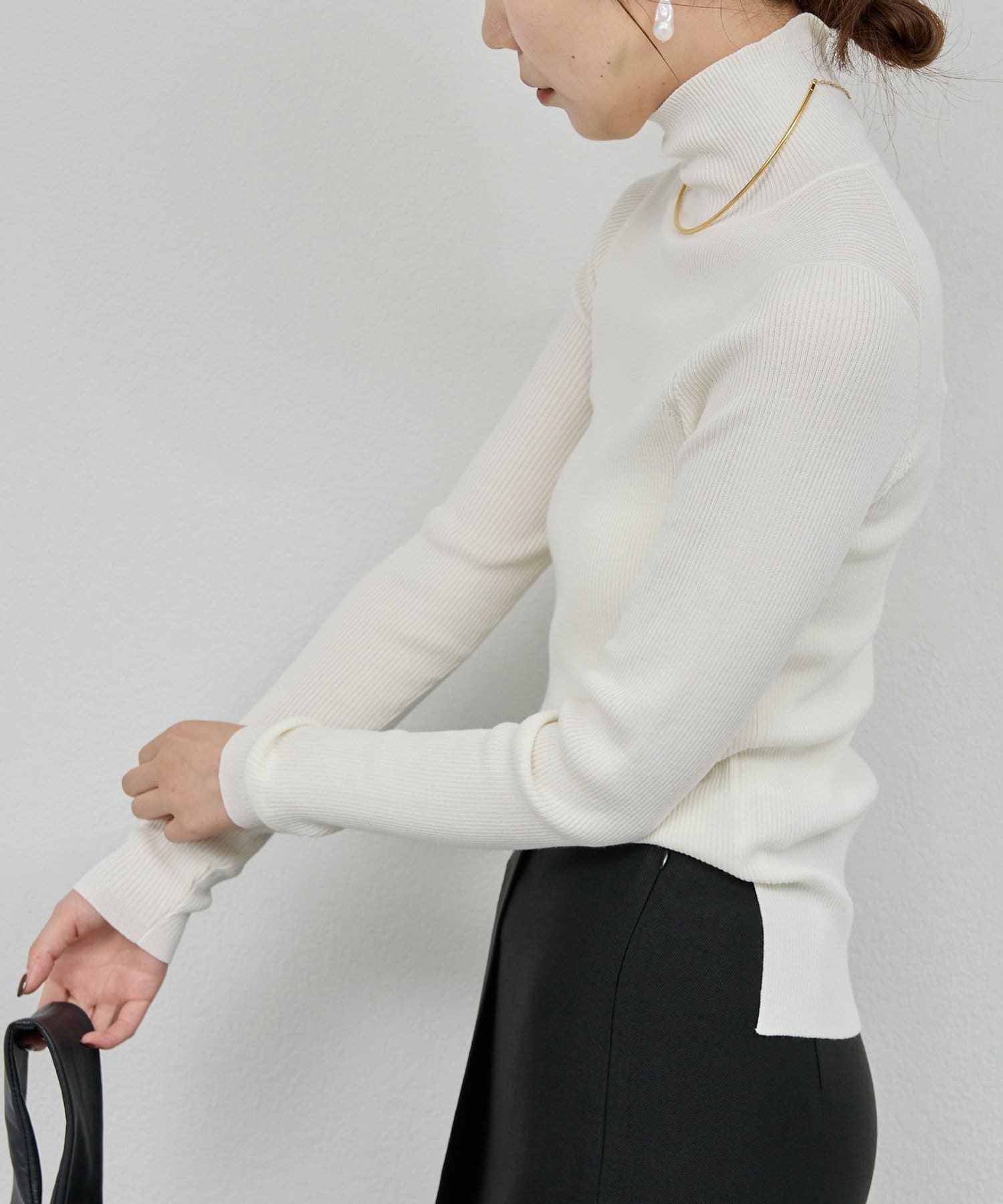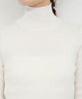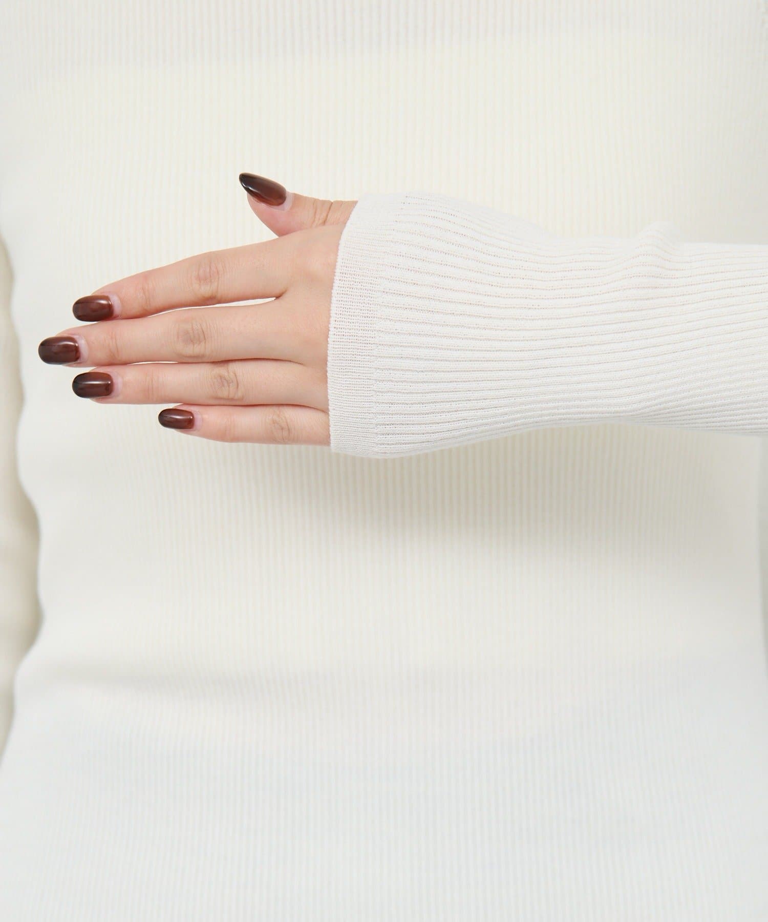●細めのリブ編みはボディラインを美しく見せ、女性らしさを演出。
