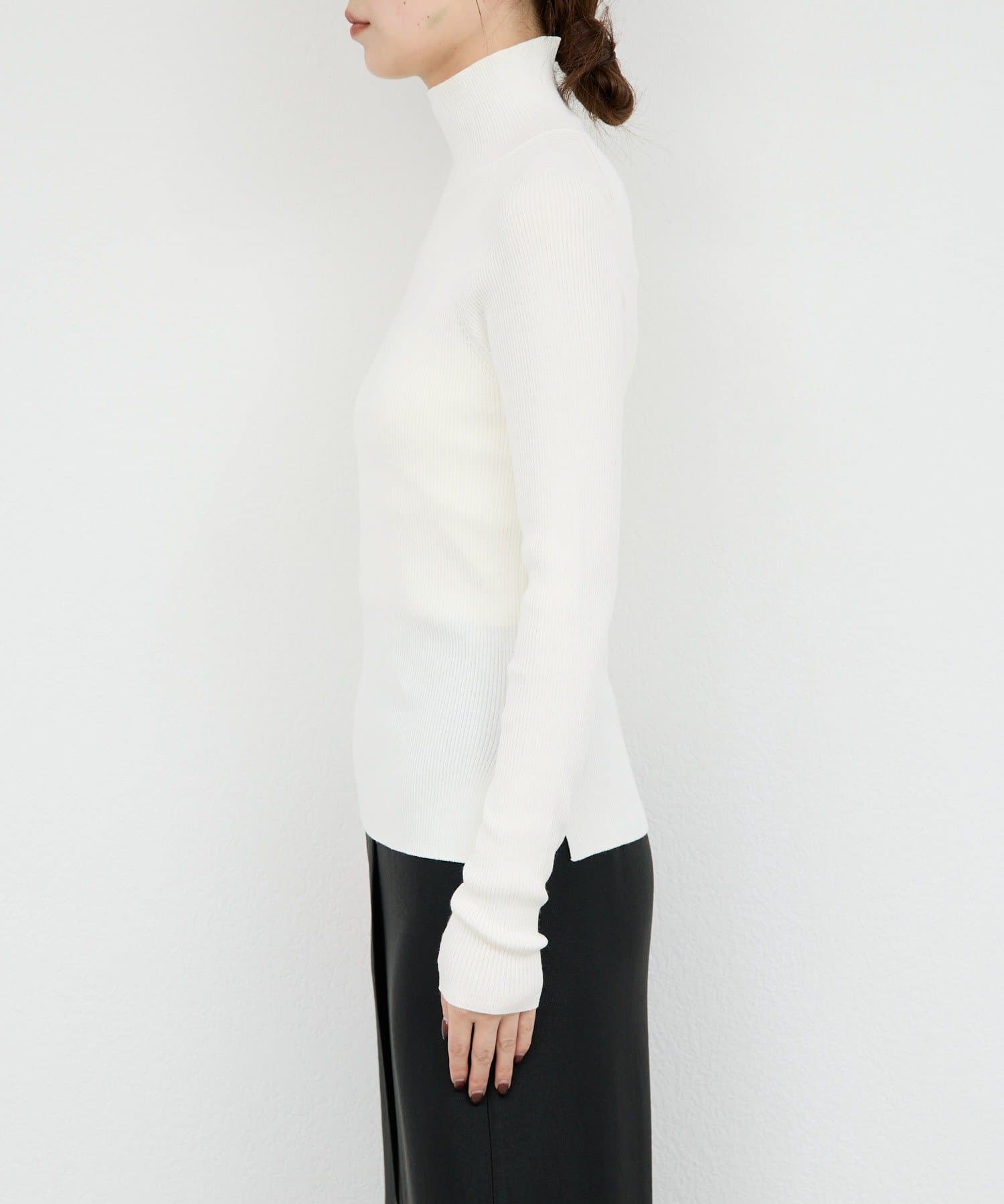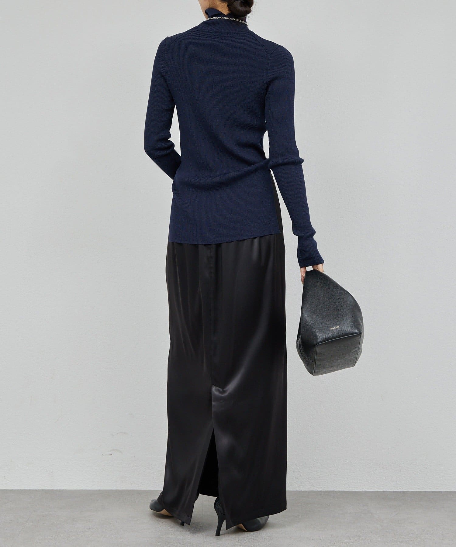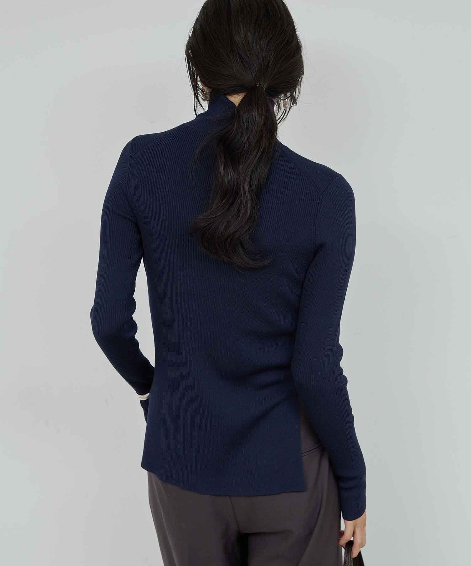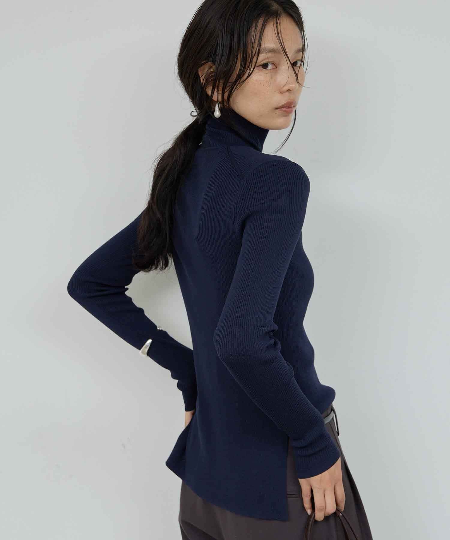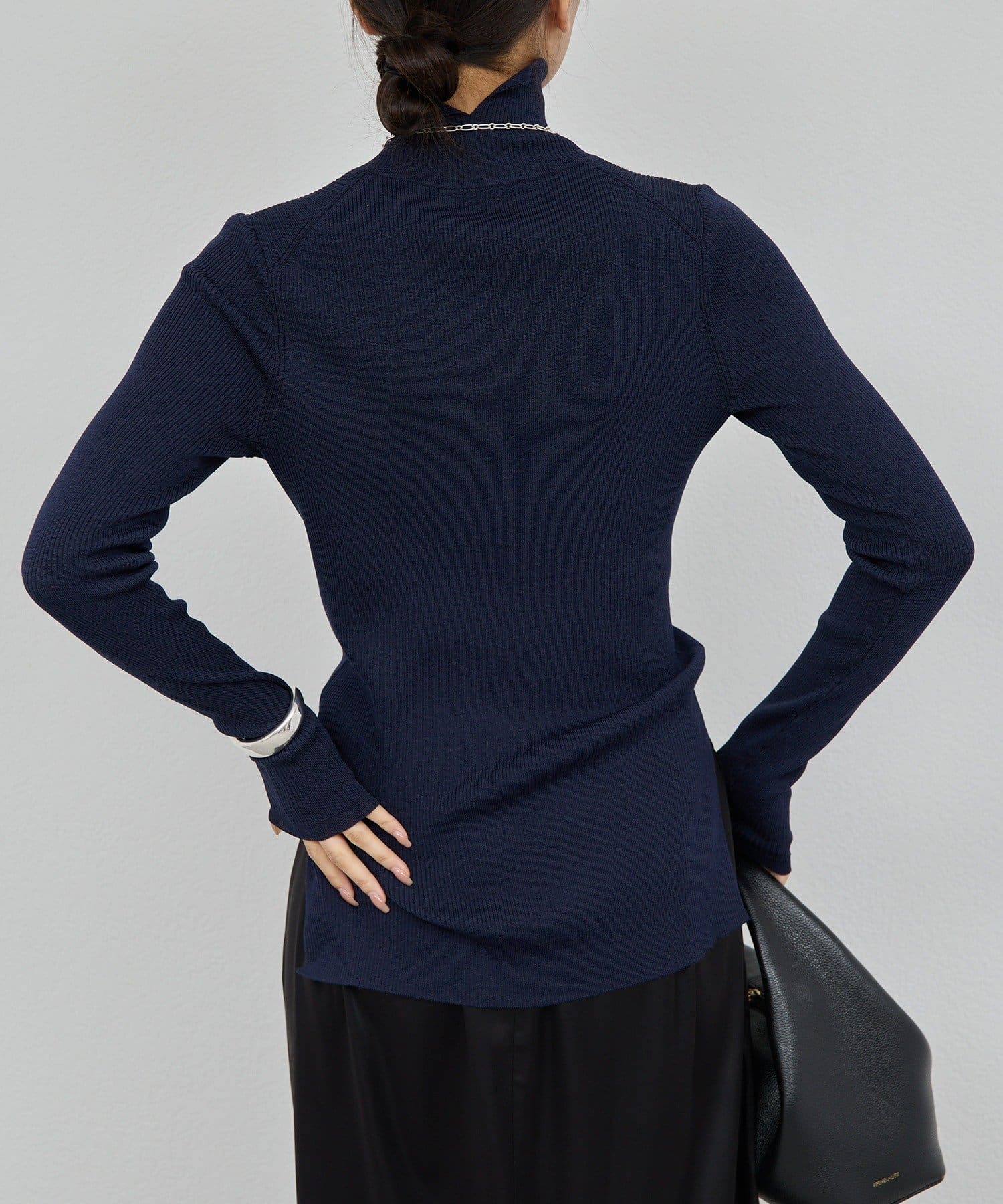 ●細めのリブ編みはボディラインを美しく見せ、女性らしさを演出。