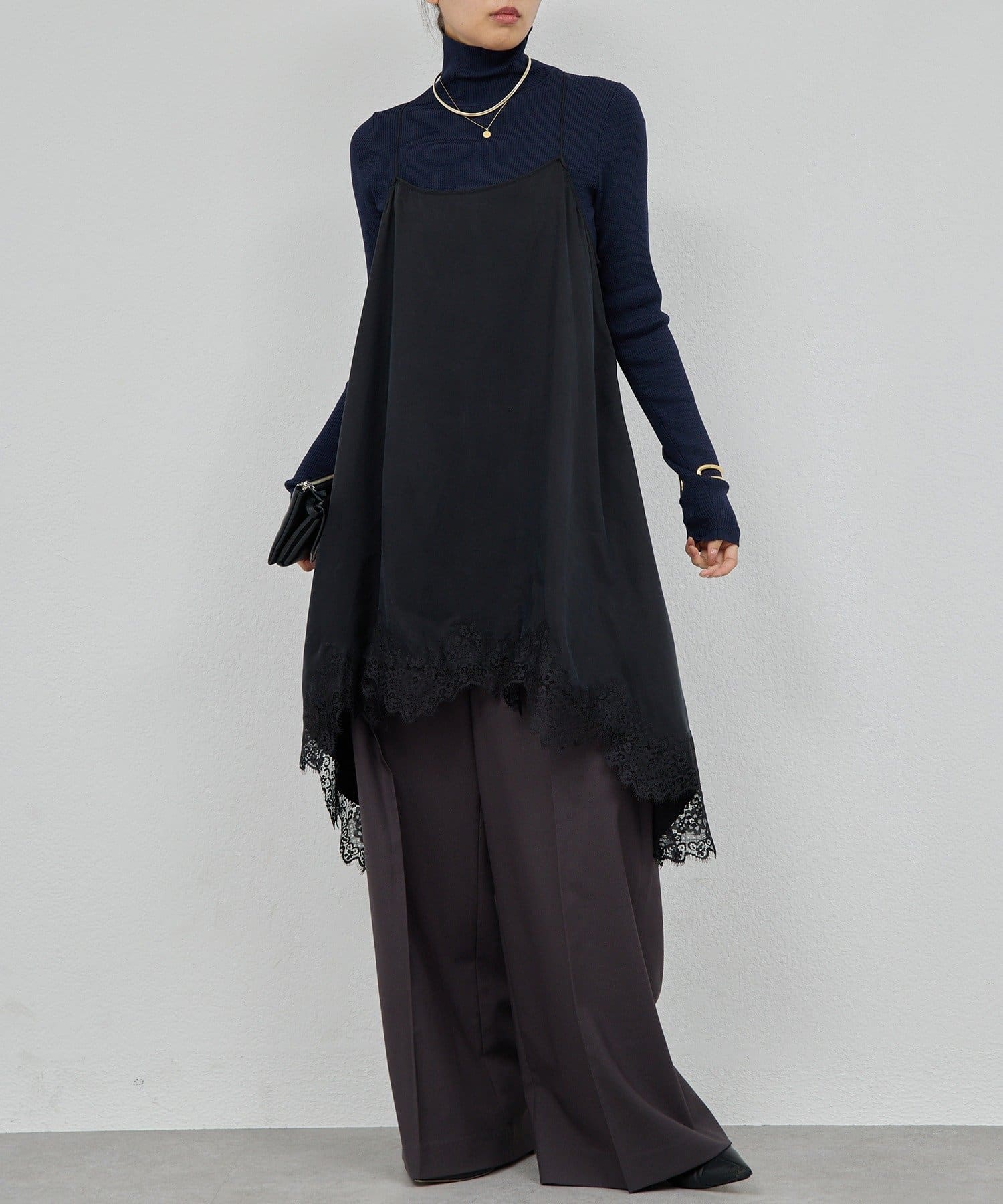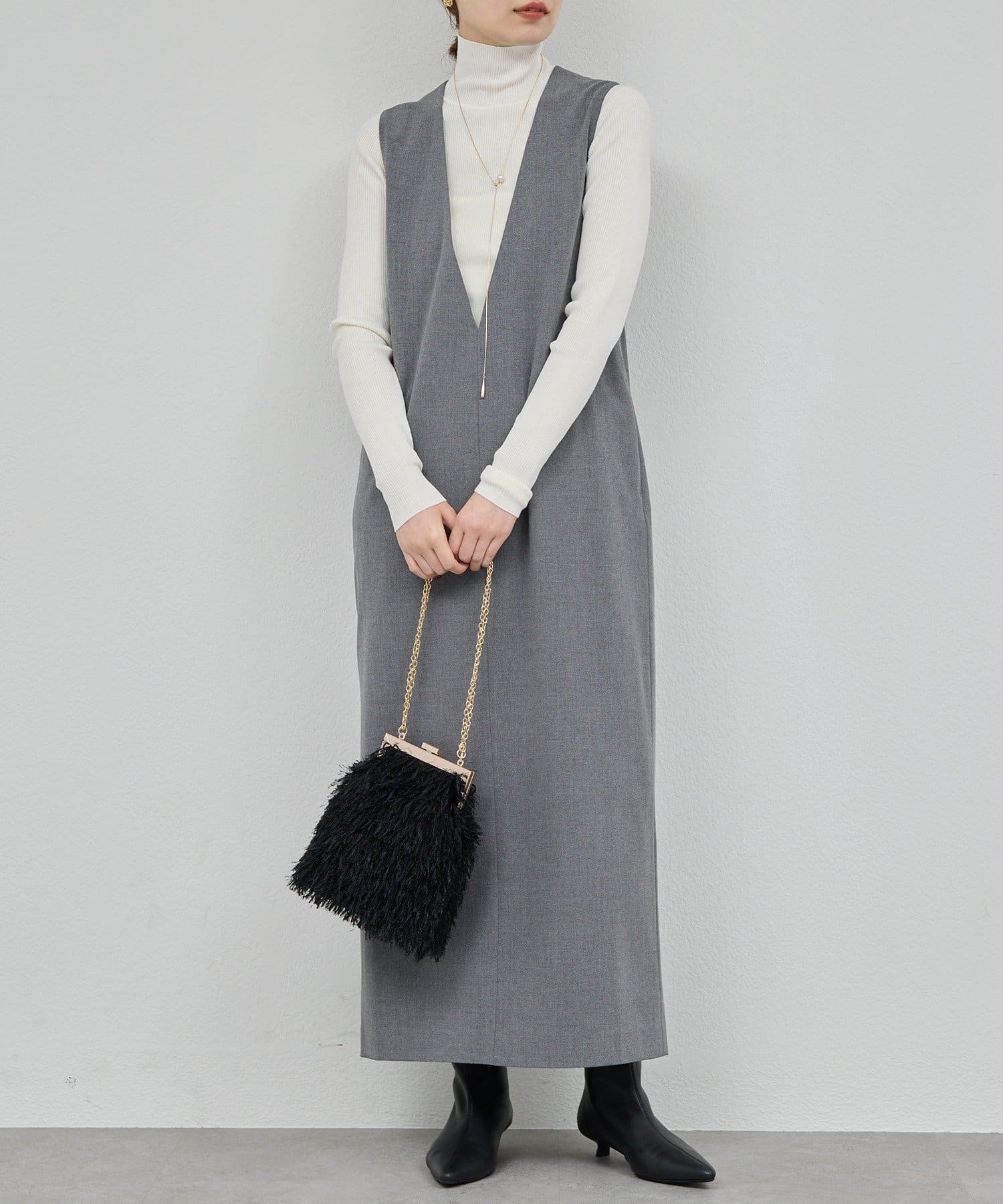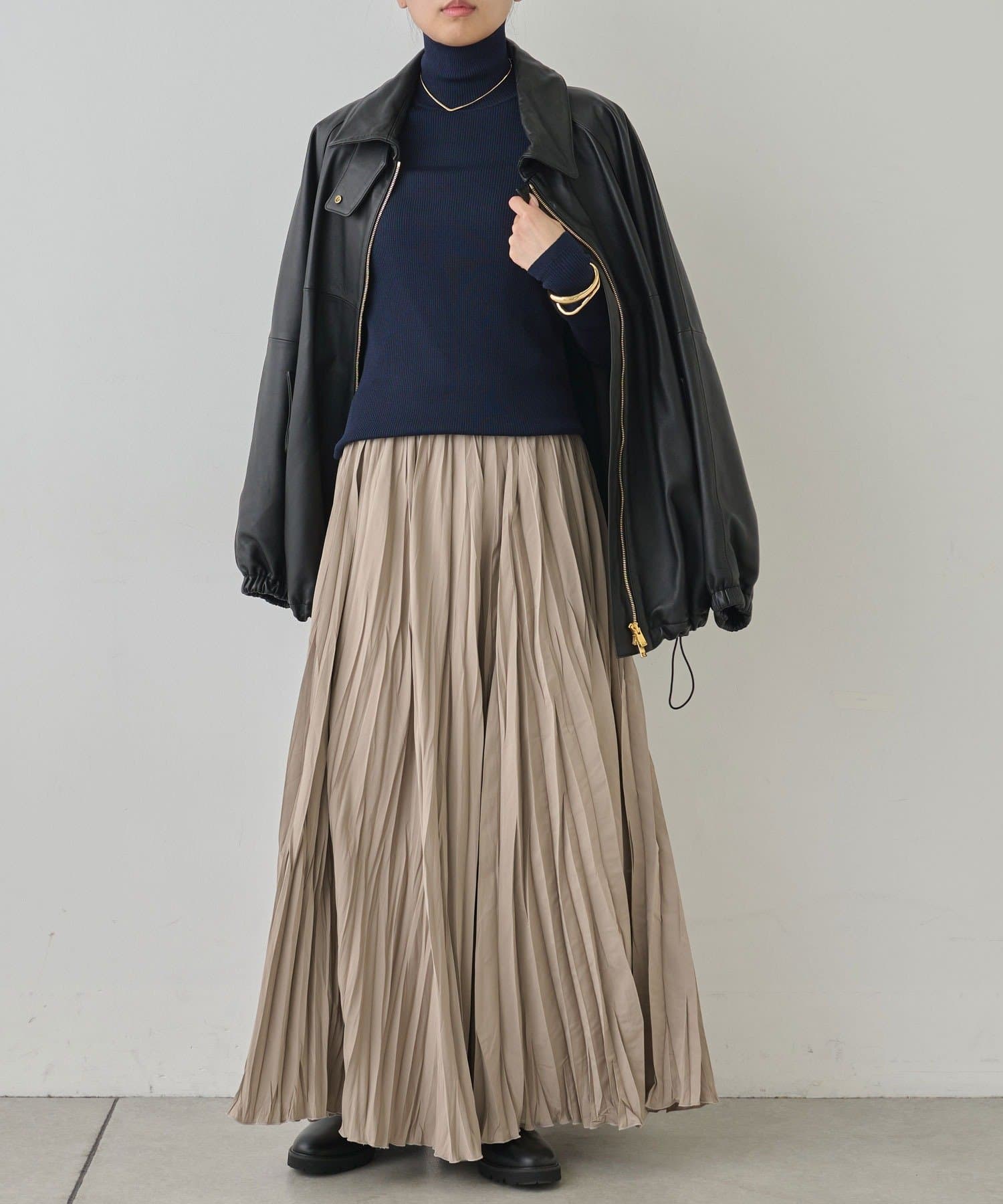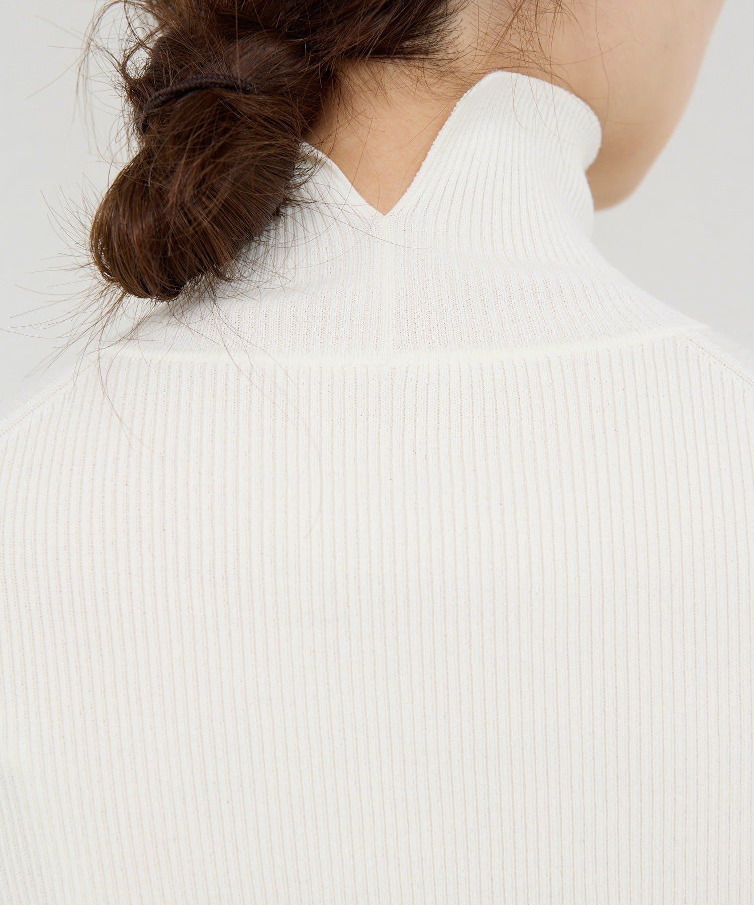 ●細めのリブ編みはボディラインを美しく見せ、女性らしさを演出。