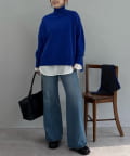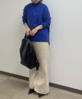 • staff:158cm ブルー×ブルーのワントーンコーデ。間にホワイトを挟むことで立体感をプラス!