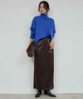 • staff:156cm 低身長さんはタイトスカートやロングネックレスで縦ラインを。
