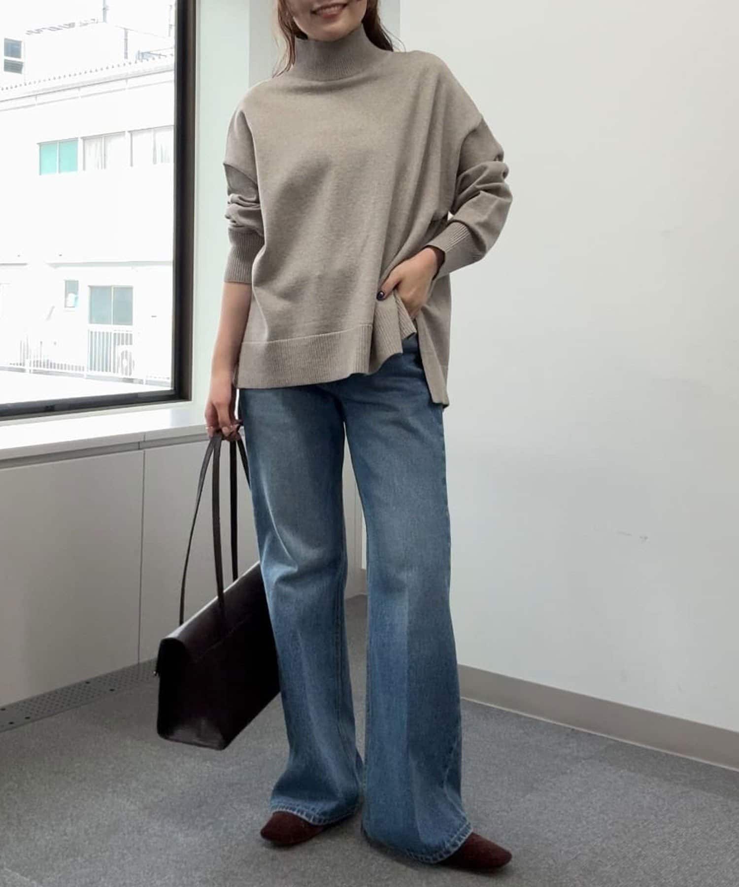 グレージュの色味も大好きなカラーで合わせやすいし、シルエットもパンツにもスカートにも合うし、本当に万能なニットです!