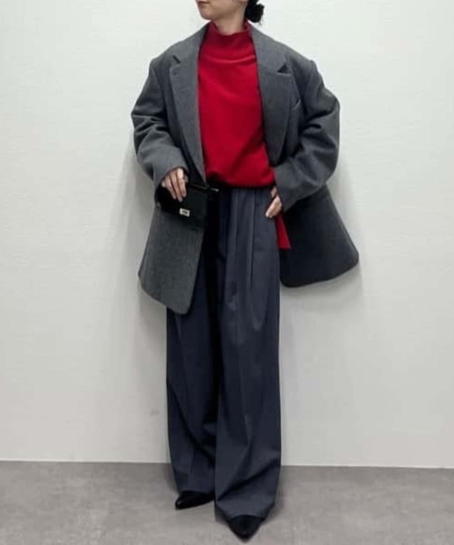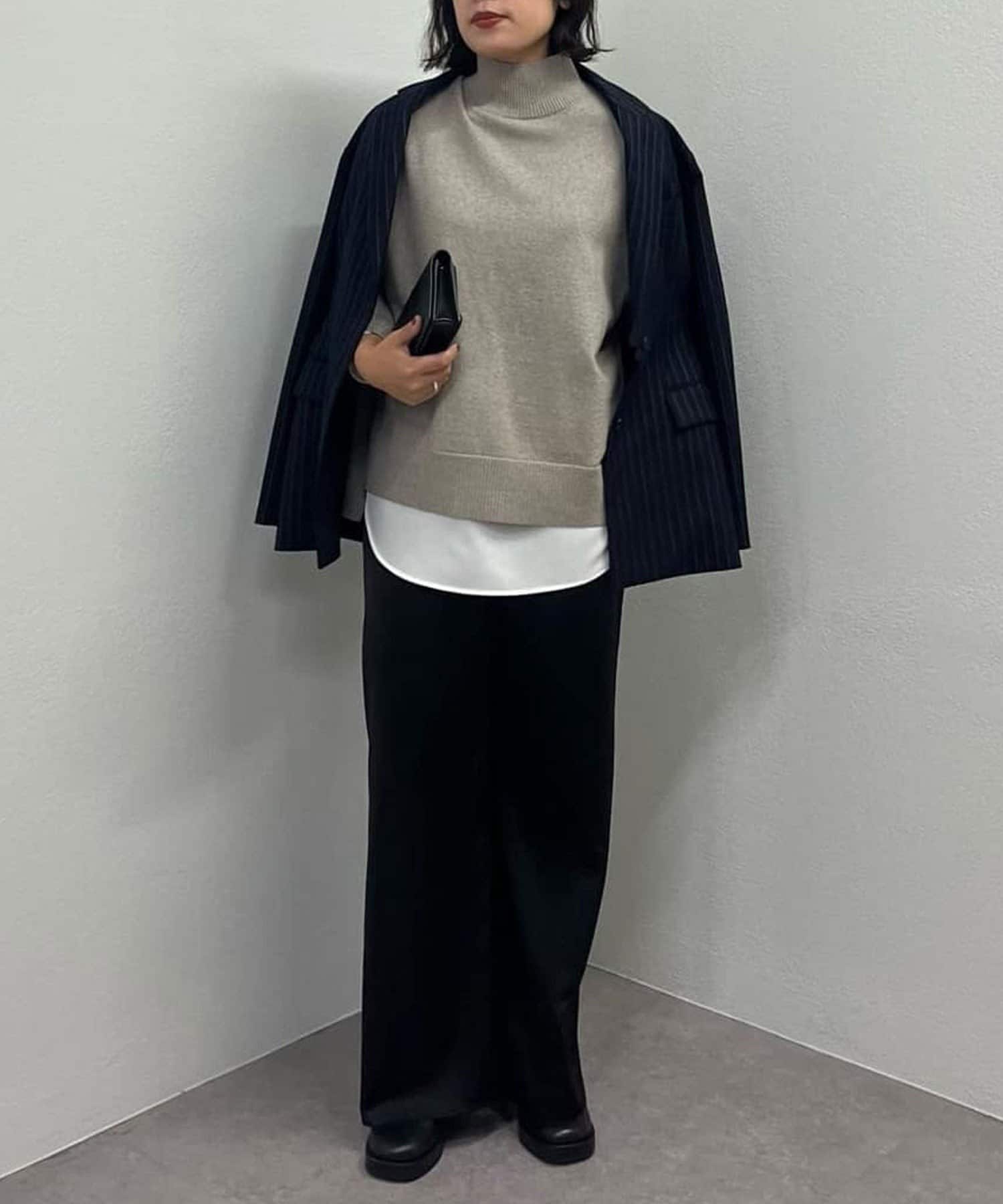 • staff:155cm 羽織りも選ばず着回せます。グレー合わせはシックな仕上がりに。
