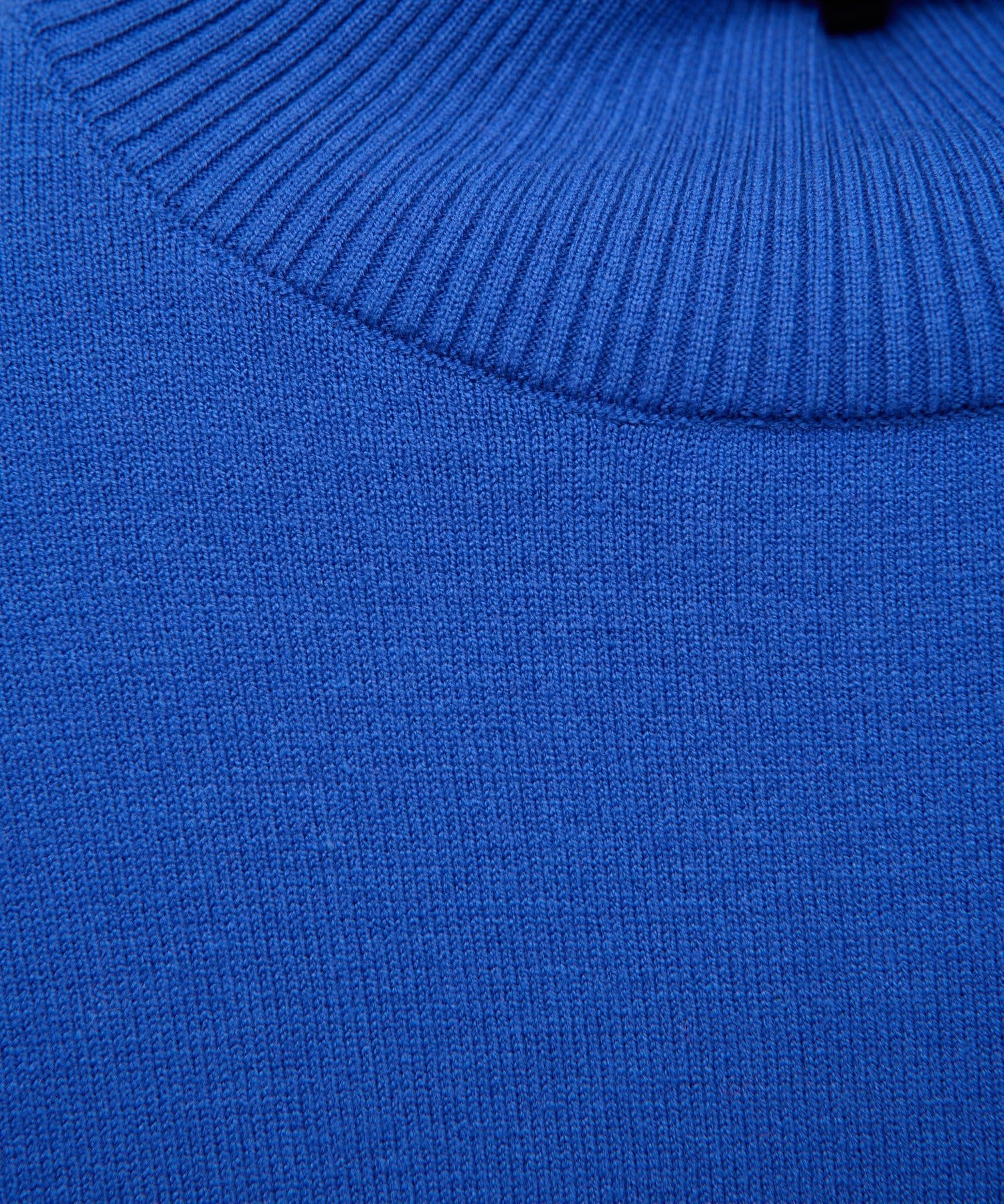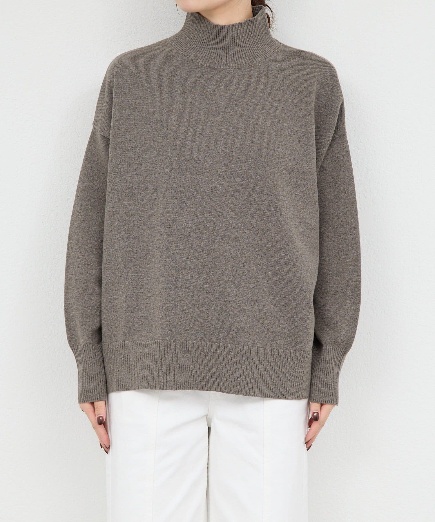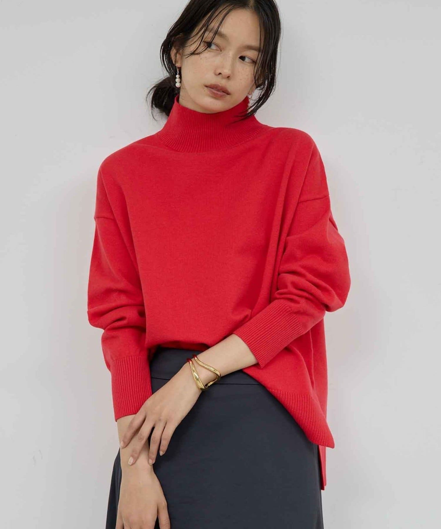 毛玉のできにくい非ウール素材で初秋から長く着られるタートルニット。