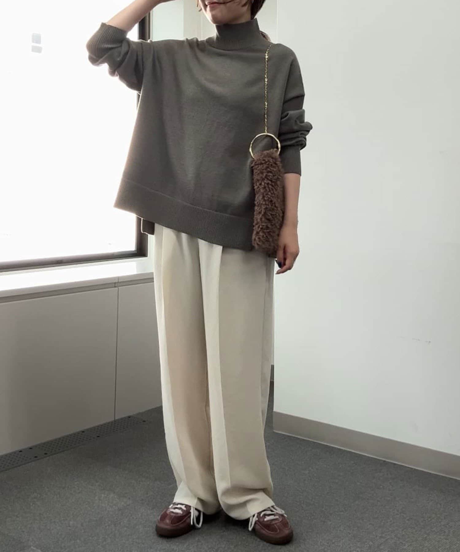 骨格・ボトムスを選ばないワードローブに1枚は欲しい万能ニット。