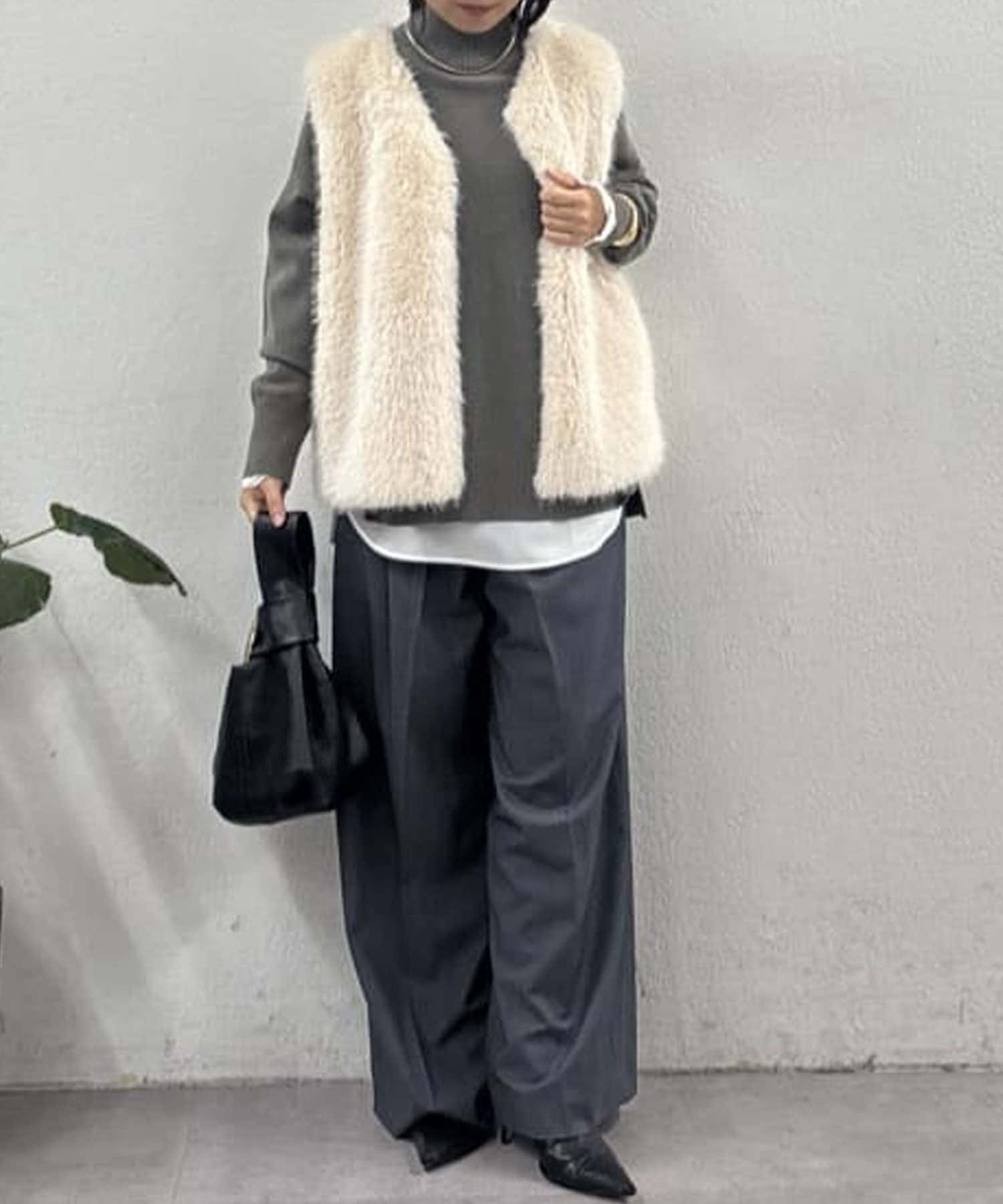 • staff:156cm 1枚で飽きたらファーベストのレイヤードもおすすめ!