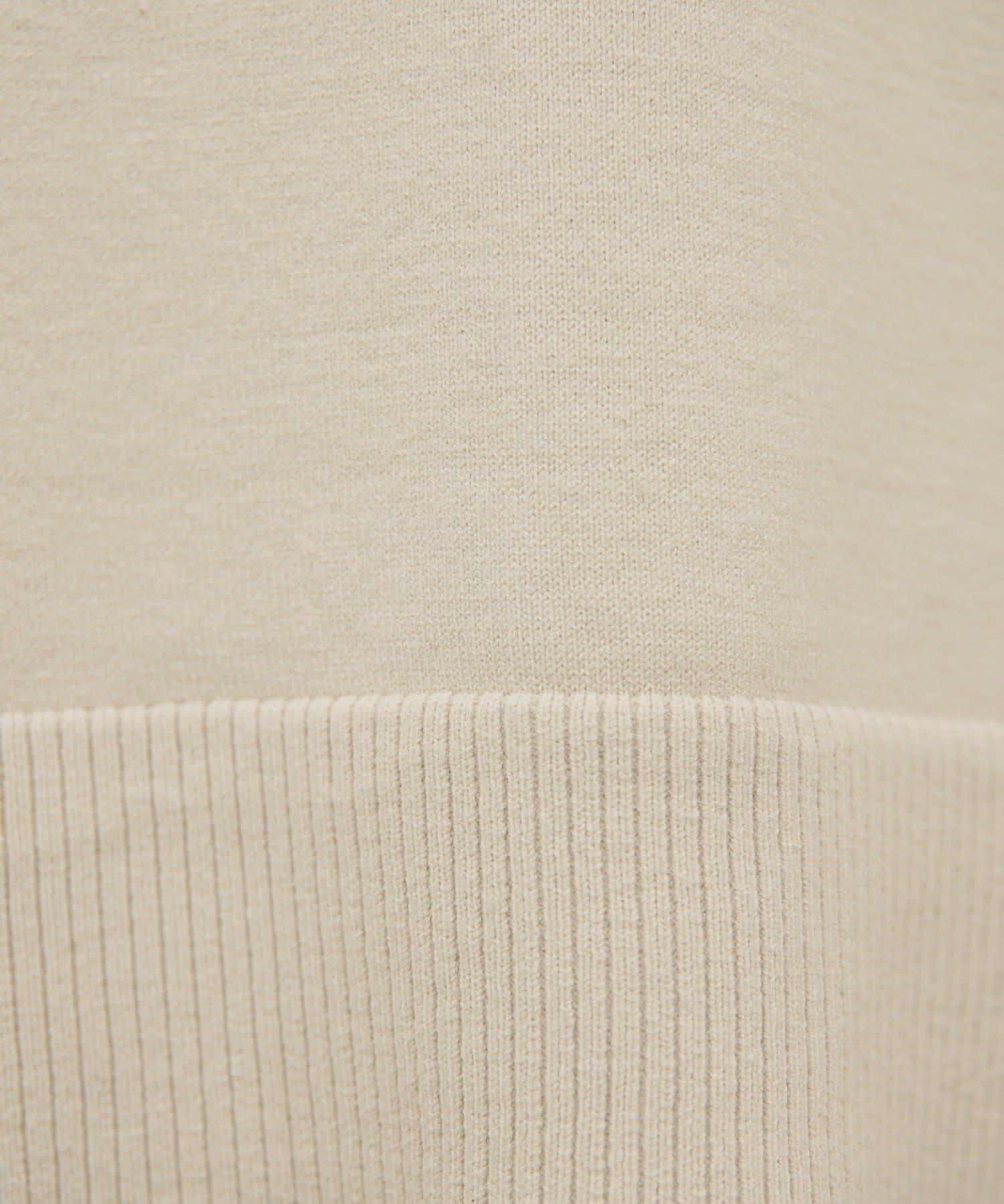 ●程よいゆとり感とメリハリ感を演出するネック、袖口デザインは着やせ効果◎