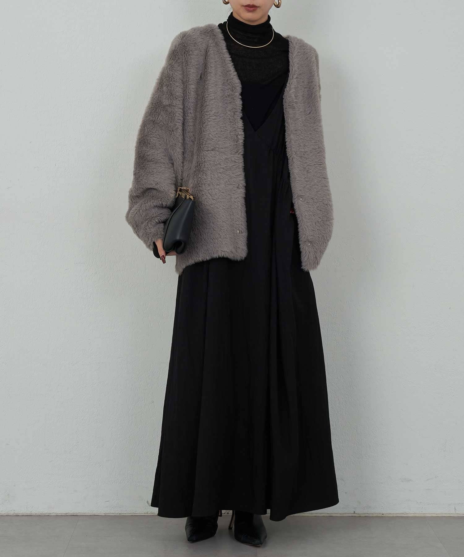 アウター感覚で着回せるリッチな素材感の2WAYカーディガン