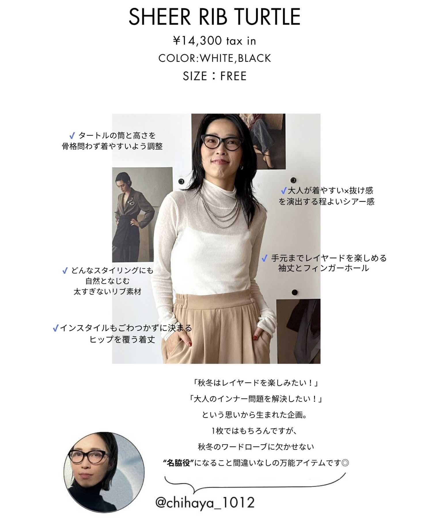 【CHIHAYAコラボ】【名脇役インナー】シアーリブタートル