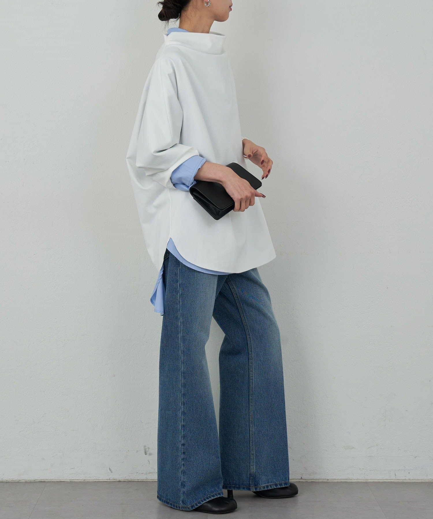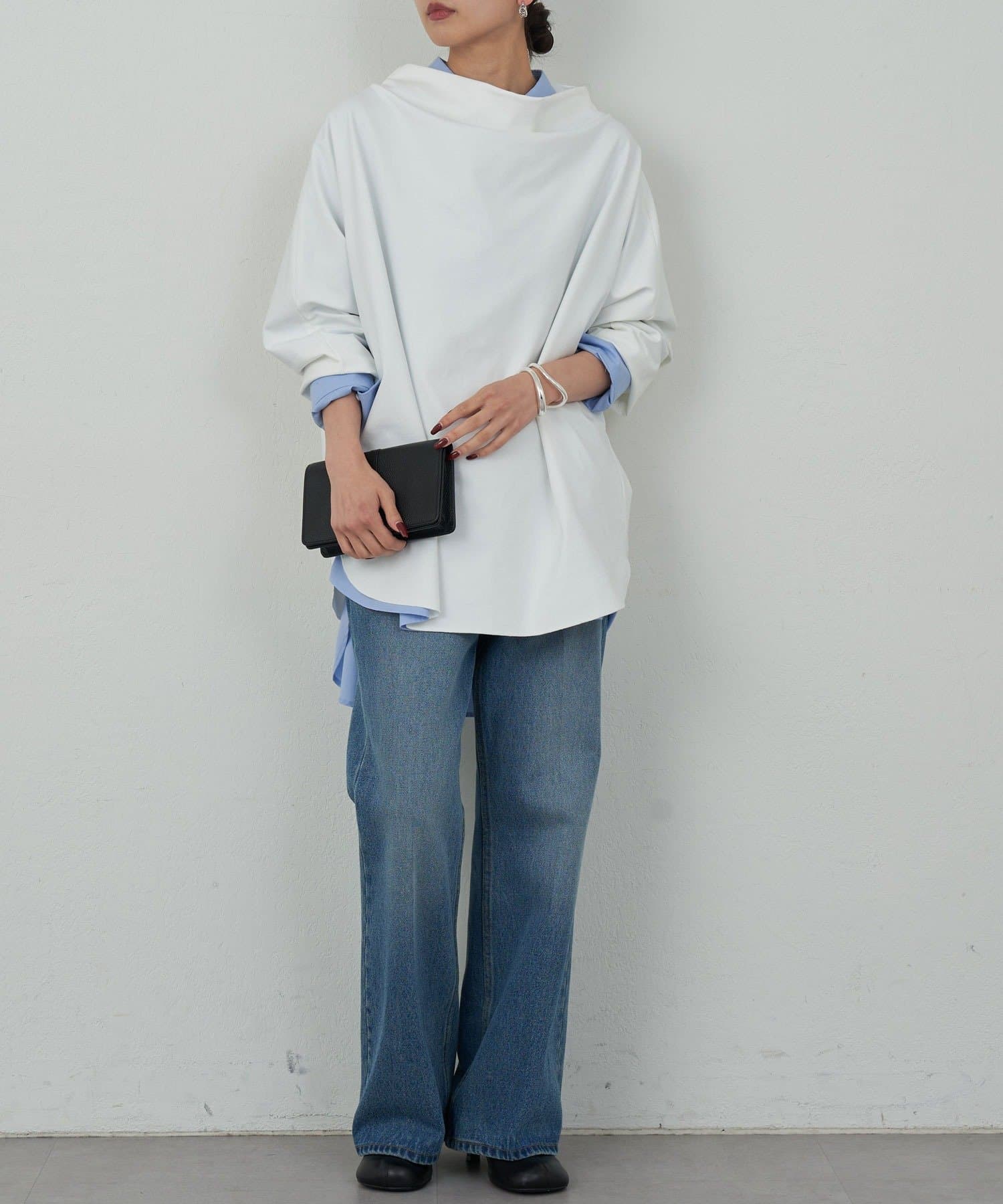 ●同シリーズアイテムより素材を少し軽やかにし美しいドレープを表現。