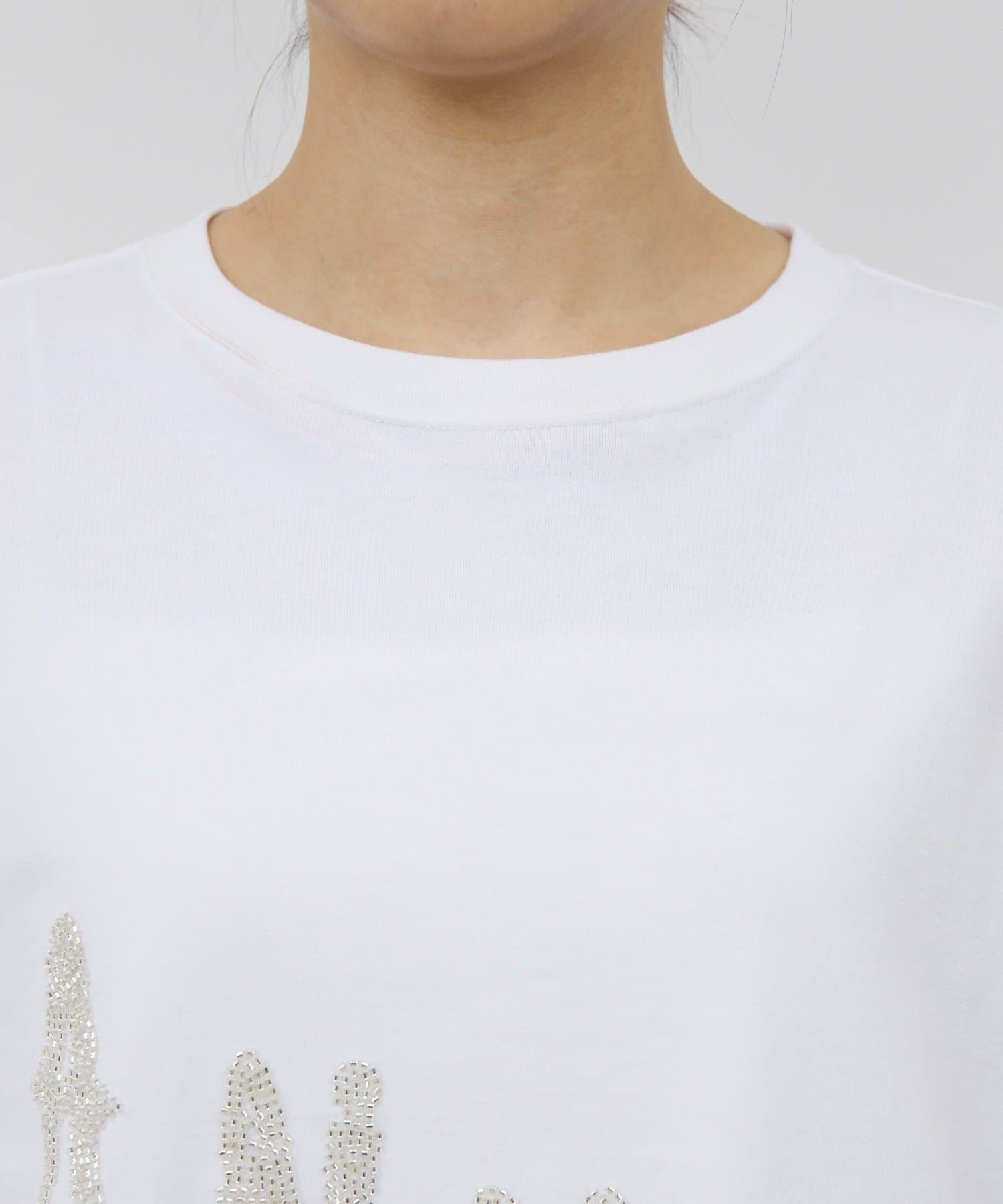 スタイリングのポイントになるビジューロンTee