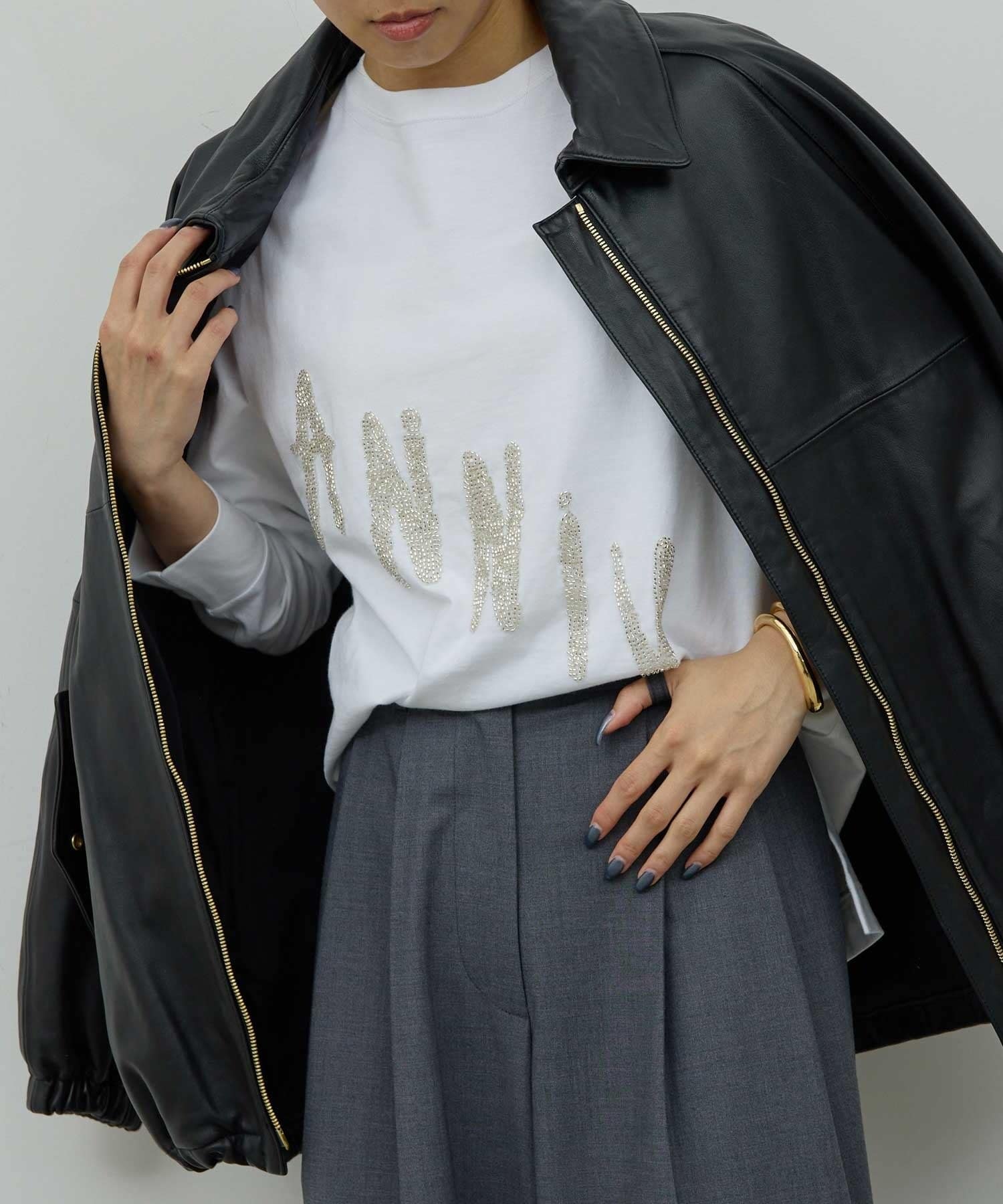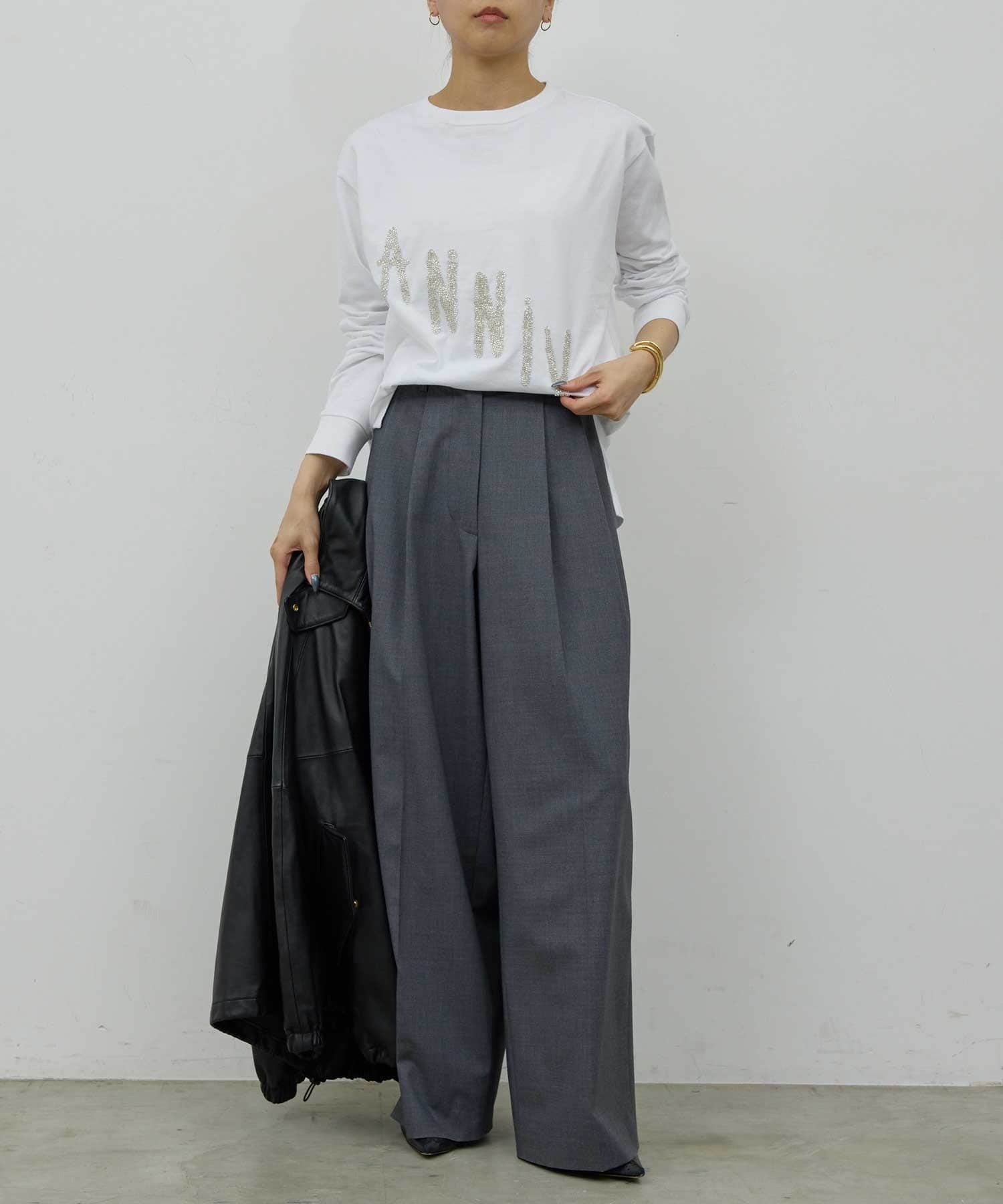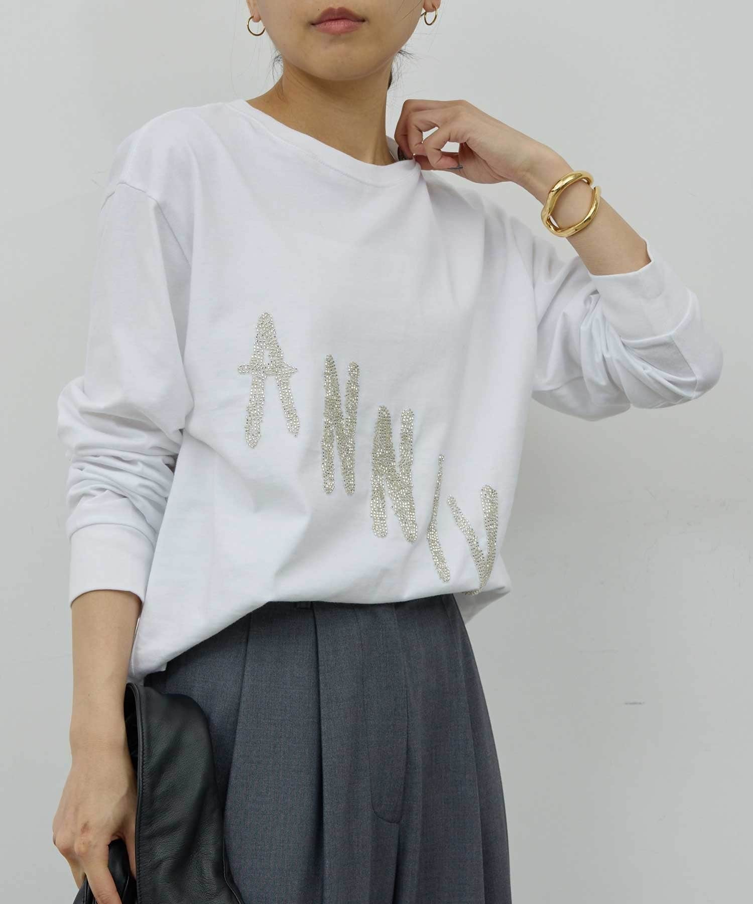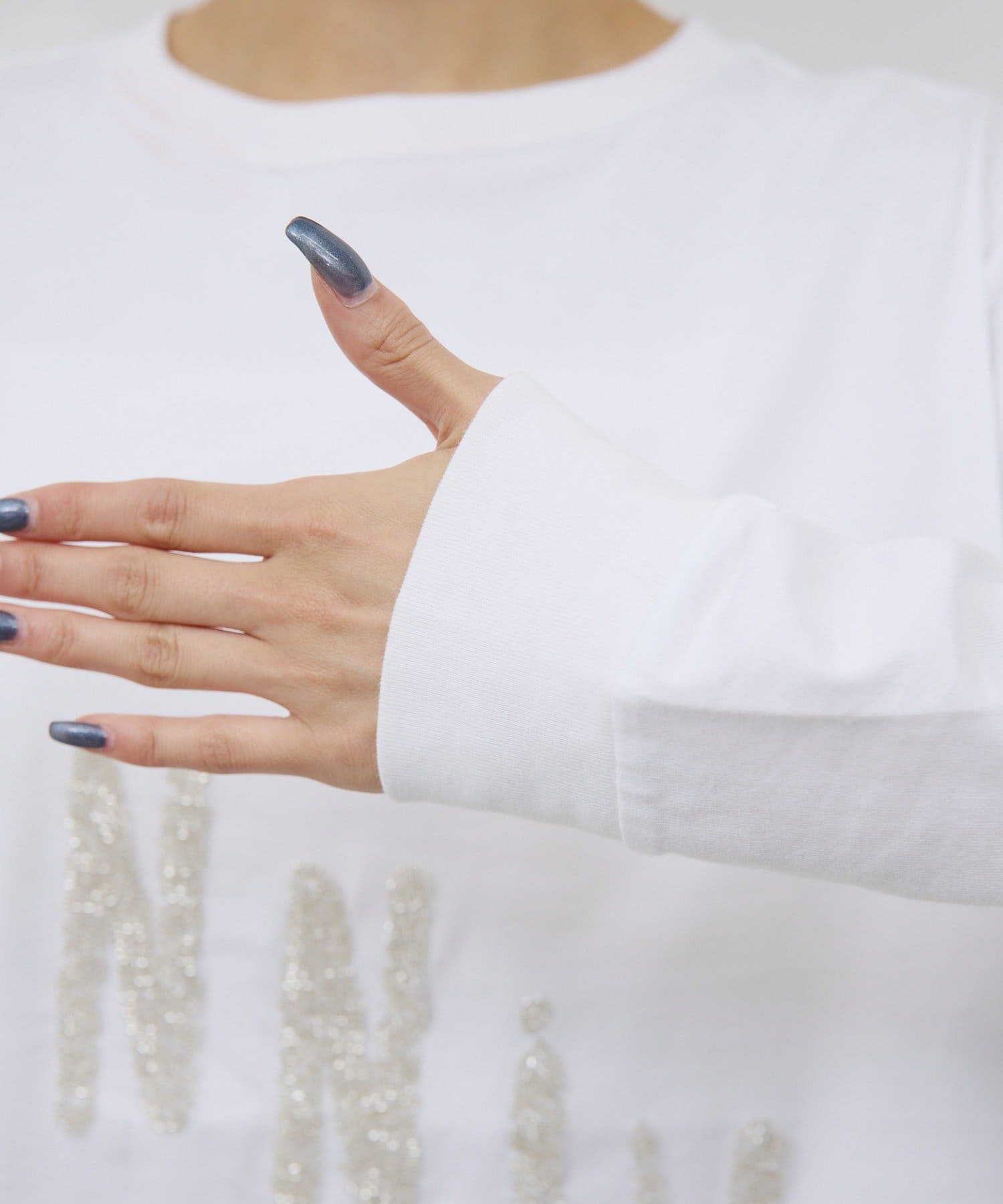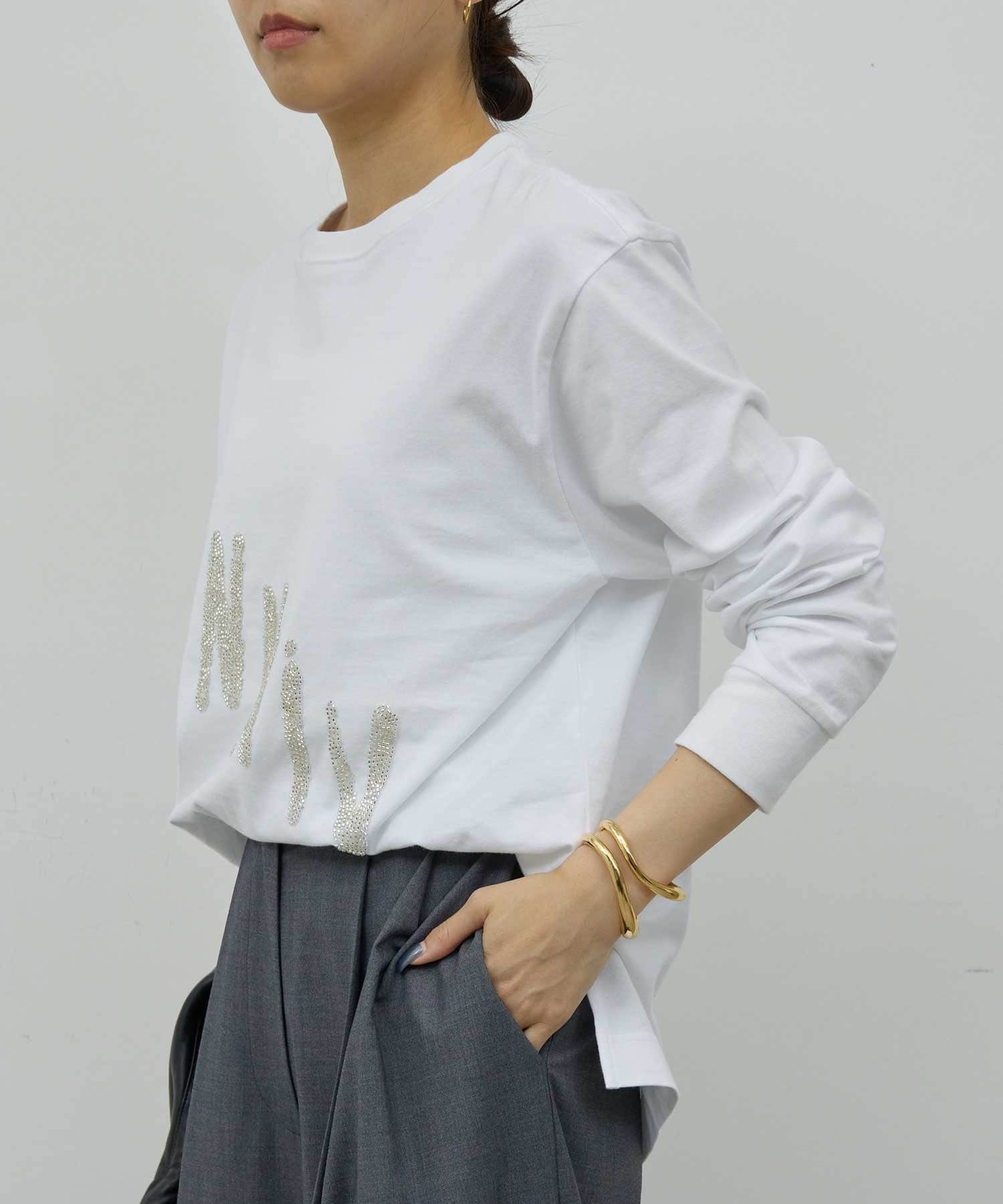 ●ビジューデザインがスタイリングのポイントになるロングスリーブTee。