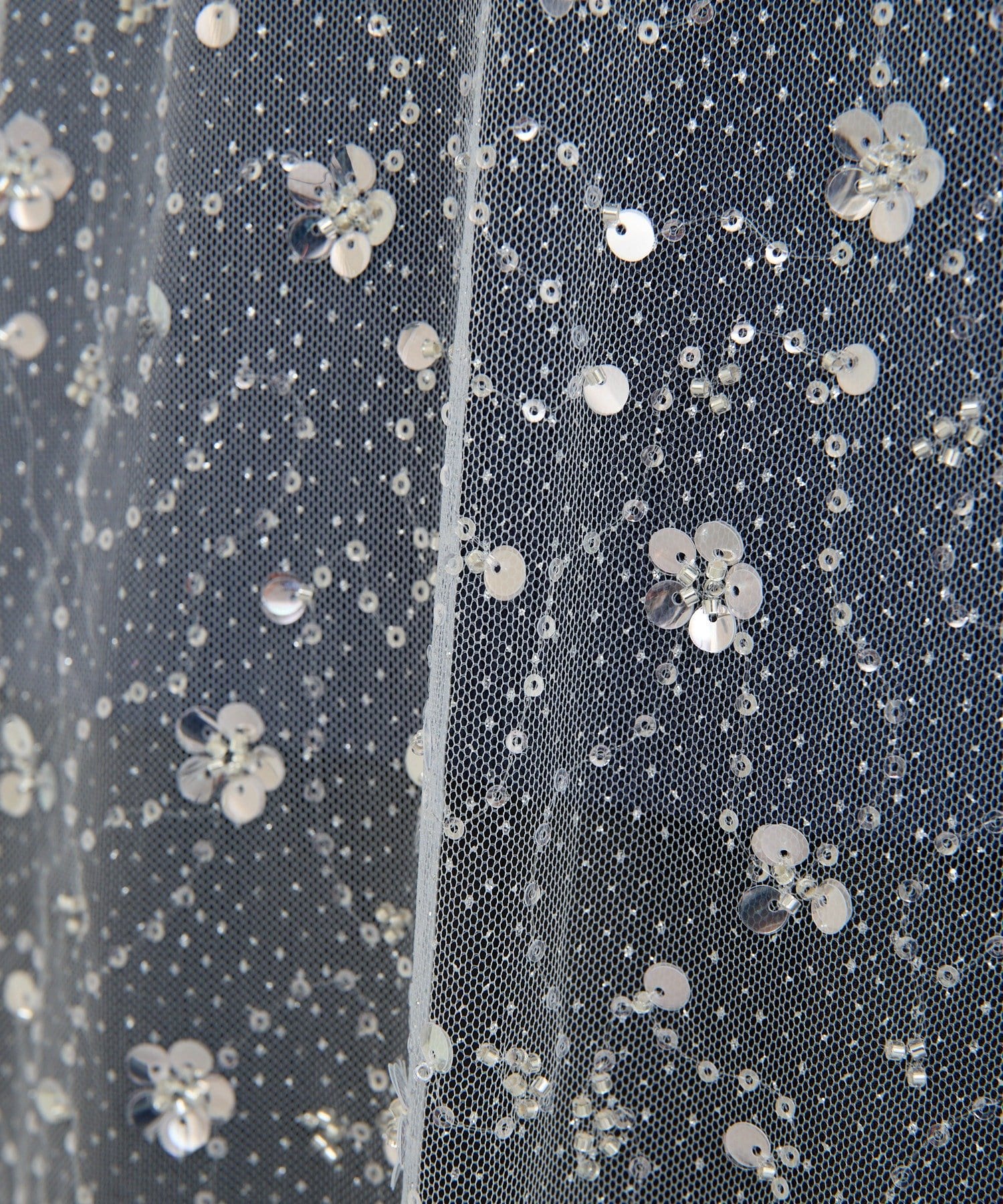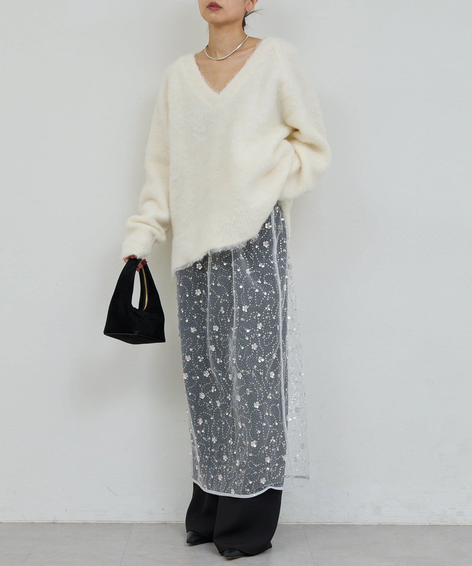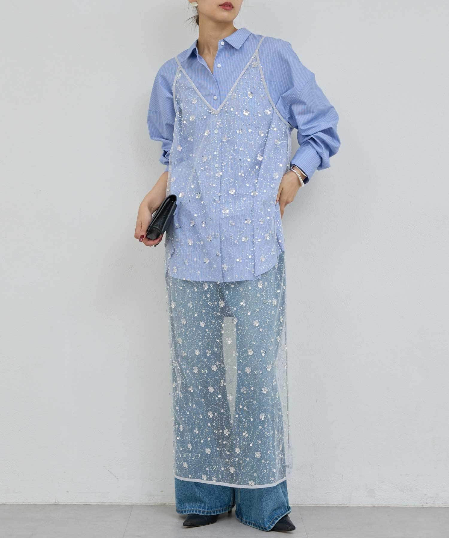 ●ちりばめられた繊細なビジューがコーディネートを華やかに。