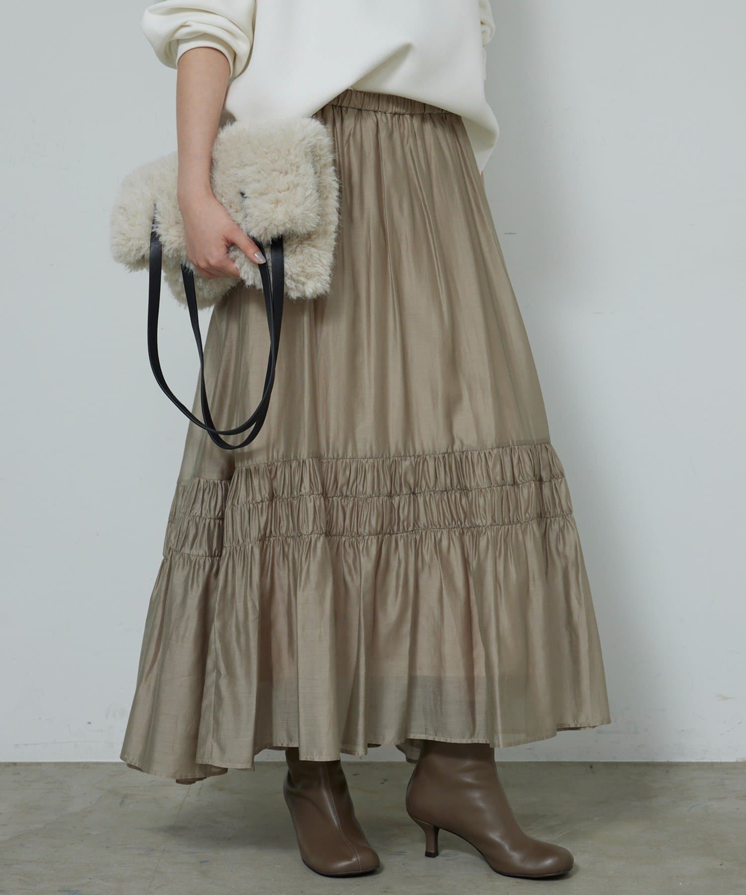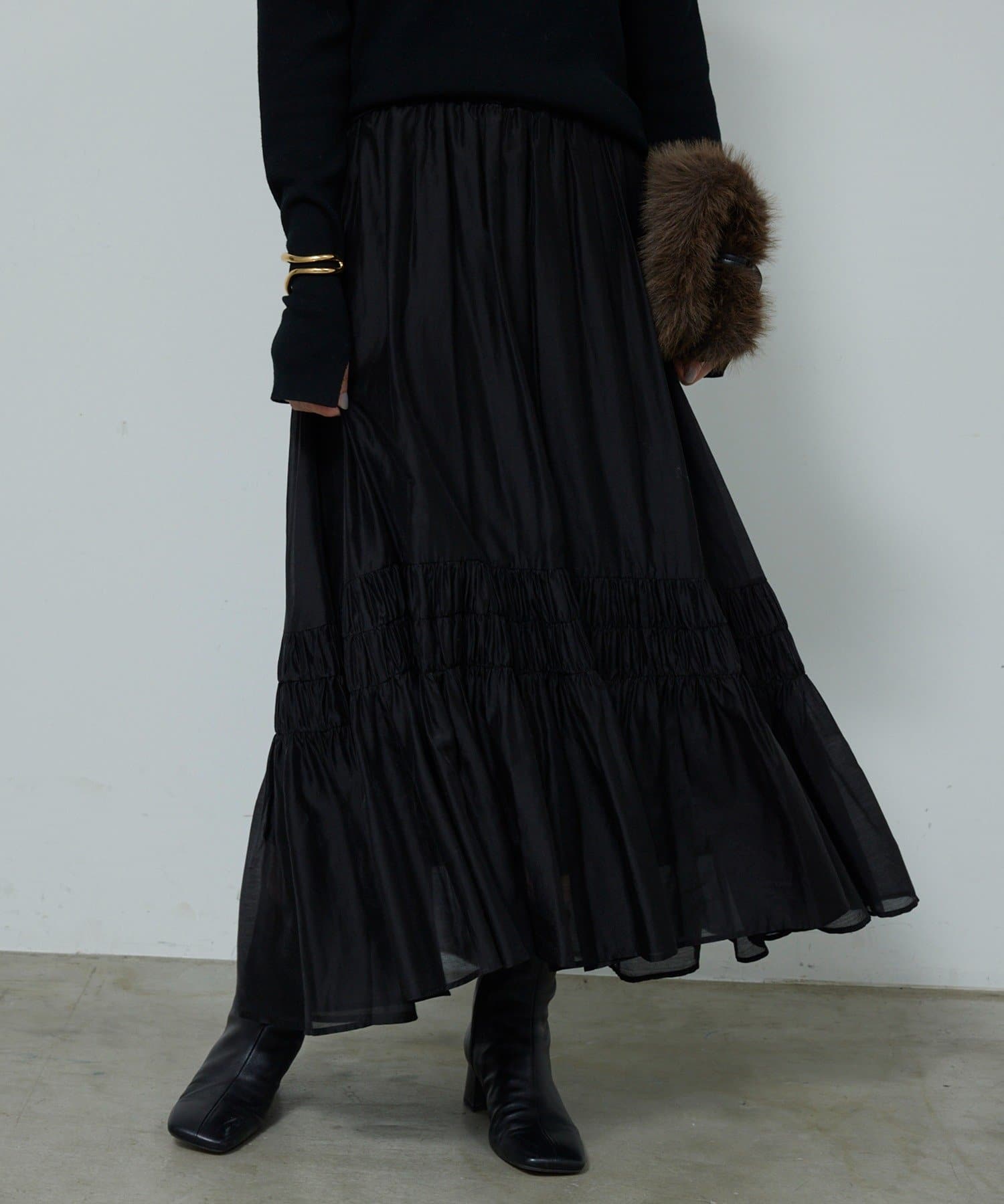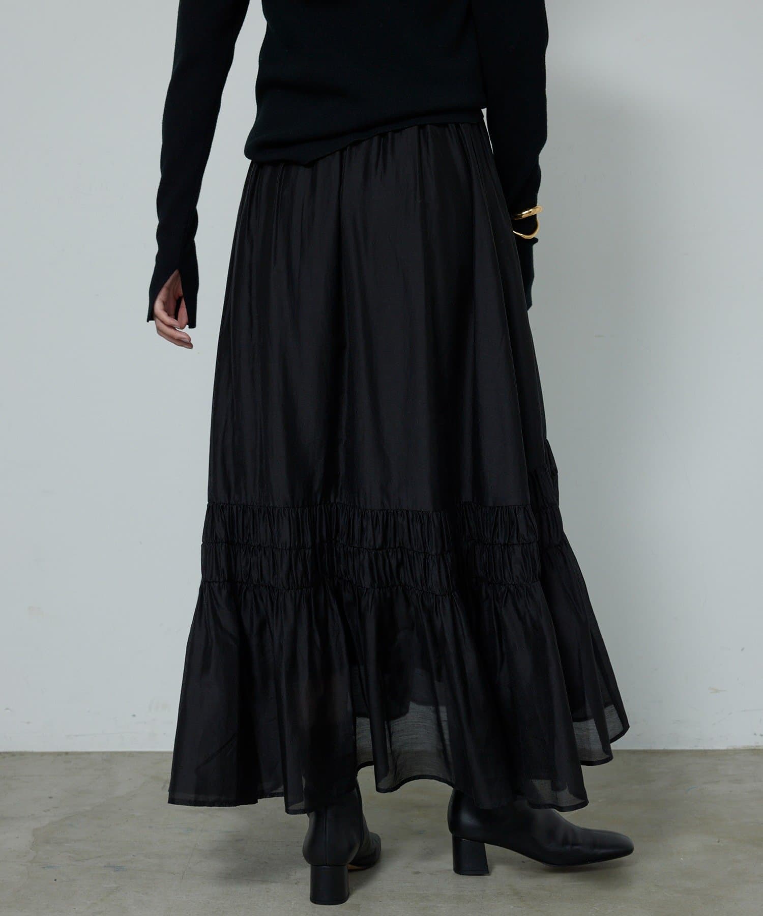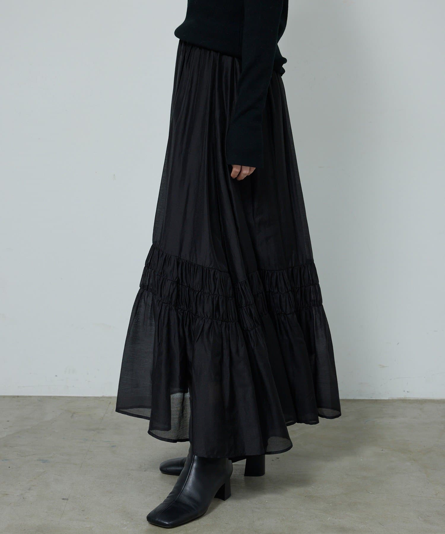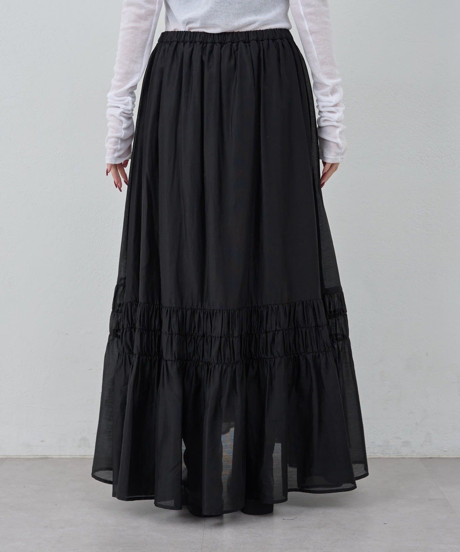 ●軽やかなシアー感が魅力の女性らしいギャザースカート。