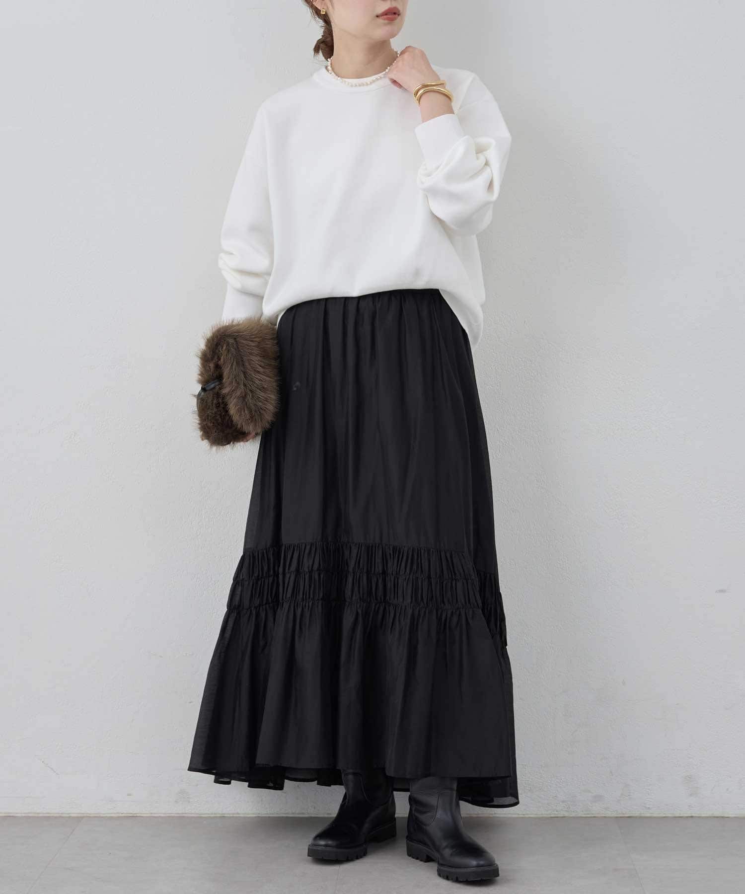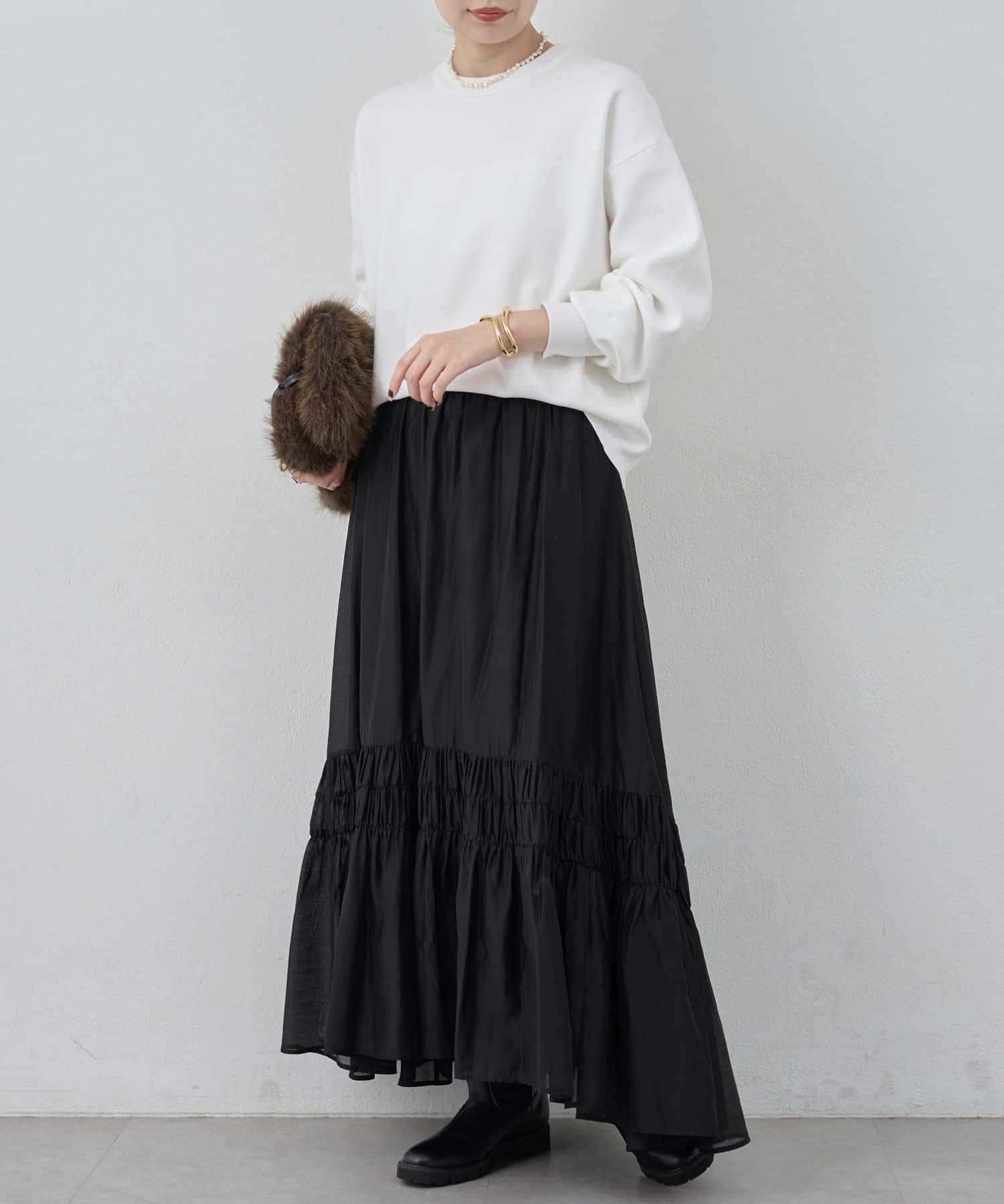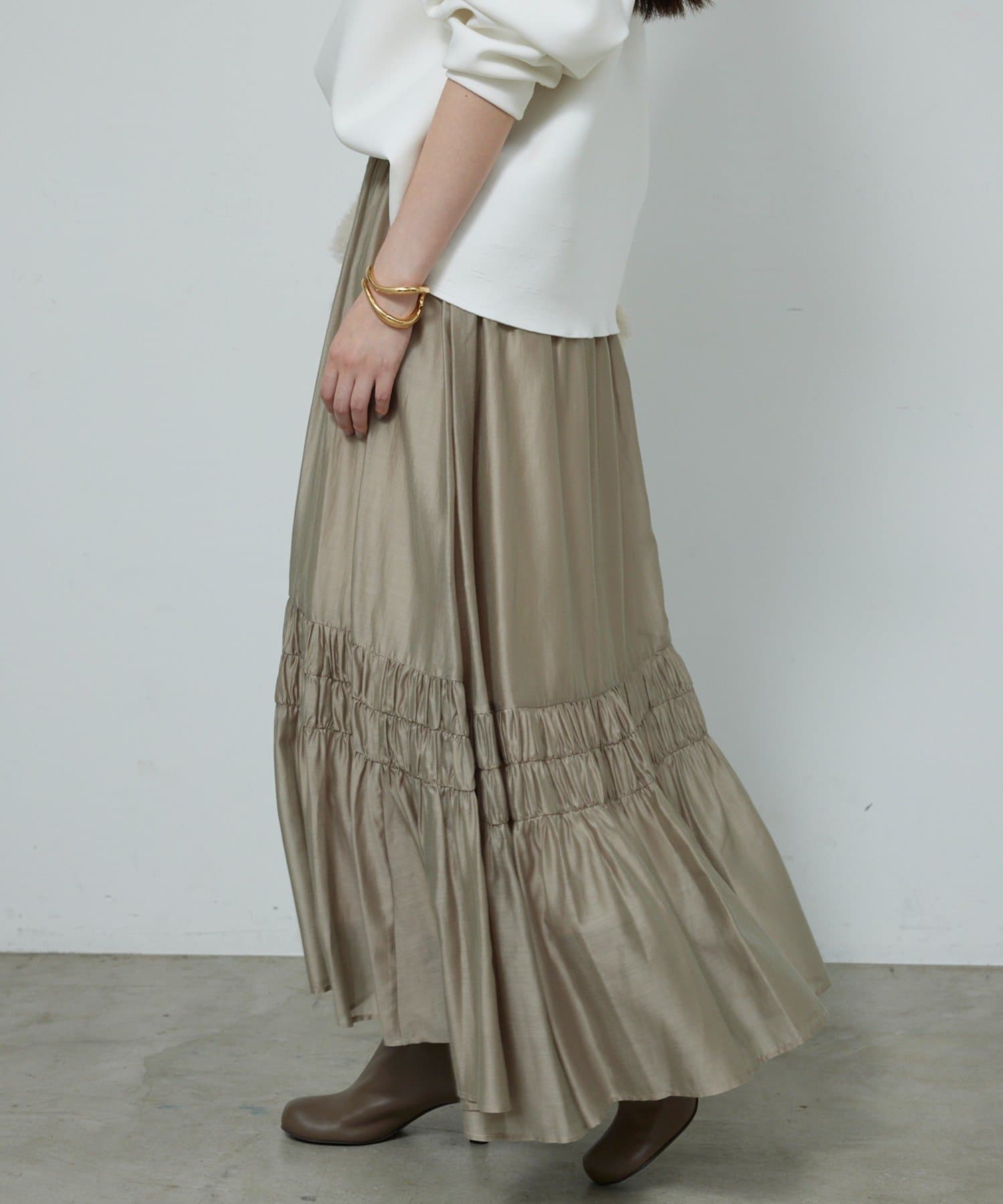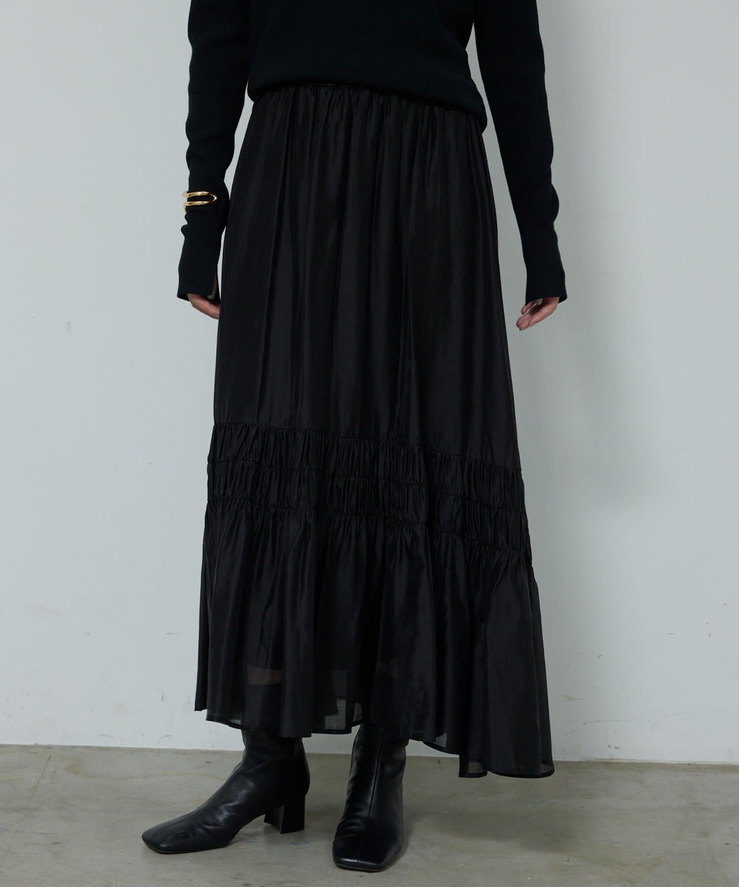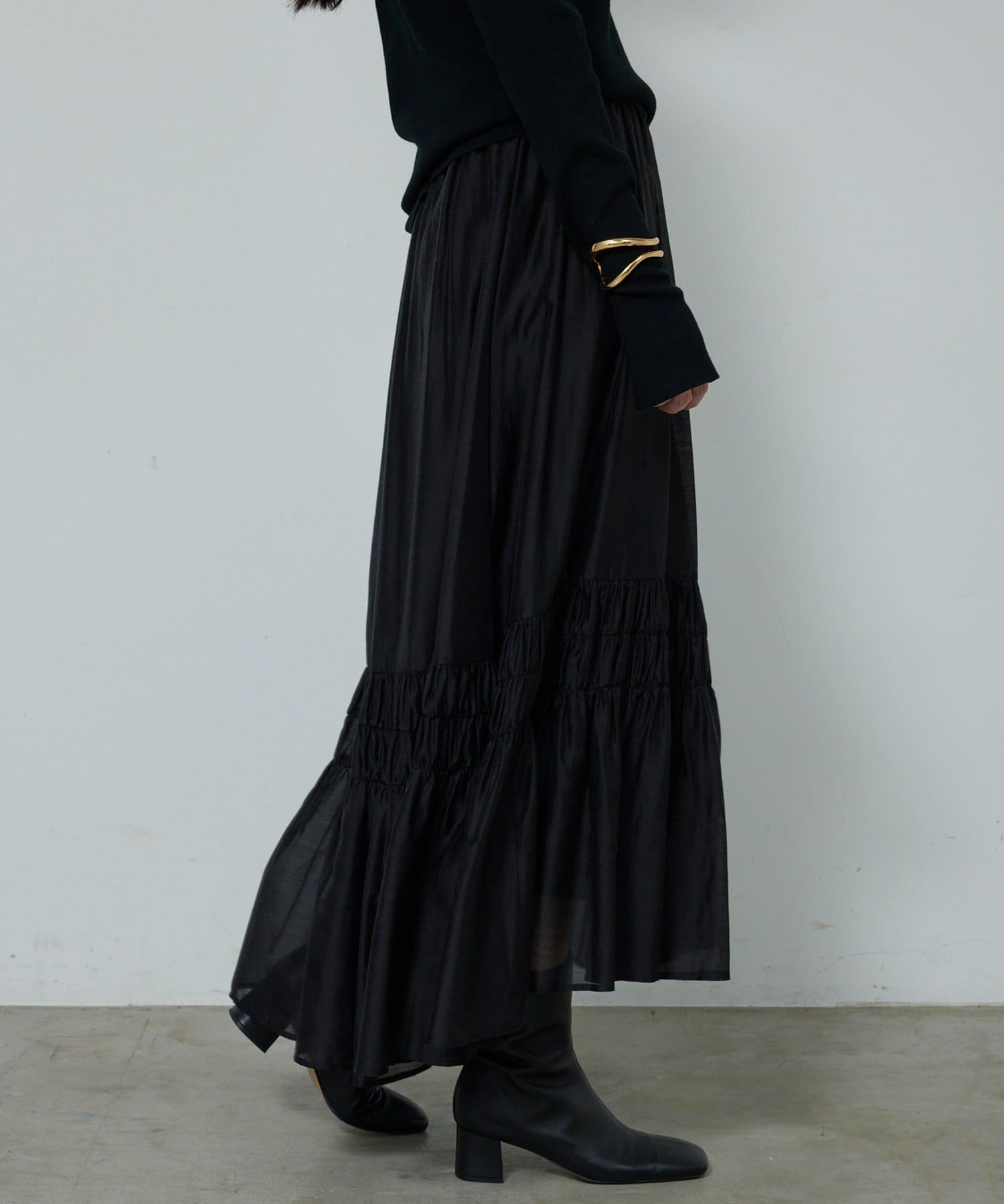 ●軽やかなシアー感が魅力の女性らしいギャザースカート。