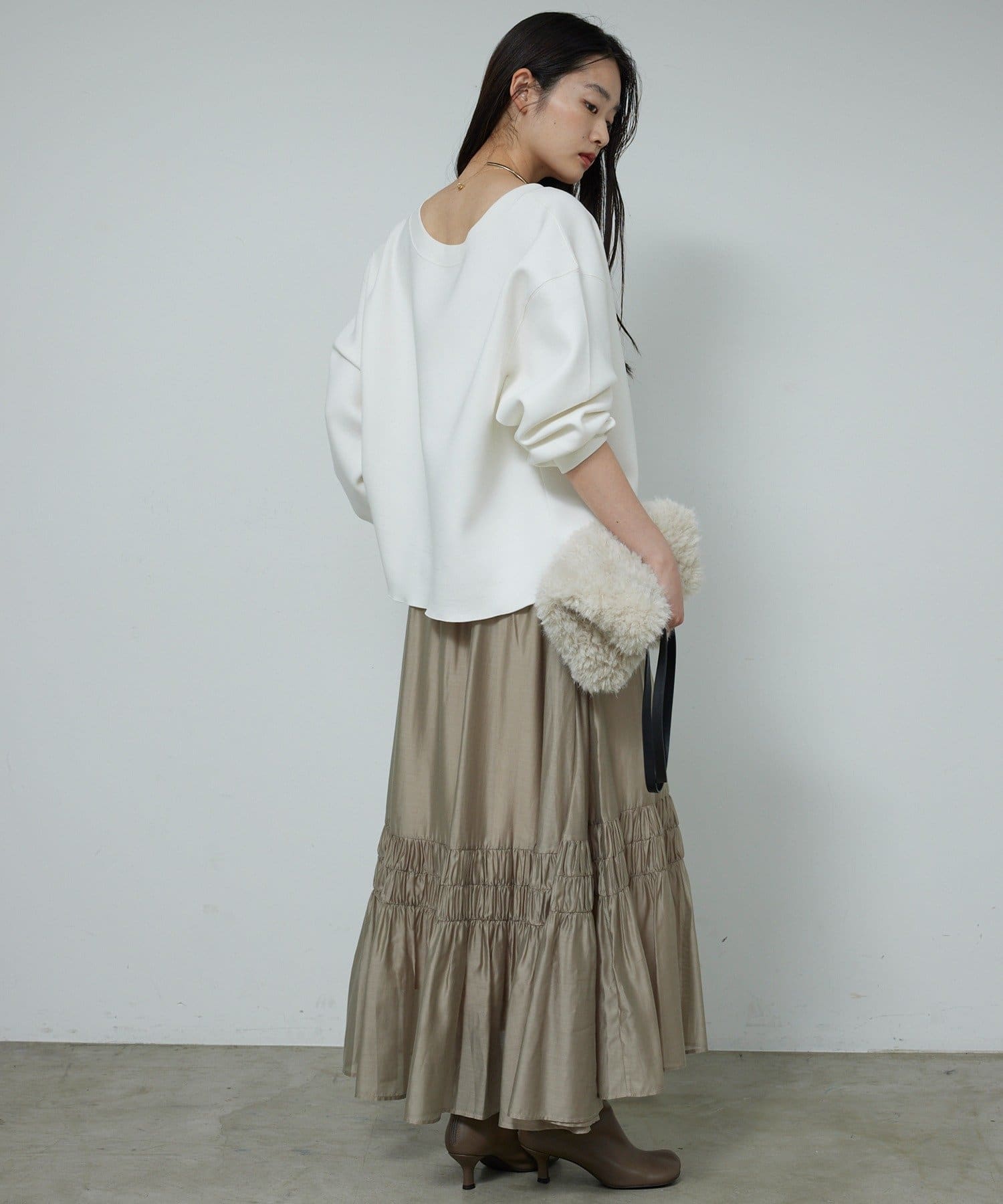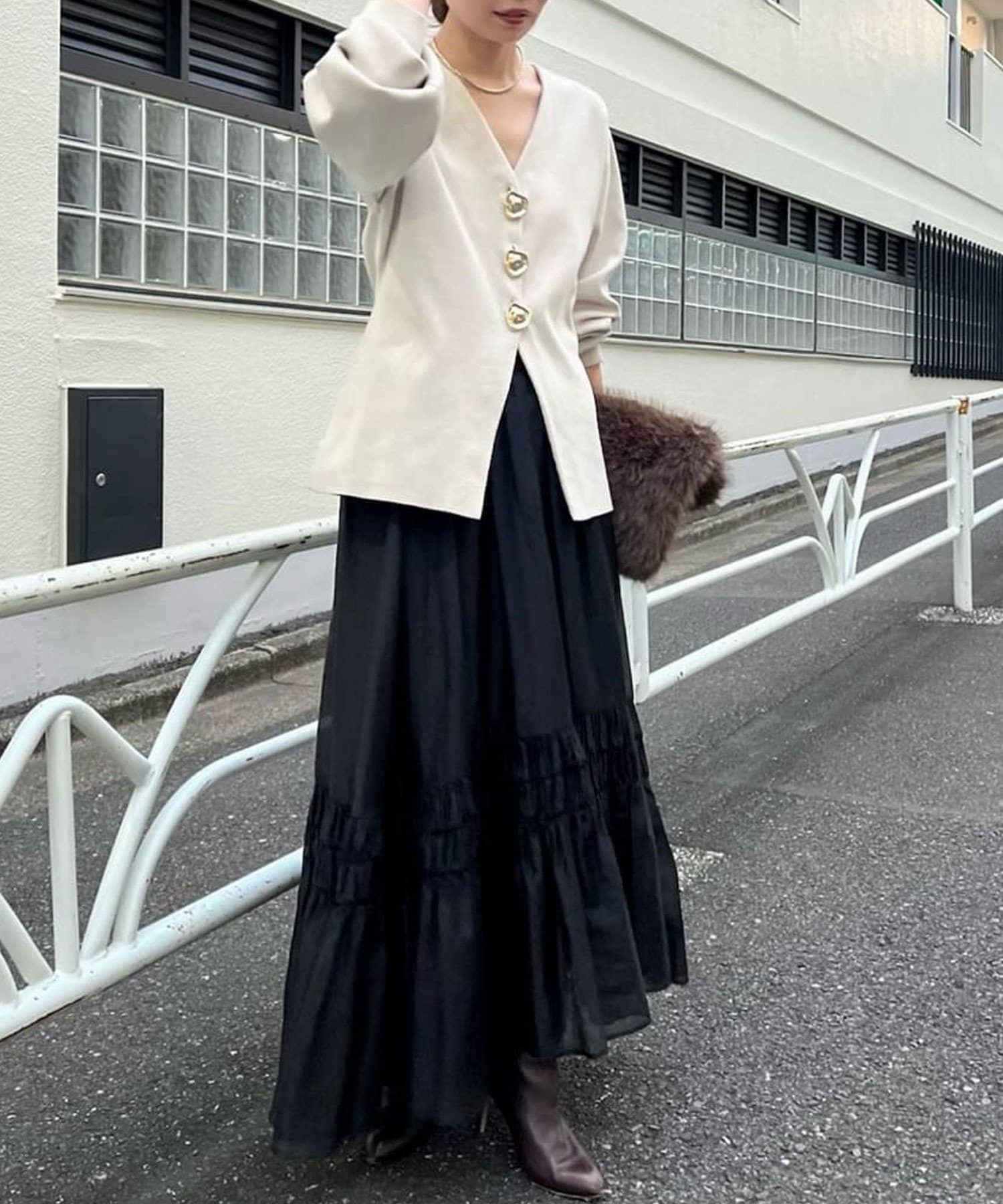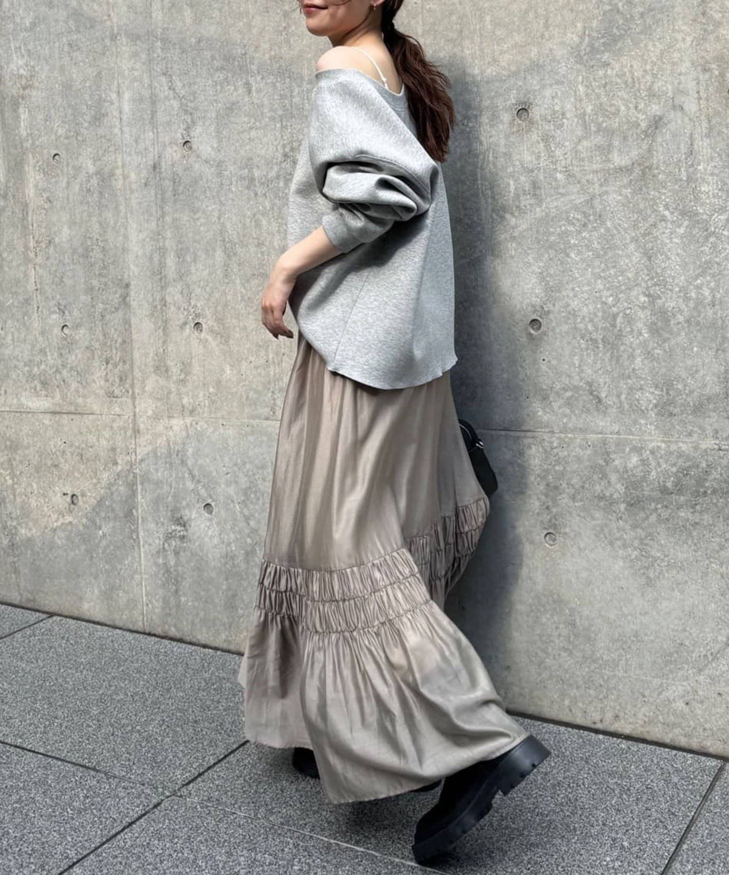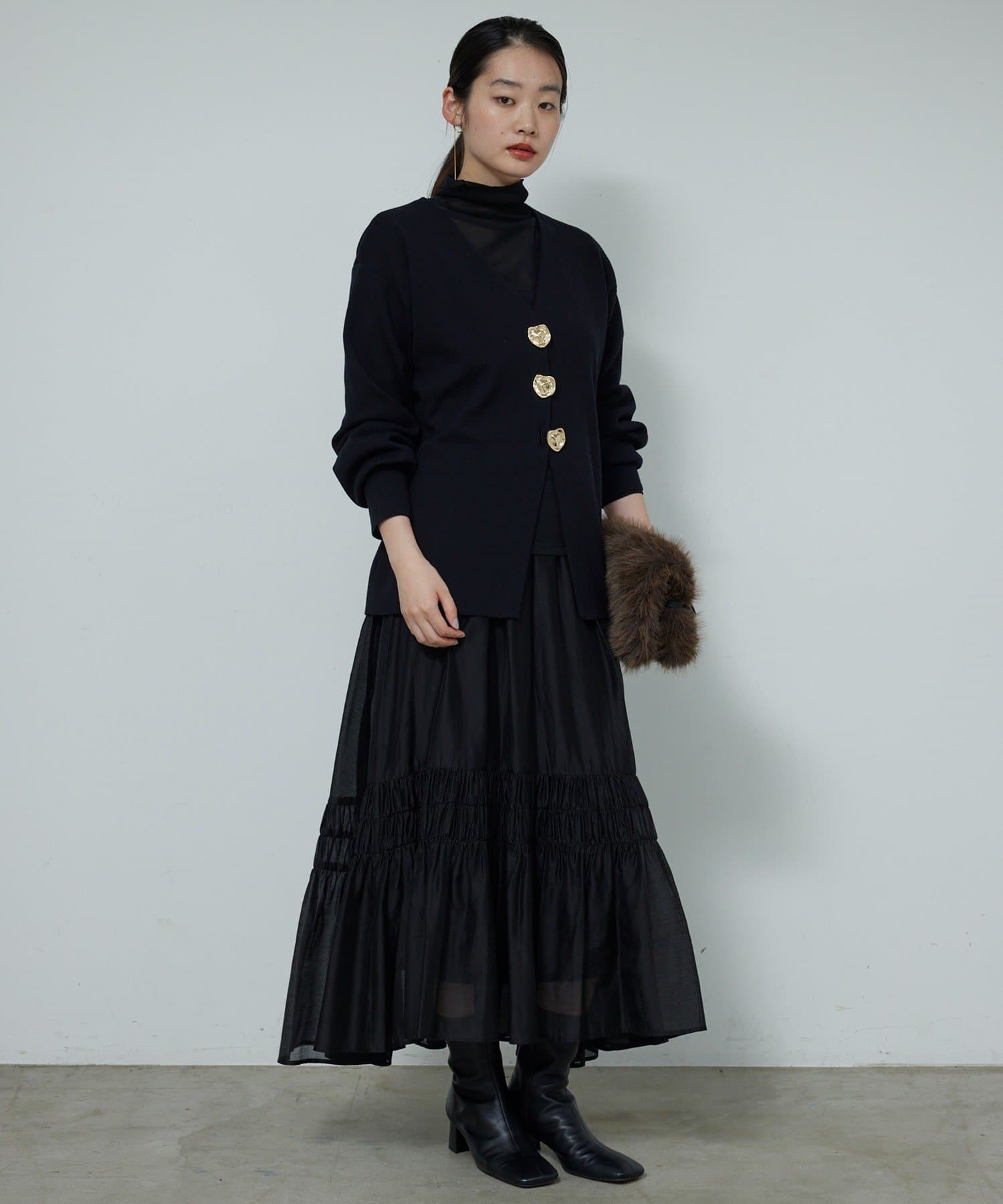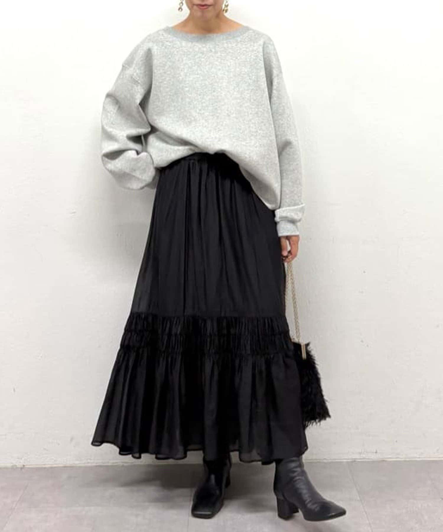 ●軽やかなシアー感が魅力の女性らしいギャザースカート。