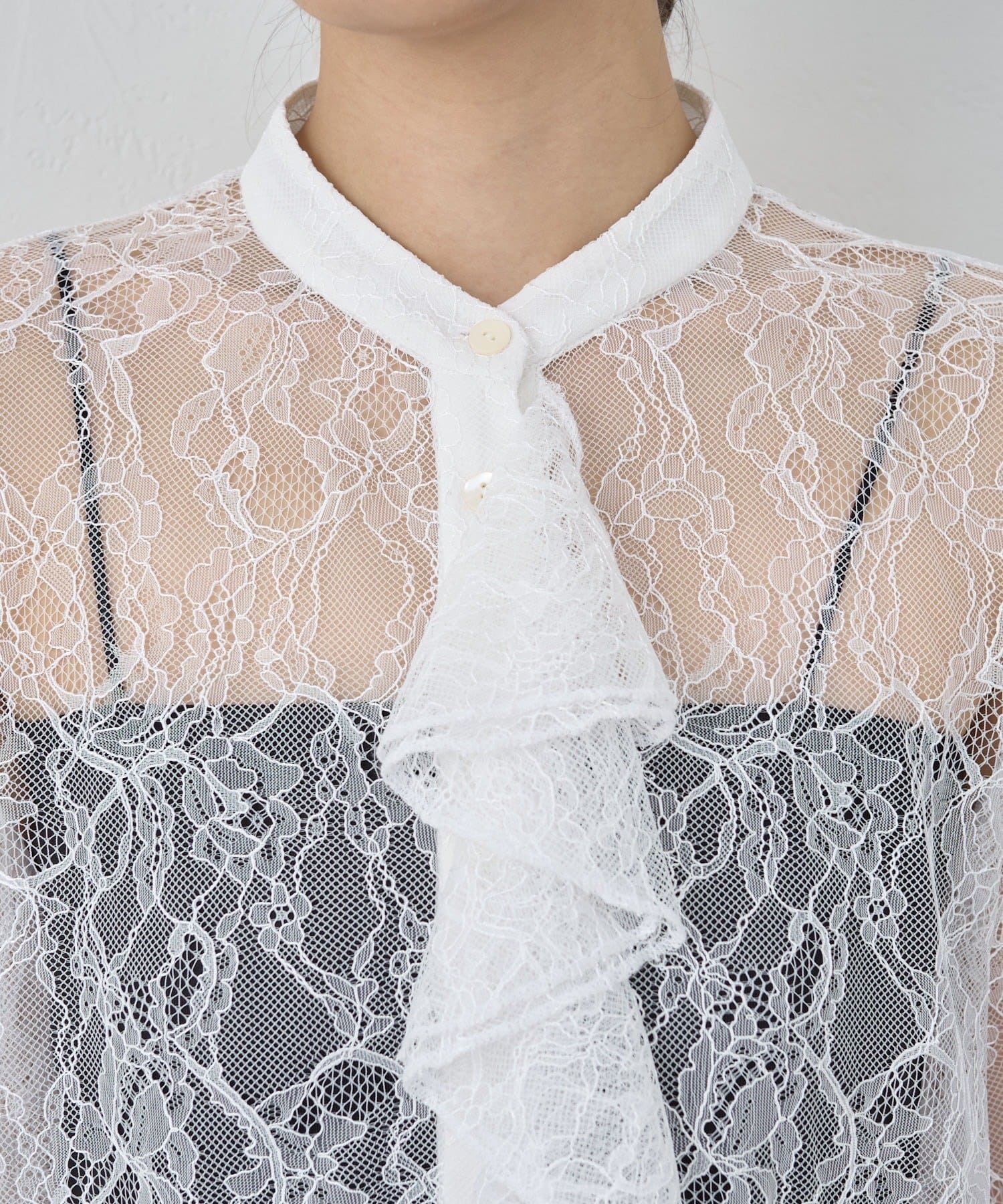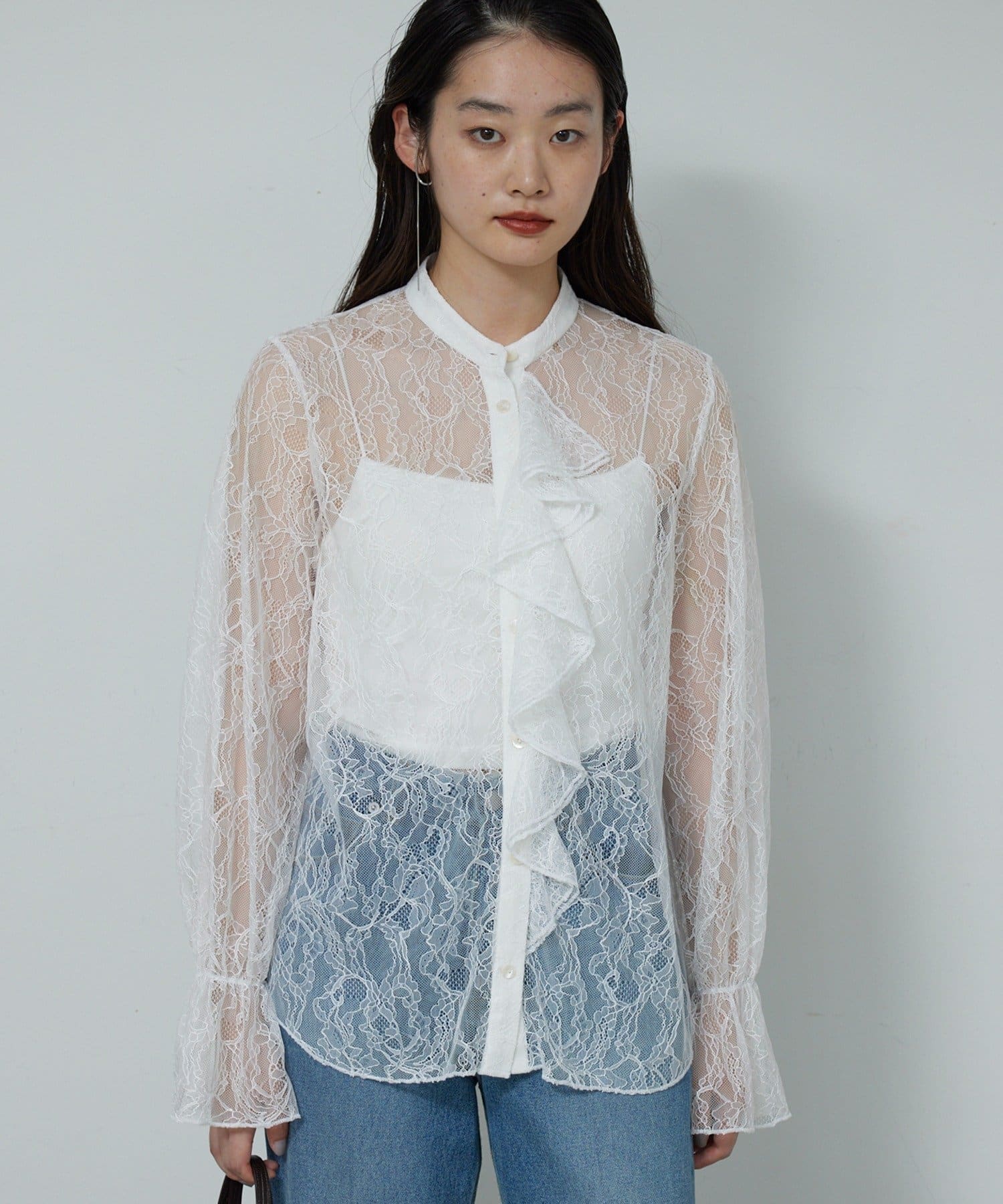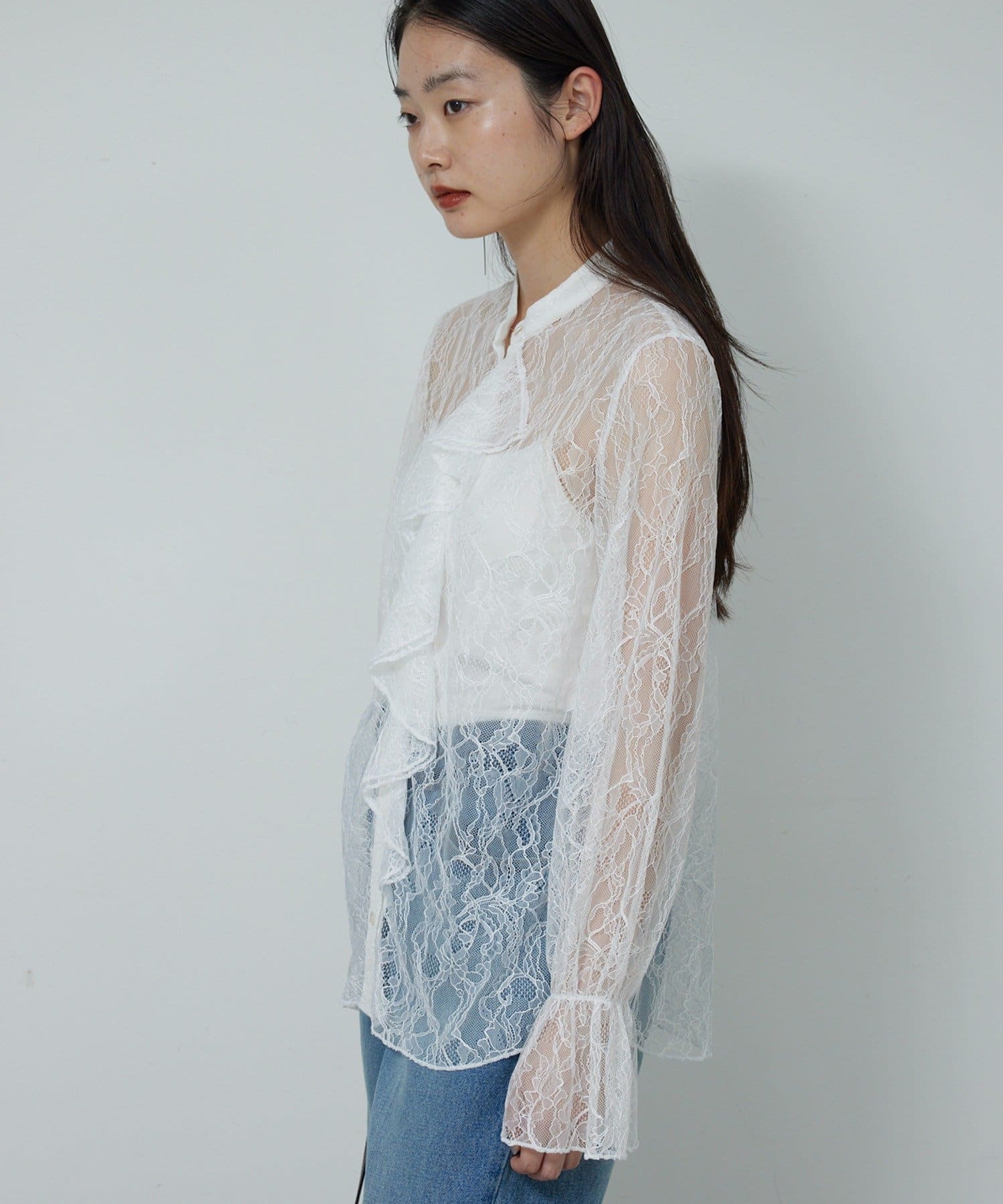 繊細なレースが女性らしさを引き出すフリルブラウス