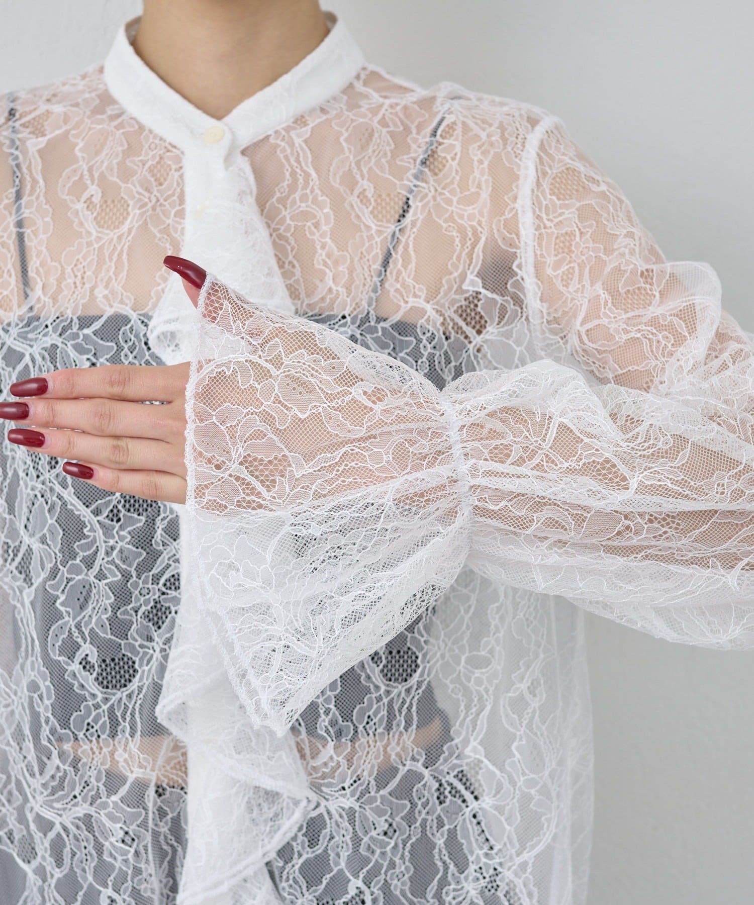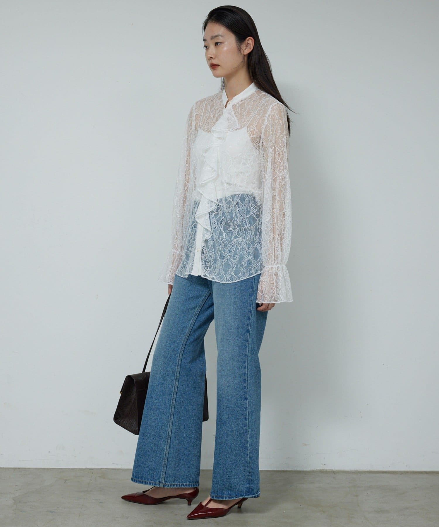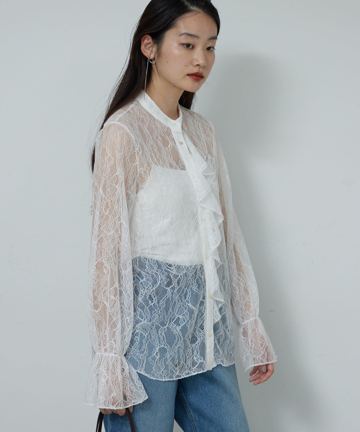 繊細なレースが女性らしさを引き出すフリルブラウス