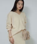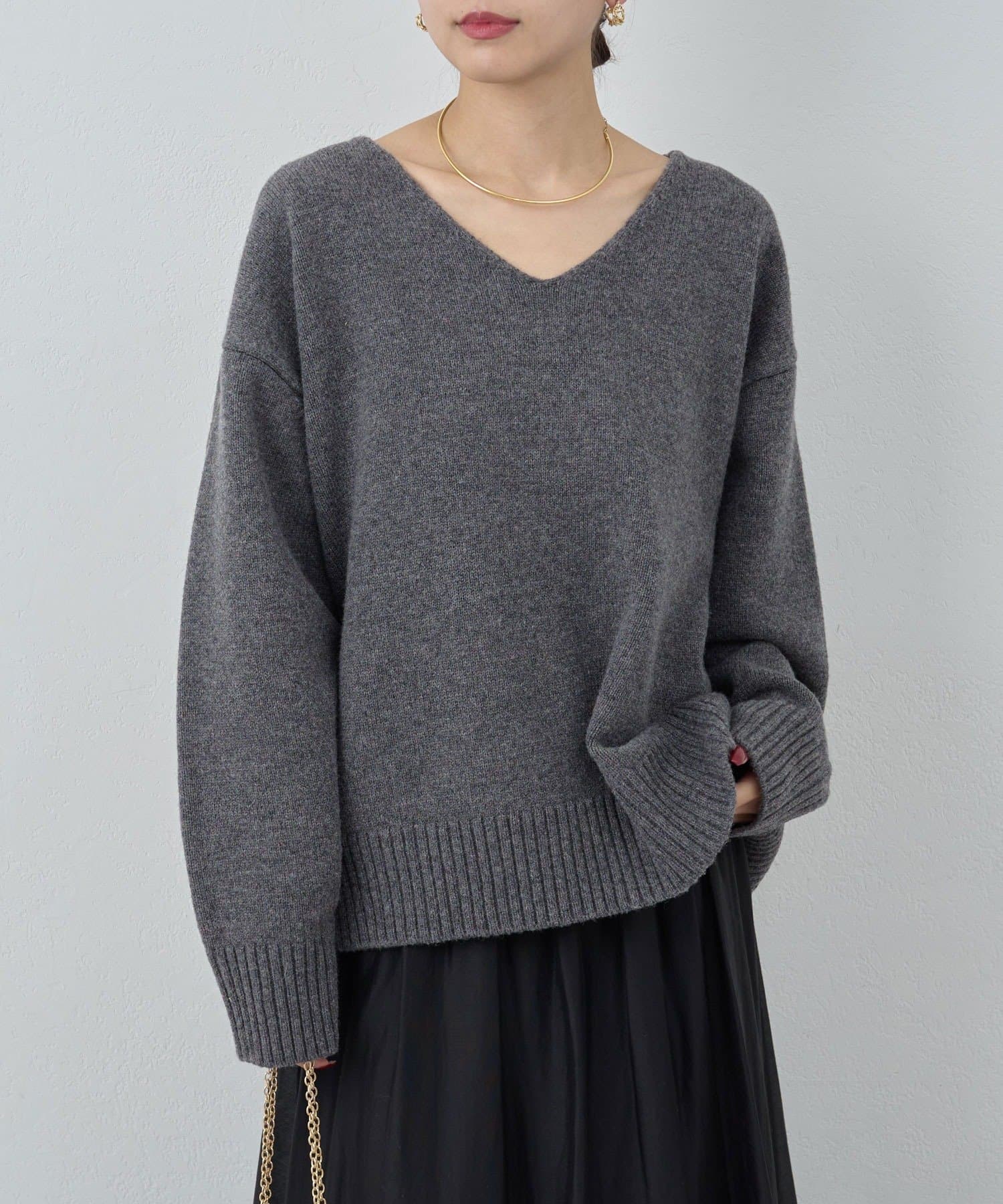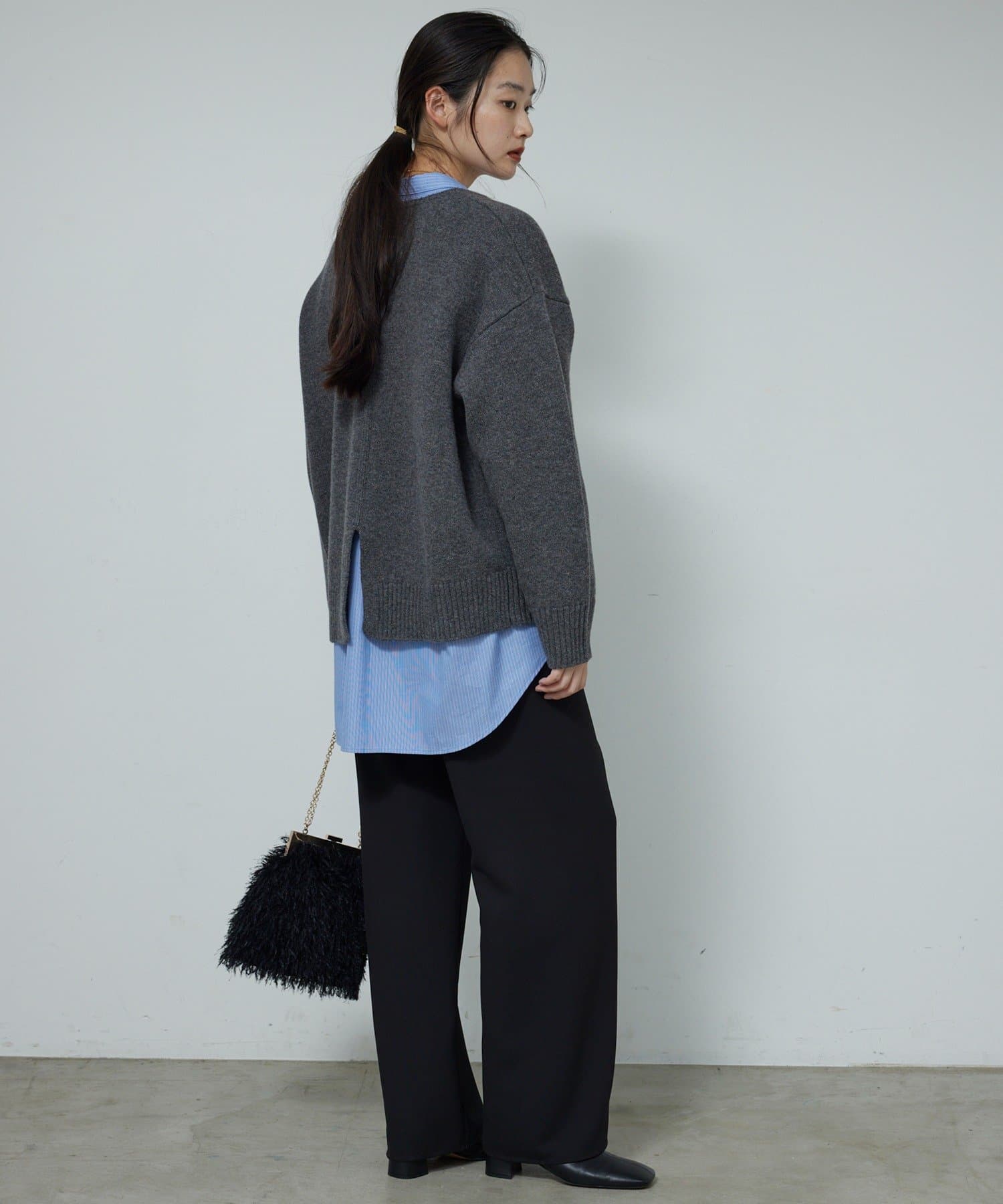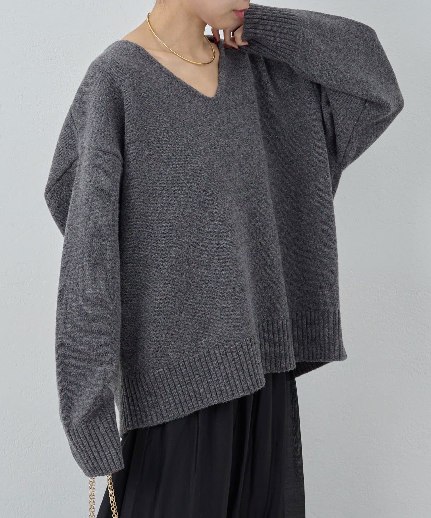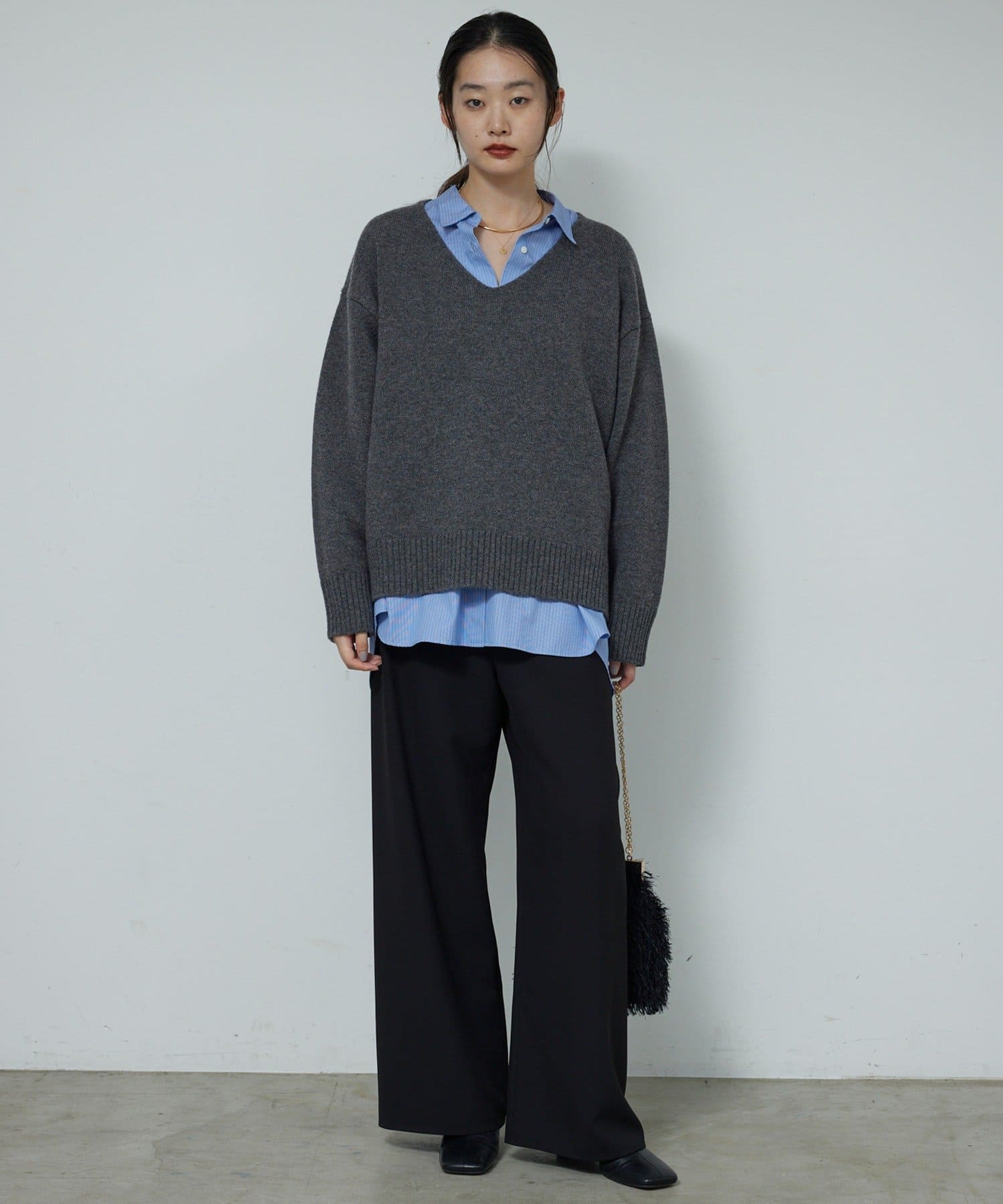 ●首元をすっきりと見せつつインナーにも困らない絶妙な開き具合のVネック。