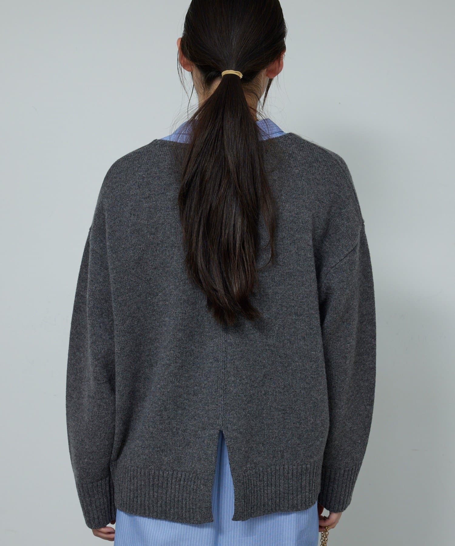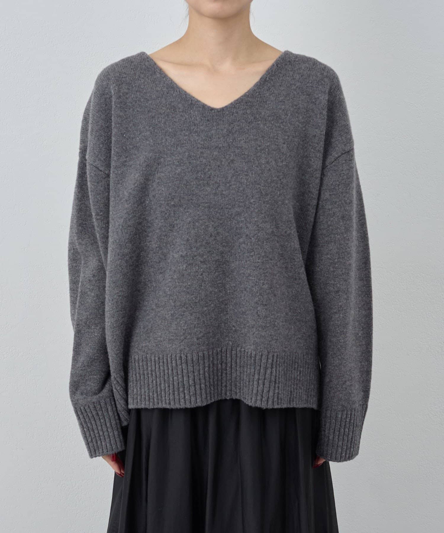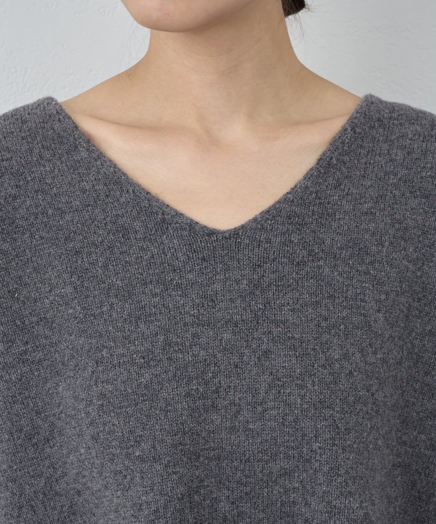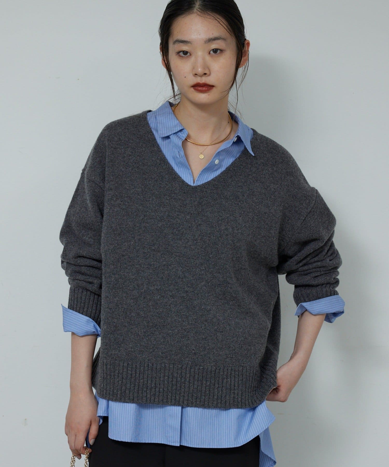 ●首元をすっきりと見せつつインナーにも困らない絶妙な開き具合のVネック。
