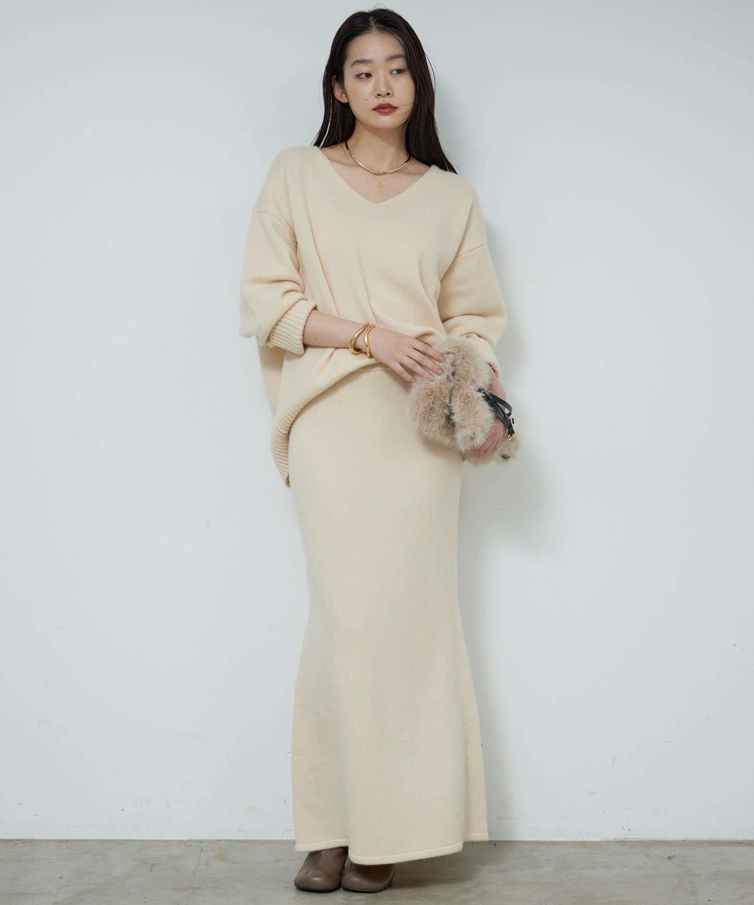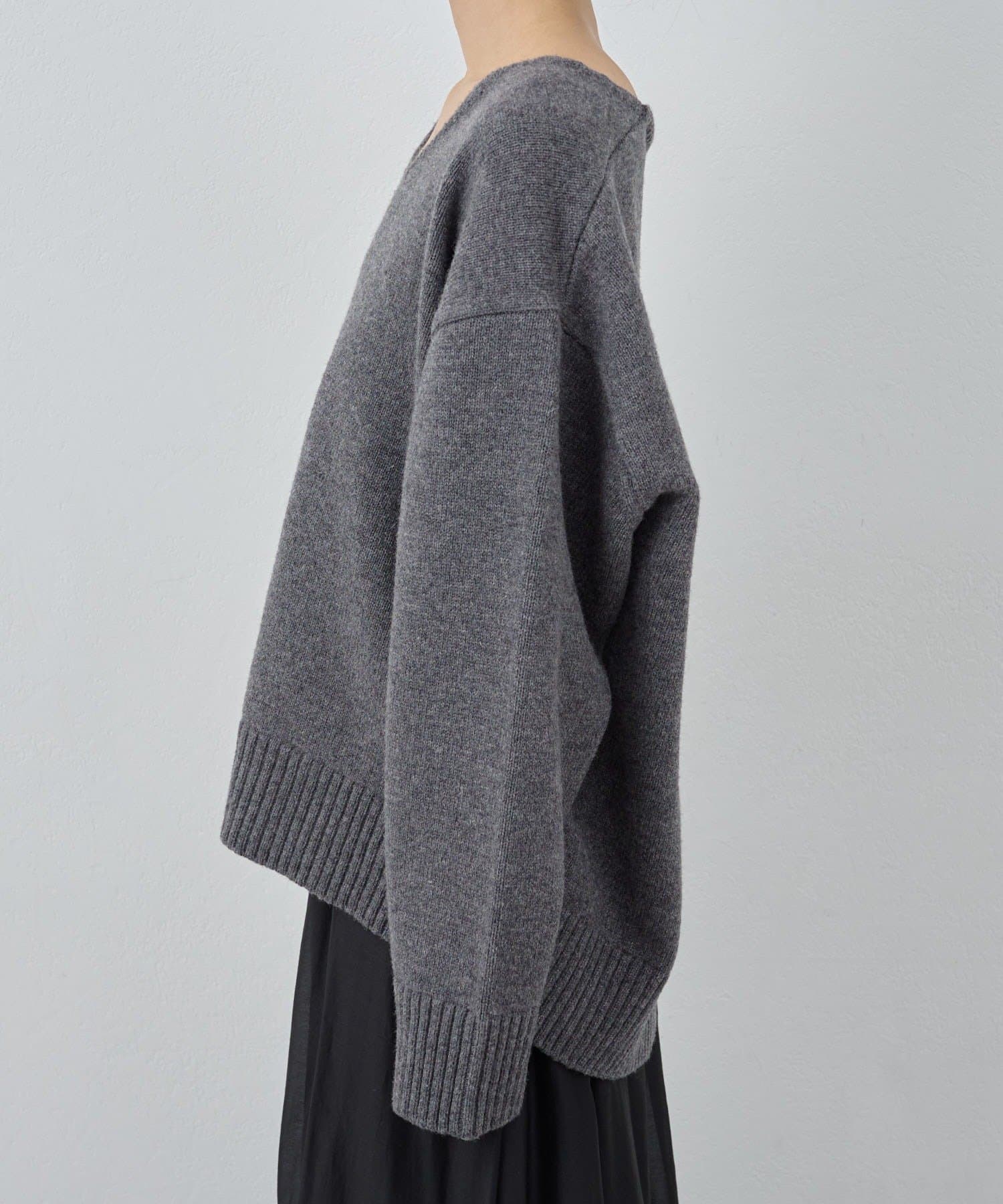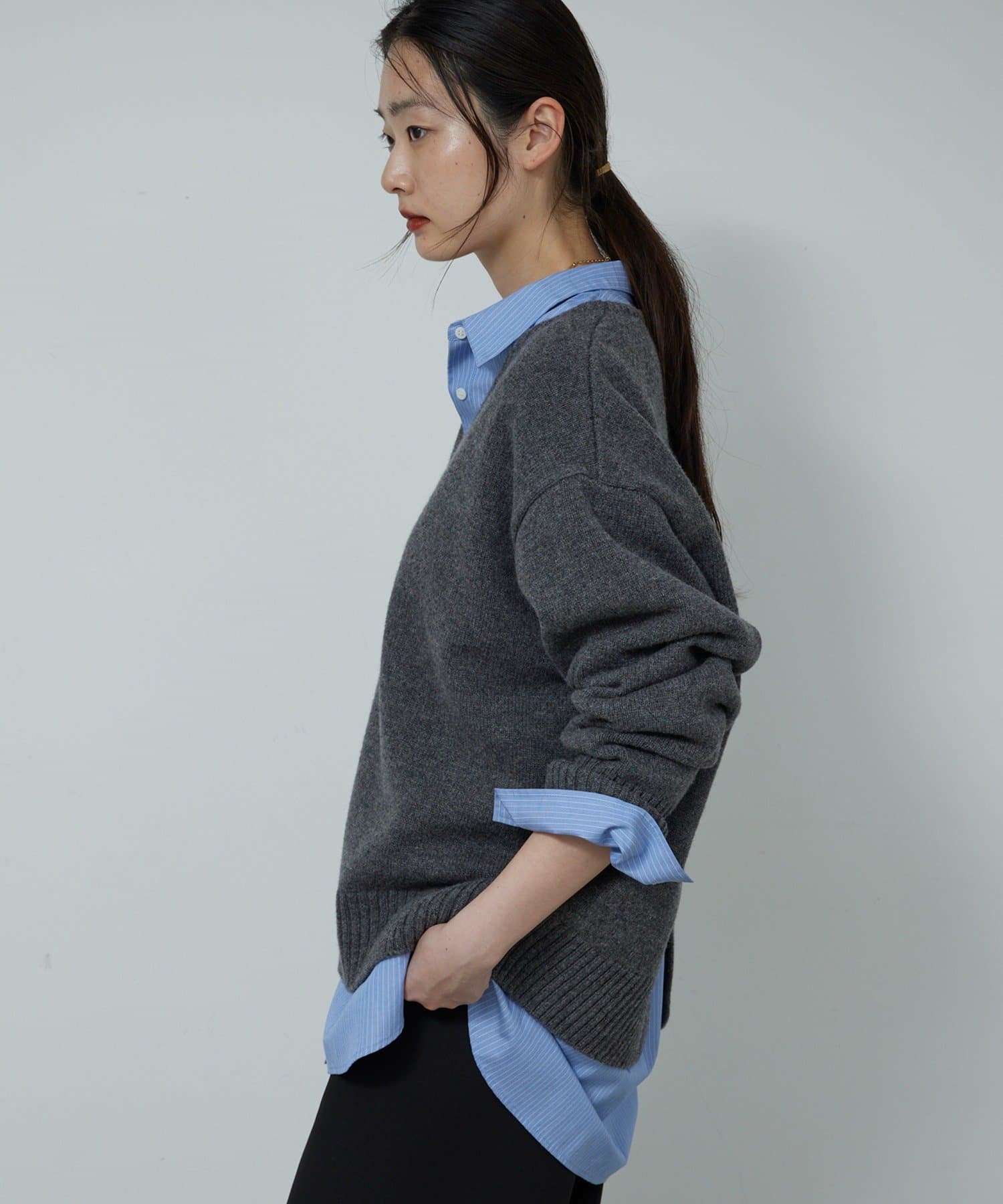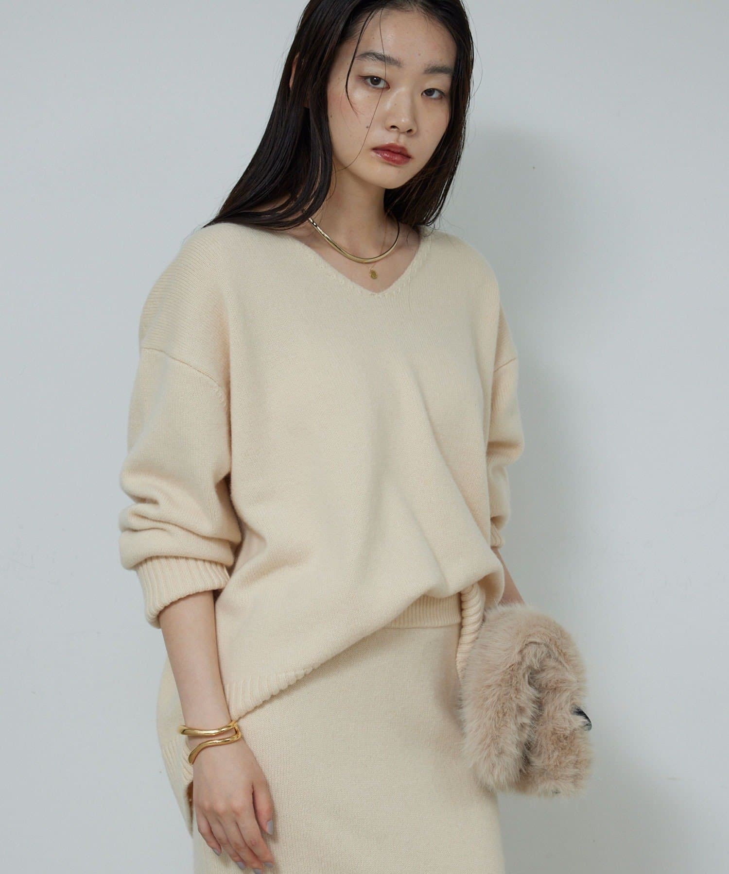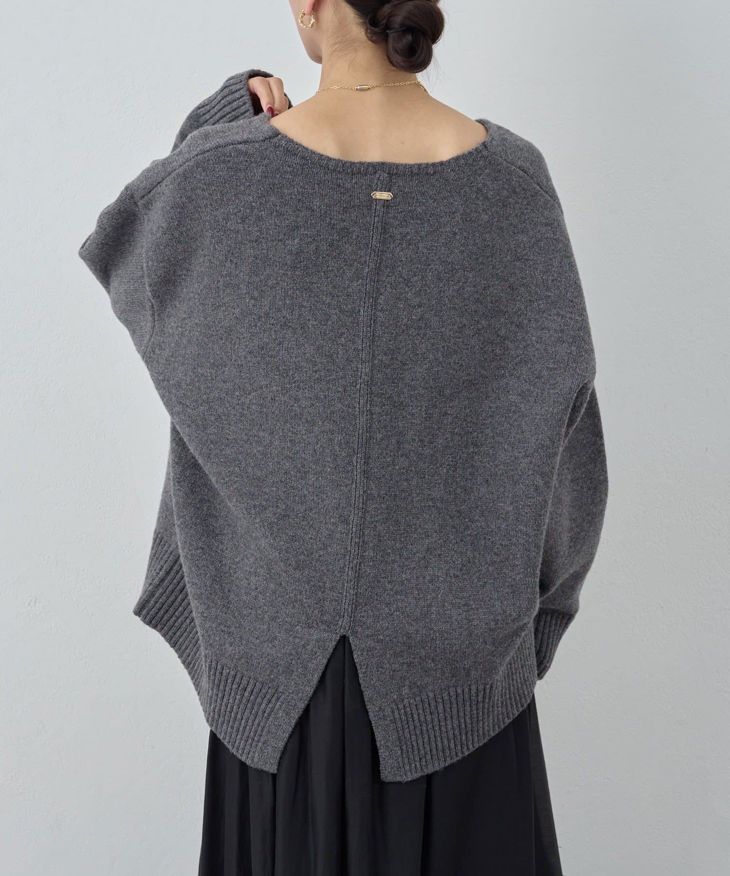 ●首元をすっきりと見せつつインナーにも困らない絶妙な開き具合のVネック。