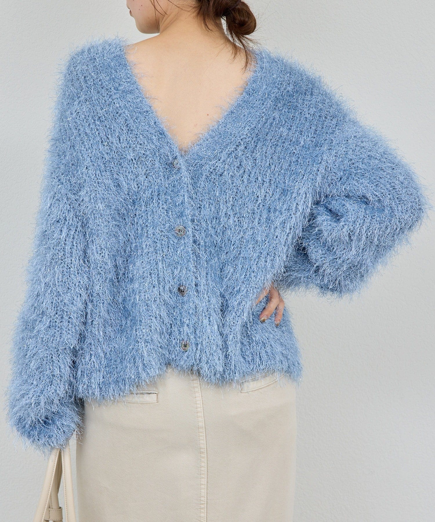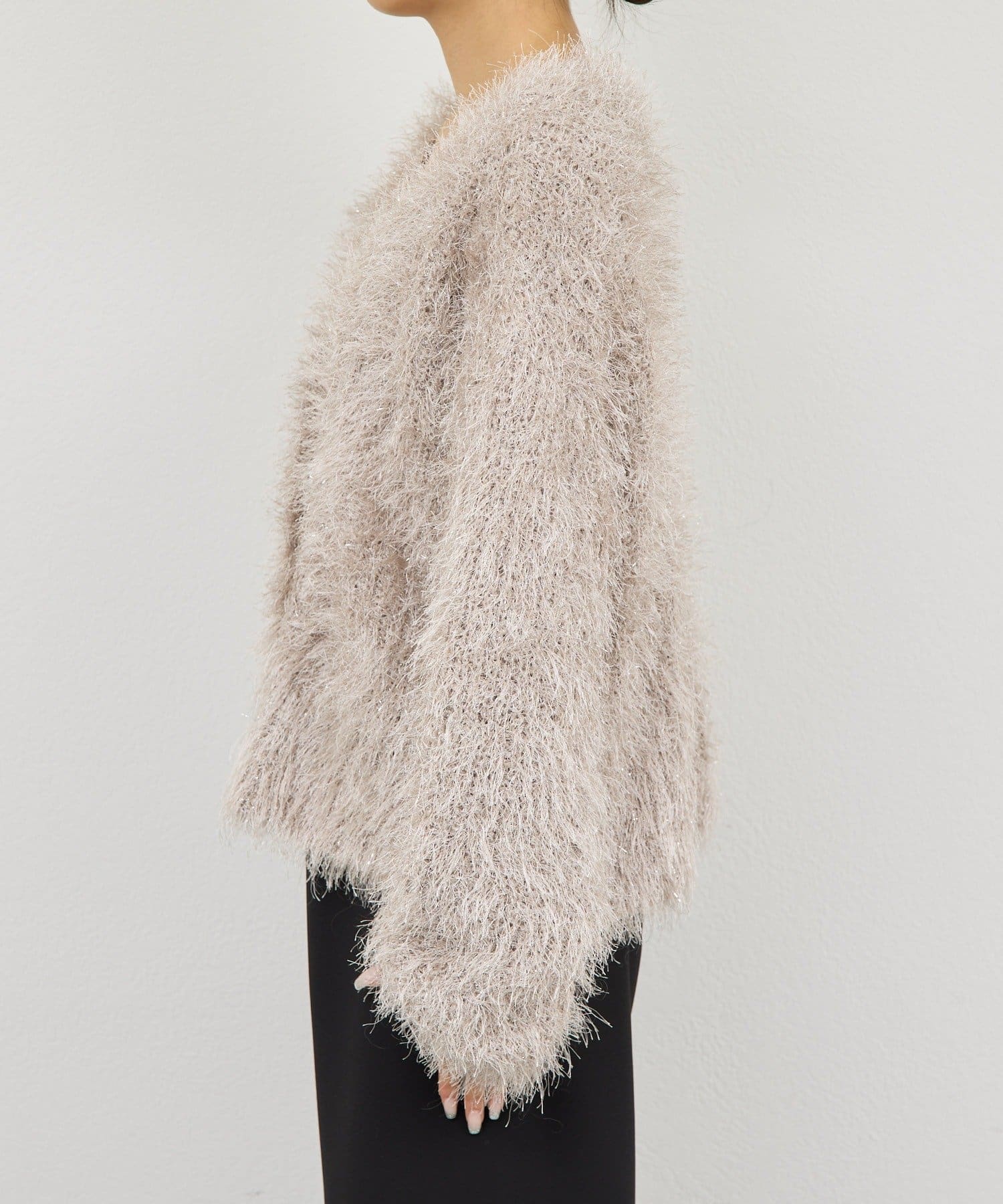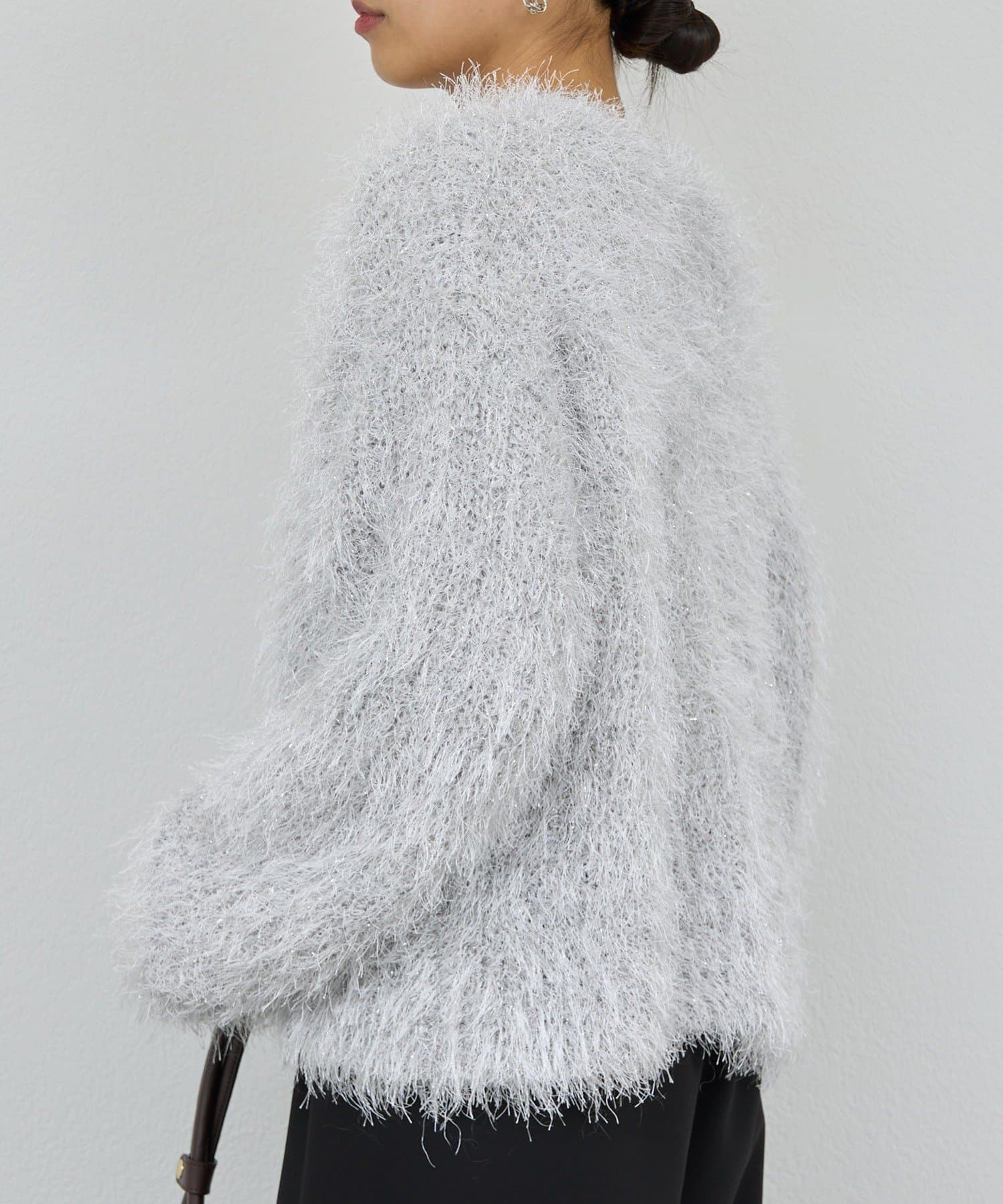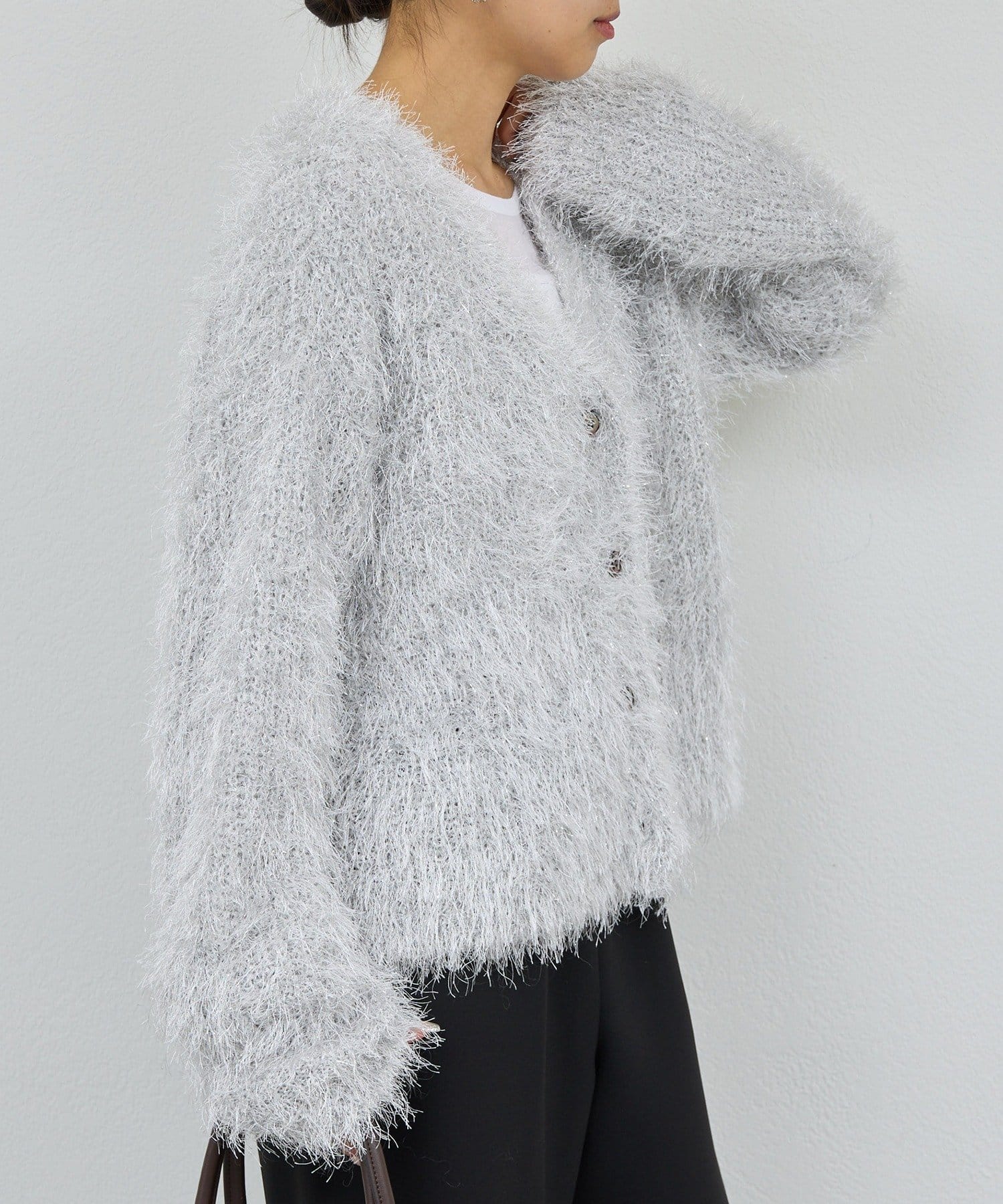 ●さり気ないラメと毛足の長いシャギーがポイントのカーディガン。
