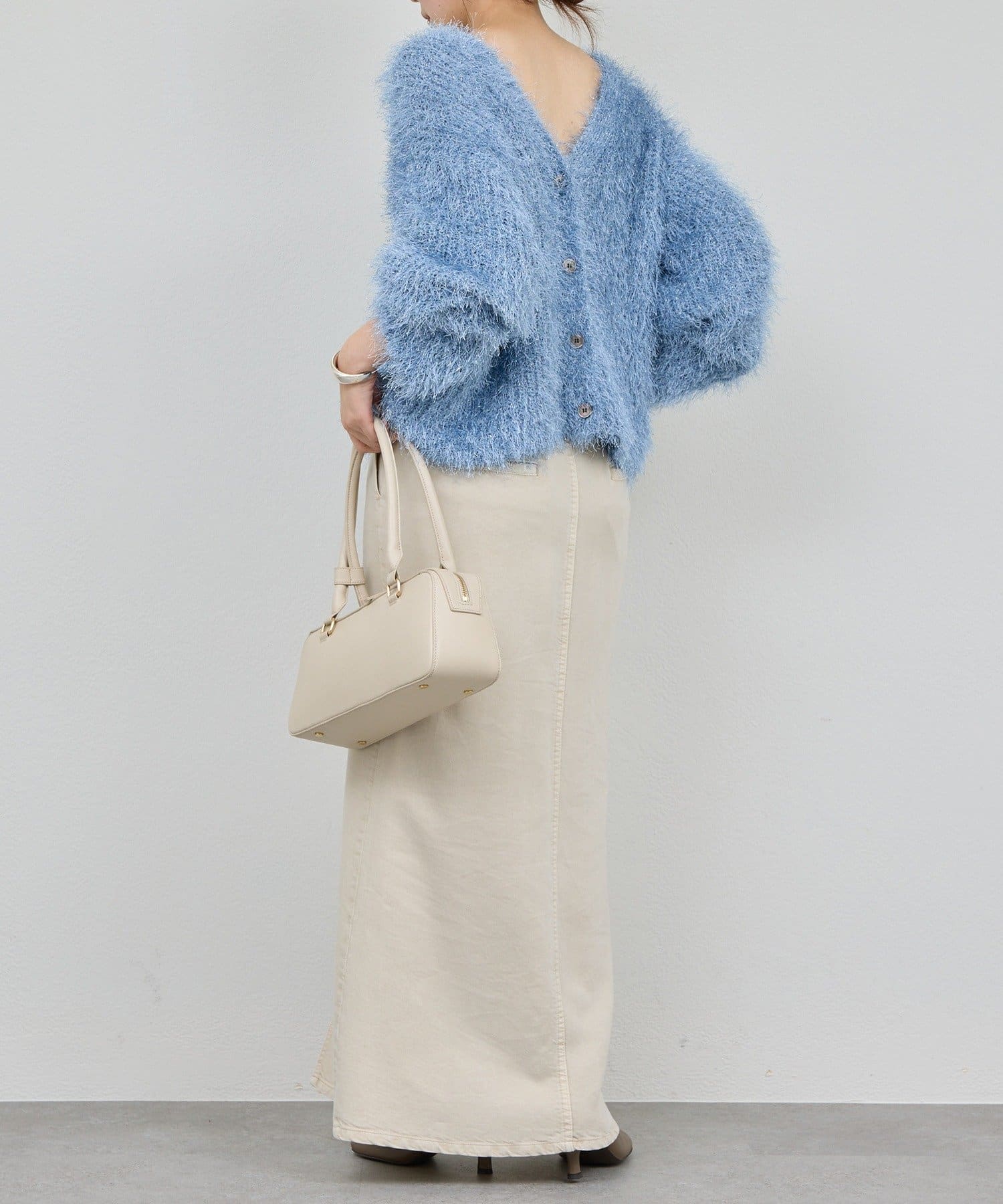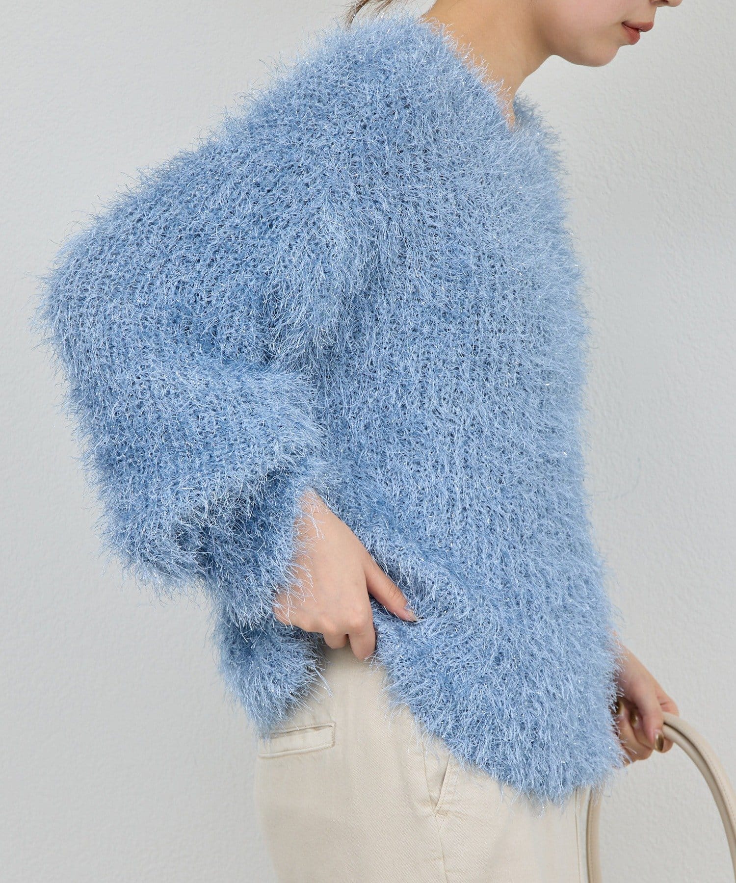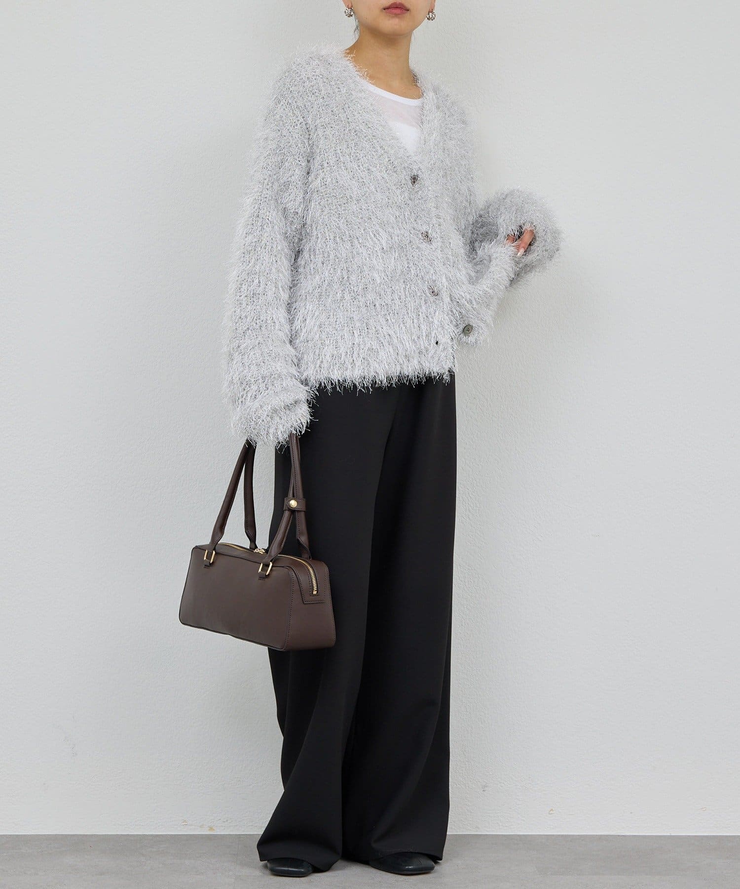 ●さり気ないラメと毛足の長いシャギーがポイントのカーディガン。