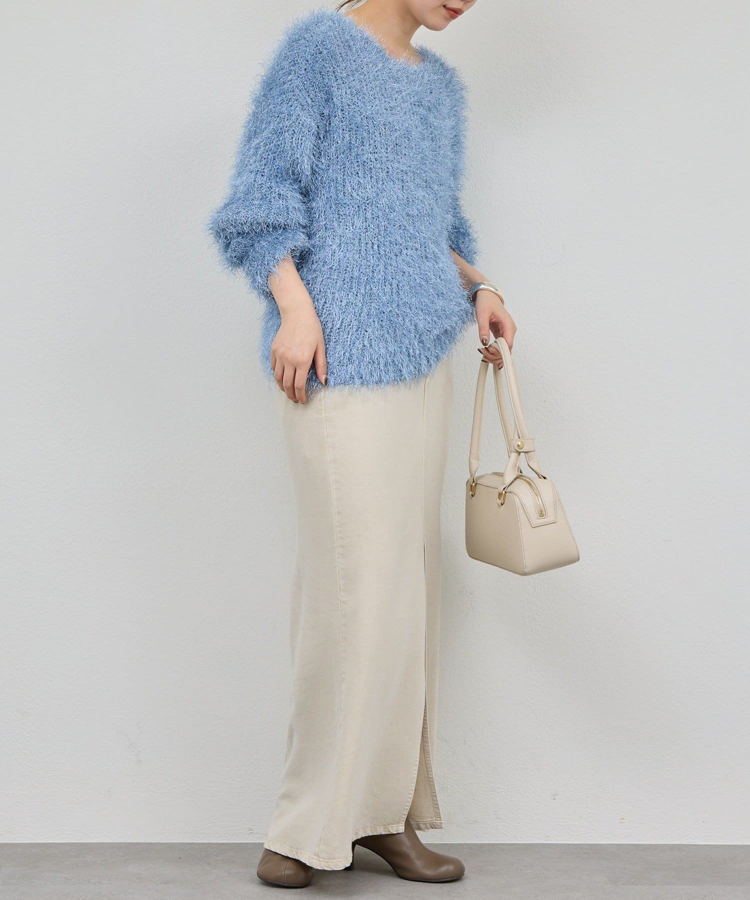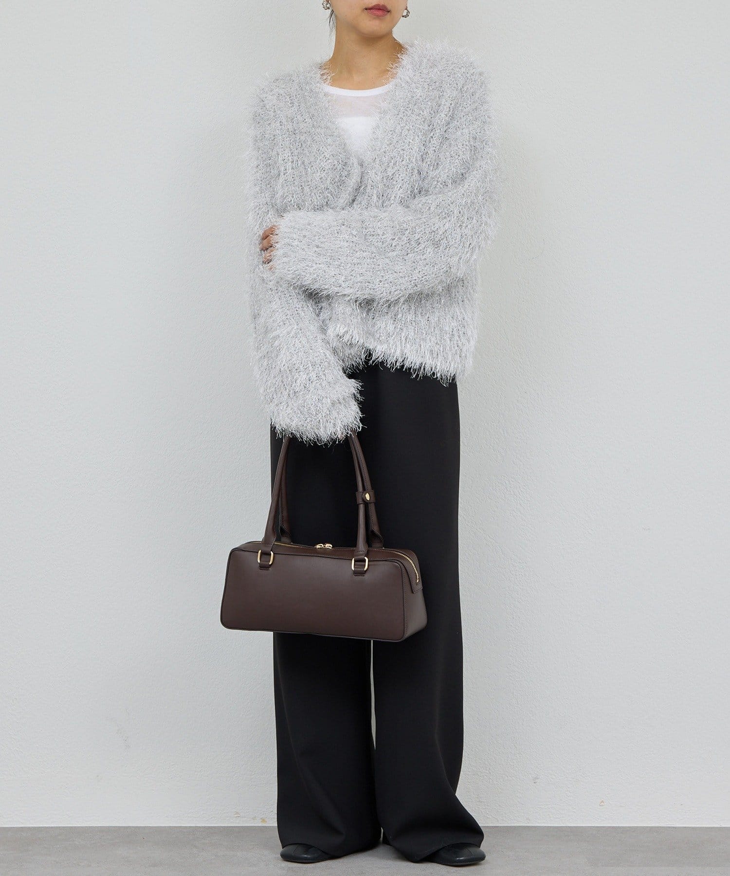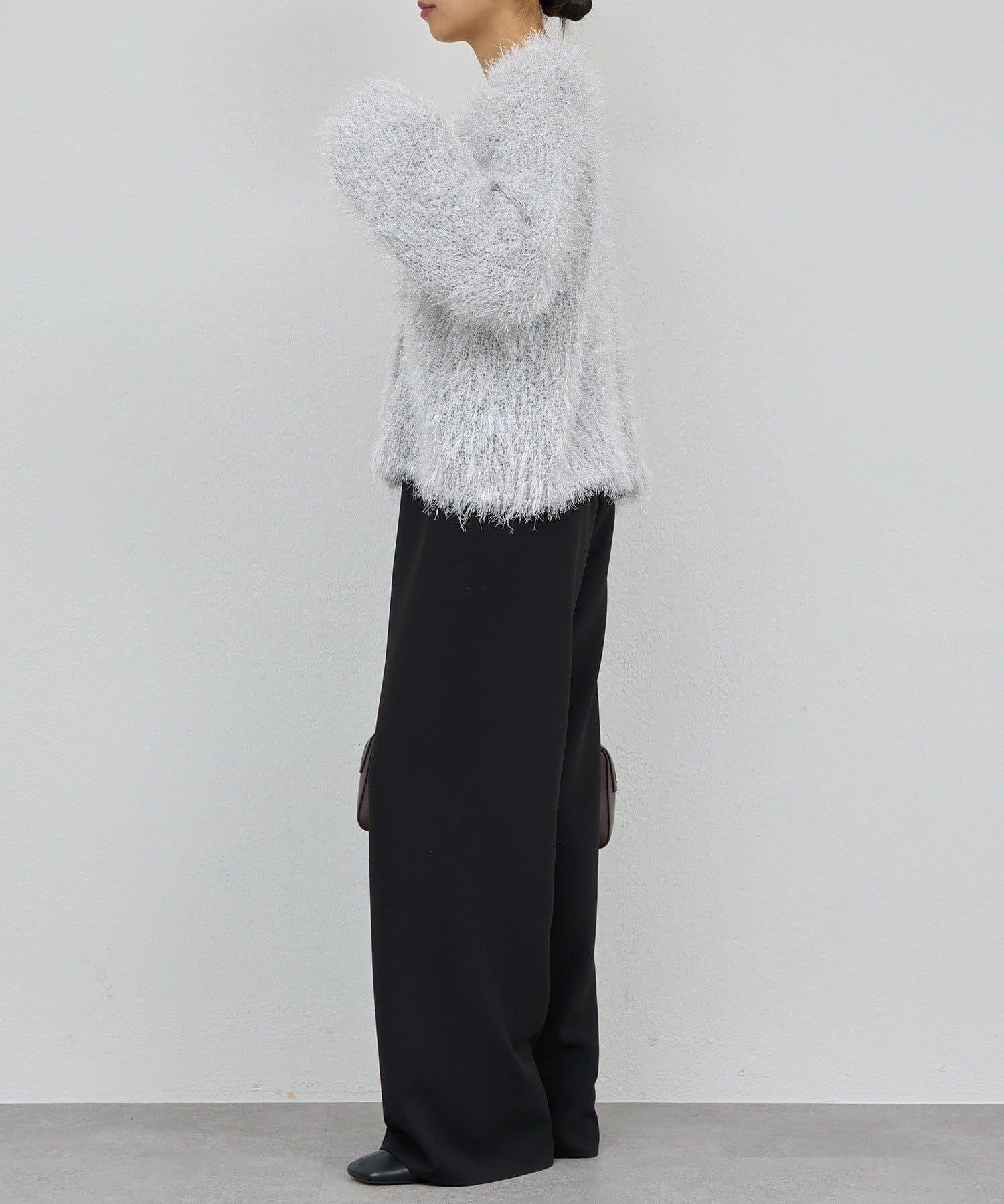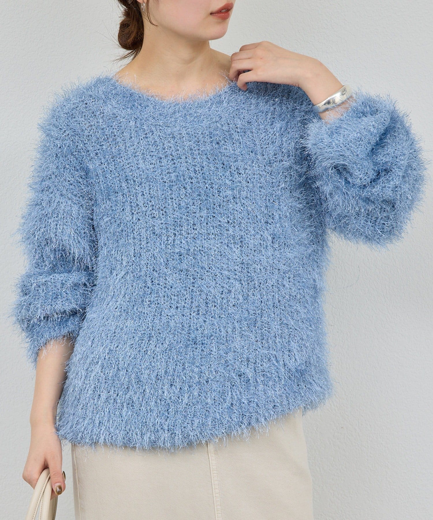 ●さり気ないラメと毛足の長いシャギーがポイントのカーディガン。