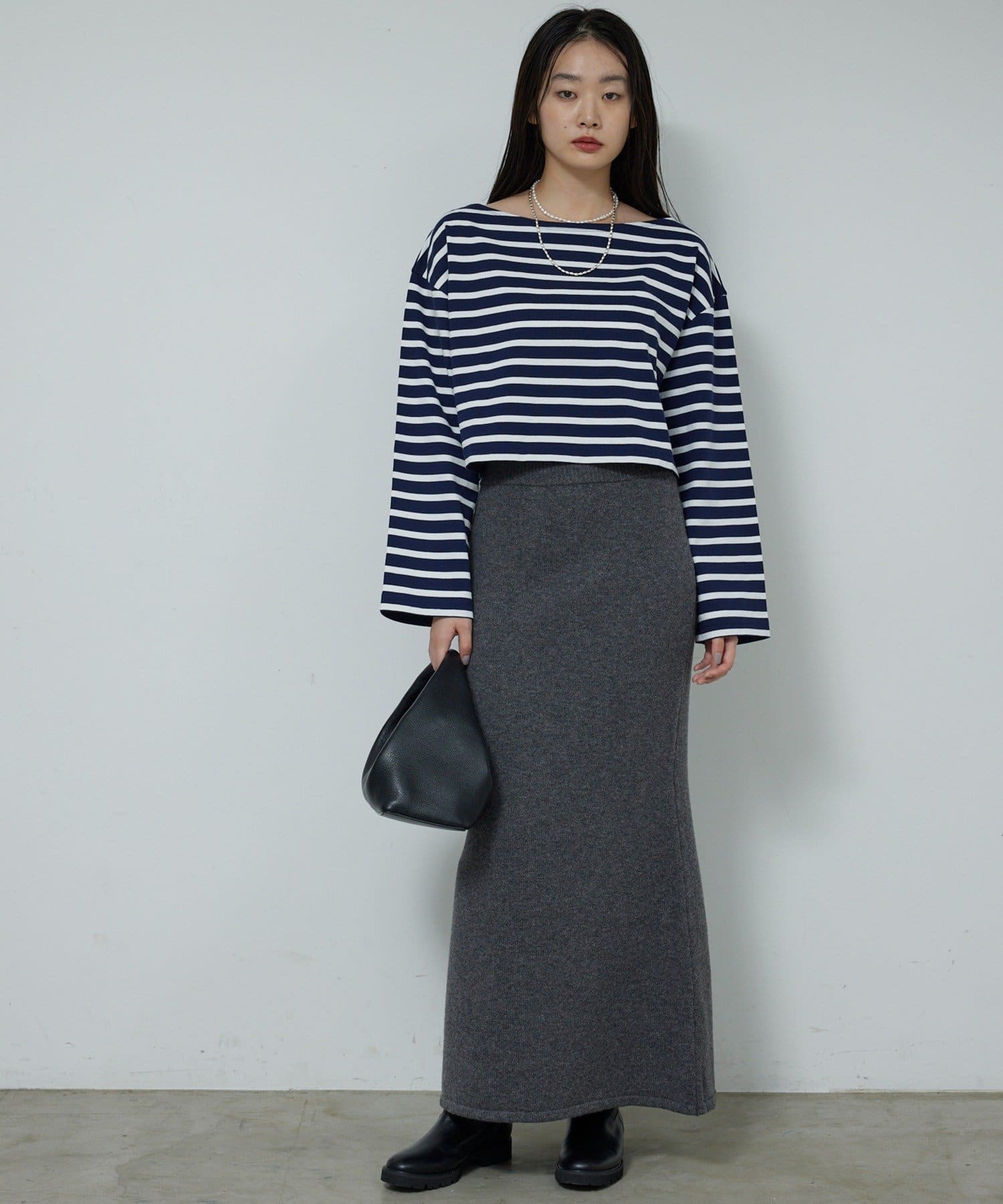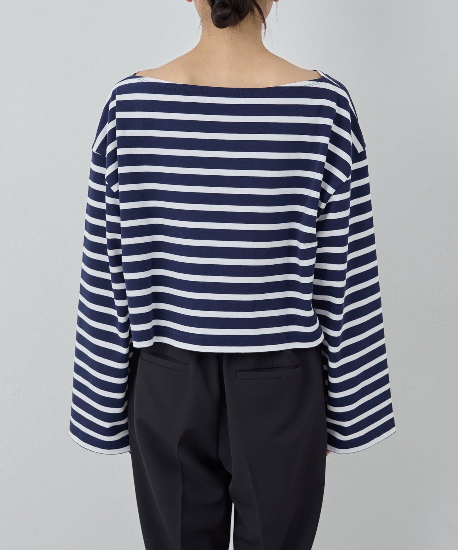 ●立体感あるシルエットとボートネックデザインが上品な印象をプラス。